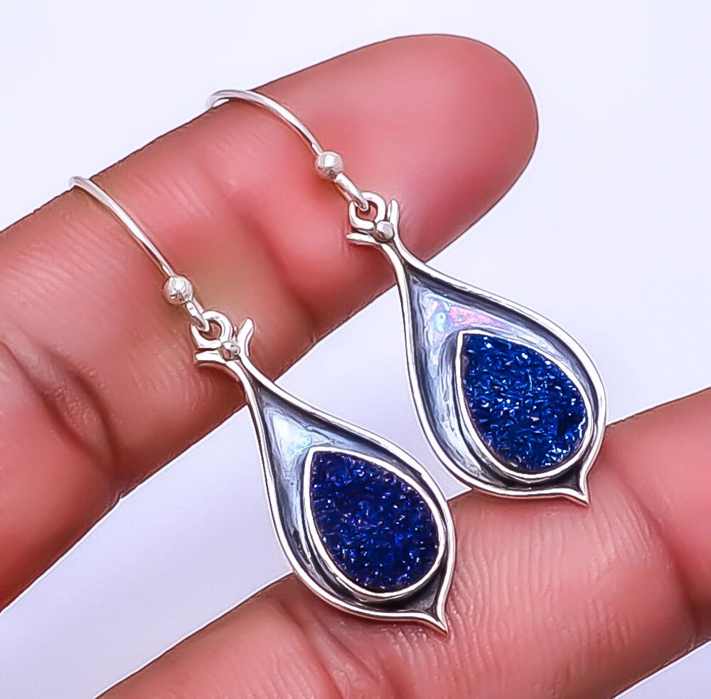 Theme Beauty Main Stone Depth As Seen in Picture Main Stone Length As Seen in Picture Main Stone Width As Seen in Picture Seller Warranty Yes Shape As Seen in Picture SKU E_9327_105_32 Main Stone Cut Type Drusy Main Stone Size 12X8Mm Antique Yes Handmade Yes Type Earring Style Drop/Dangle Metal Sterling Silver Metal Purity 925 Parts Per 1000 Base Metal Sterling Silver Total Carat Weight 21.5 Main Stone Titanium Agate Drusy Main Stone Creation Natural Main Stone Shape Pear Main Stone Color Blue Main Stone Treatment Natural Material Gemstone, Stone Number of Gemstones 2 Item Length 1.64 Features Engraved, Nickel-Free, Handcrafted Ear Area Lobe Brand Unbranded Country/Region of Manufacture India Country of Origin United States Color As Seen in Picture Diamond Clarity Grade Not Applicable Number of Diamonds As Seen in Picture Item Diameter As Seen in Picture Gemstone Clarity Grade Opaque Diamond Color Grade Not Applicable Customized No Colored Diamond Intensity Not Applicable Certification 100% Genuine Guaranteed Setting Style Bezel Occasion Christmas, Birthday, Anniversary, Engagement, Wedding, Valen Shipping & Handling - Charge - 1st item-5.90 And Additional item-1.90 Handling Time - 1 Days . Delivery Time - 2 TO 3 DAYS. Shipping Service - USPS First Class Package 2 -3 Days. Returns - 1.We offer a 100% Money Back Guarantee minus shipping for 30 days after receiving the Item / item's. 2..The item must not be altered or damaged in any way shape or form. 3.Upon receiving these items your payment will be refunded. 4.Email us for return instructions before sending merchandise back. 5.Please allow up to 1 business day for all returns to receive credit. 6.Sizing does not affect the return policy. Payment - We accept PayPal for Payment ,should made with in 14 days once buying or winning done , in case of late information expected .