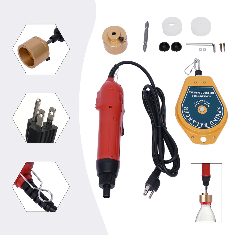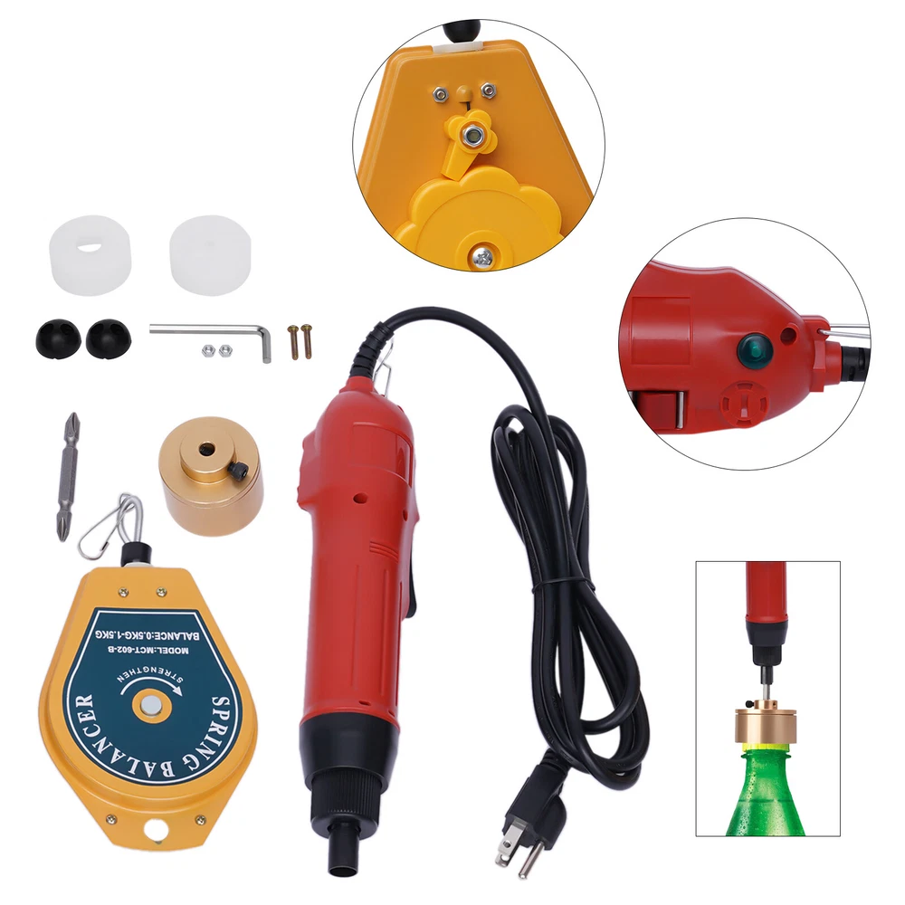 110V Handheld Electric Bottle Capping Machine Screw Capper Sealing Sealer Tool Description Handheld Bottle Capper Electric Bottle Capping Machine Bottle Screwing Sealing Machine for 10-30mm Round Plastic Caps Description This Electric Bottle Capping Machine Is Made of High-quality Plastic, Stainless Steel, and Alloy Steel, Which Is Strong, Durable, and Not Easy to Deform. It's Lightweight and Compact, Which Is Very Easy for You to Carry. Depending on Your Proficiency, This Electric Bottle Capping Machine Can Screw 20-50 Caps a Minute, Which Is Very Efficient and Can save You a Lot of Time. It Is Suitable for the Round Cap with a Diameter of 10-30mm/0.39-1.18inch Key Features Good Materials: This Product Is Made of High-quality Plastic, Stainless Steel, and Alloy Steel, Which Is Strong, Durable, and Not Easy to Deform. High-quality Materials Can Extend the Service Life of the Product. Beautiful Appearance: the Appearance of This Product Is Black and Red with a Streamlined Design. the Overall Visual Effect Is Smooth, Natural, Simple, and Clear, Which Is Beautiful. Saving Labor: It Can Let You Get Rid of the Traditional Laborious Wringing of Bottle Caps by Hand. Its Torque Is 2-30kg/4-66lbs, so It's Very Easy to Use. You Can Greatly save Manpower. High Efficiency: Depending on Your Proficiency, This Electric Bottle Capping Machine Can Screw 20-50 Caps a Minute, Which Is Very Efficient and Can save You a Lot of Time. Good Safety: Once the Cap Is Completely Tightened, the Electric Bottle Capping Machine Will Automatically Stop the Rotating Head. Therefore the Product Is Very Safe and You Can Use It Without Worrying About Safety Problems. Easy to Install: English Manual and Accessories Are Included in the Package. so This Electric Bottle Capping Machine Can Be Installed in Just a Few Simple Steps and Is Very Easy to Install. Comfortable to Use: the Main Part of This Electric Bottle Capping Machine Is Ergonomically Designed, so It's Very Comfortable to Use. You Won't Get Tired of Holding It for a Long Time. Low Noise: the Motor Parameters Are Reasonably Selected, so It Runs Smoothly, and the Noise When Used Is Low. This Can Bring You a Quiet Environment. Forward and Reverse Design: It Is Equipped with a Button on the Top, Which Can Achieve Forward and Reverse Rotation with One Click. It Will Be More Convenient for You to Use. Details Silicone Rubber Rings: This Electric Bottle Capping Machine Comes with Two Silicone Rubber Rings, Which Can Flexibly Tighten Different Sizes of Caps. Labor-saving Switch: This Electric Bottle Capping Machine Is Powered by a Labor-saving Switch to Start. You Only Need to Touch It Lightly to Use It. This Allows You to Improve Efficiency and Use It with less Effort. Metal Hook: This Electric Bottle Capping Machine Is Equipped with a Metal Hook, so the Machine Can Hang on the Balancer. It Has a Strong Load-bearing Capacity and Good Stability, so You Can Use It with More Peace of Mind. Anti-break Wire Sheath: This Electric Bottle Capping Machine Is Equipped with an Anti-break Wire Sheath, Which Makes the Electric Bottle Capping Machine Not Easy to Break the Wire and Can Extend the Service Life of the Electric Bottle Capping Machine. Anti-pull Cotton Thread: the Power Cord Has an Anti-pull Cotton Thread Inside, Which Greatly Reduces the Risk of Pulling and Breaking. Application It Is Suitable for the Round Cap with a Diameter of 10-30mm/0.39-1.18inch. Specification Color: Red Model: Os-600 Material: Plastic, Stainless Steel, Alloy Steel, Silicone Power Type: Plug-in Type Material Type: Solid, Liquid Function: Sealing Work Type: Electric Capping Operation Forms: Handheld Applicable Caps: Round Bottle Height: Not Limited Voltage: 110v Power: 80w Rotation Speed: 900r/Min Torque: 2-30kg/4-66lbs Packaging Speed: 20-50 Bottles/Min Product Height: 24cm/9.45inch Suitable Cap Diameter: 10-30mm/0.39-1.18inch Aluminum Capping Head Diameter: 47mm/1.85inch Weights&Dimensions Net Weight: 1.2kg/2.6lbs Gross Weight: 1.3kg/2.8lbs Package Size: 28*15*10cm/11*5*3inch Installation Unscrew the Upper Cover. Install the Silicone Rubber Ring. Tighten the Cover. Insert the Head of the Electric Screwdriver into the Cover Hole. Tighten the Screws to Secure the Cover. The Installation Is Complete. Package Included 1* Electric Bottle Capping Machine 1* Balancer 1* Aluminum Capping Head 2* Silicone Rubber Rings 1* Wrench 1* English Manual Other Accessories for Assembly Notes Please Read the Manual Completely Before Installation and Use, and Pay Particular Attention to the Safety Instructions Included. Please Allow the Slight Color Difference Caused by the Shooting Light and 1-3cm Error Due to Manual Measurement, and Make Sure You Do Not Mind Before Ordering. Payment Delivery details Terms of sales About us Contact us Payment We accept ebay payment 。 Fees such as import duties, taxes are not included in the item price or shipping costs. These charges are the buyer's responsibility. Delivery details Shipping: 2-9 working days to: USA Terms of sales We maintain high standards of excellence and strive for hundred percent customer satisfaction. Feedback is very important to us. We hope that you contact us immediately before you give neutral or negative feedback, so that we can address your concerns. It is impossible to address issues if we do not know about them! About us Your satis faction is our ultimate goal. We work hard to earn your trust and future business. Our certified technicians have tested each item before shipping. The unit comes with 1 year limited warranty on all manufacturing defects. a) If you receive a defective item, you may return it or ask for a discount. Please contact us within 14 days after you receive the package. b) What you returned must be intact and in its original packaging as re? u. Customer is responsible for shipping costs of the returned item. c) We will cover the cost of shipping back t with the shipping rate indicated in the registration page. We will send you a new u