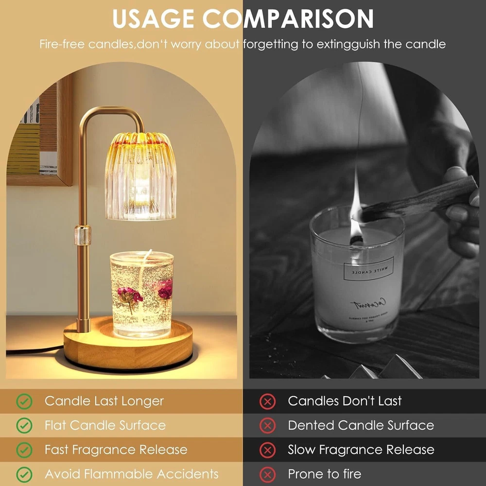 This candle warmer lamp is a game-changer—no open flame means safer, smokeless fragrance! Love the dimmer and timer for perfect ambiance control, plus it fits most jar candles. Stylish, functional, and worry-free! Highly recommend.