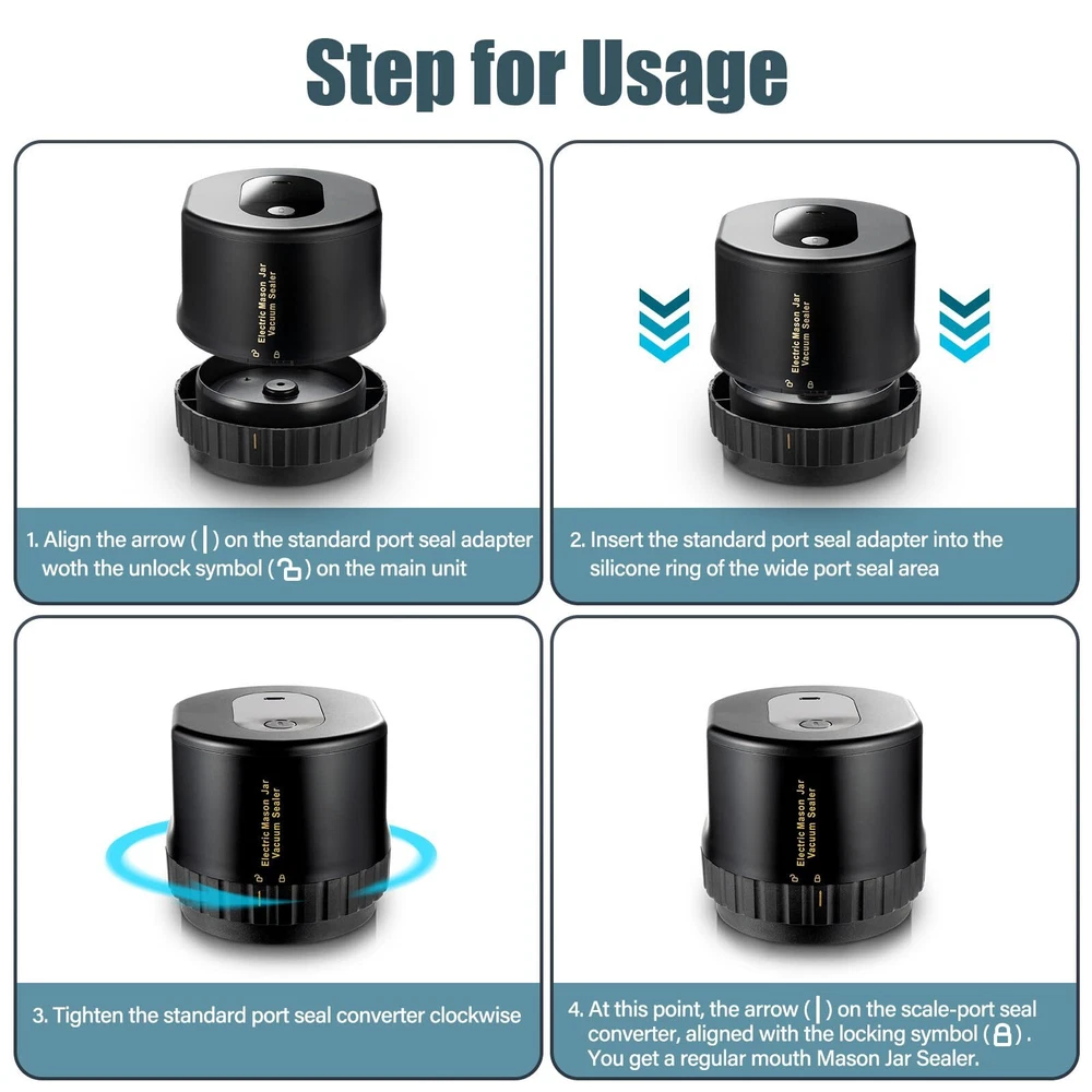 Your Vacuum Sealing Helper: Our electric vacuum sealer will help you remove the air from your Mason jars and extend the life of your stored food. Whether you have wide or regular mouth mason jar, Our vacuum sealer for mason jars can complete sealing tasks for you, Free up your hands. Stable & Safety: Our mason jar vacuum sealer kit are durable, electric mason jar vacuum sealer adopts non-toxic ABS plastic, to ensure safety when use it. Includes an electric vacuum sealer containing a wide mouth sealer, a standard mouth seal converter, 5* wide mouth Mason jar lids, 5* regular mouth Mason jar lids, 1* canning opener, 1* USB cable and user guide. Mason Jar Vacuum Sealer: Vacuum sealer for jars is rechargeable, cordless. Equipped with a built-in large LED screen to ensure that the battery status and working time are clearly visible and make vacuum sealing easy. Perfect canning supplies for home, kitchen gadgets. Portable Vacuum Sealer: This vacuum sealer doesn't take up much space and can be easily stored when not in use. When you travel or have a picnic You can also take this electric sealer to use. Customer Satisfaction Guarantee: If you have any question for our mason jar vacuum sealer, our customer support team is readily available to assist you and ensure your experience with our products is a positive one.
