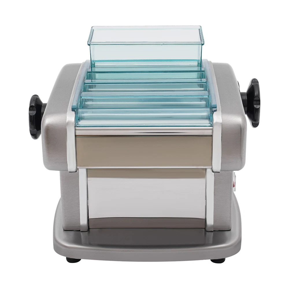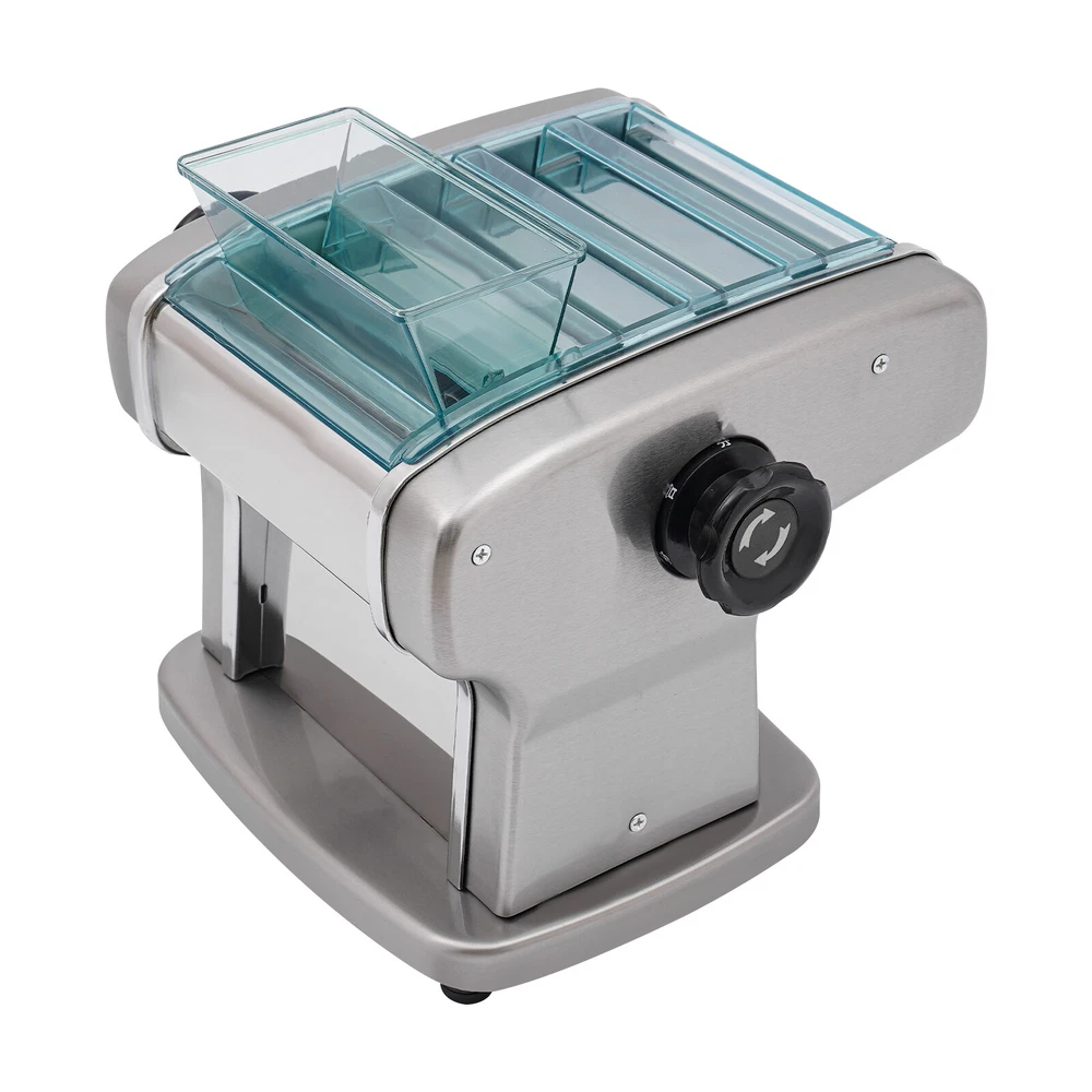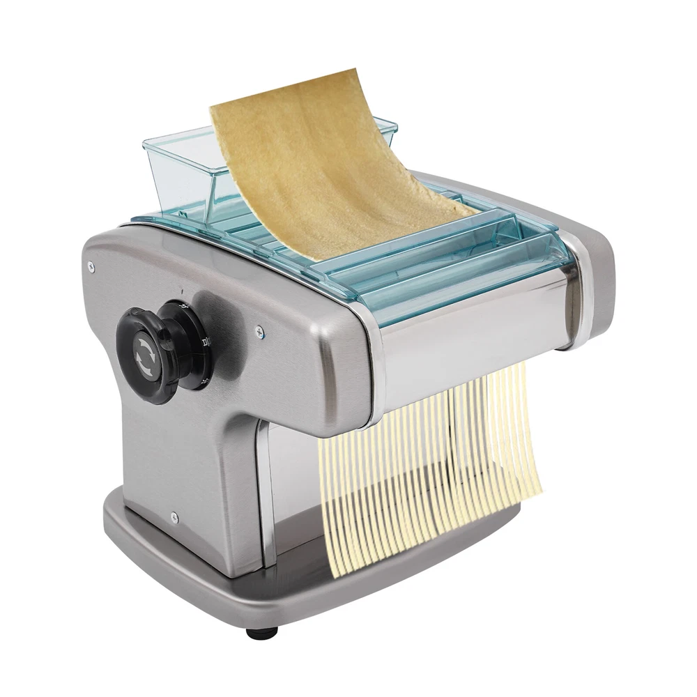 Electric Pasta Press Maker Noodle Machine Stainless Steel Commercial Home Hotel Welcome~ Description A great automatic noodle machine can help you make noodles of different thicknesses and crusts of different thicknesses for you and your family to enjoy deliciously. Our product is made of high-quality stainless steel for durability, has a high power of 135W and offers 9 thickness adjustments so you can quickly make different sizes of pasta to really meet your needs. Come and bring it home! Specifications Color: Silver Material: 409# Stainless Steel, 201# Stainless Steel, 410# Stainless Steel, ABS Process: Electroplating Assembly Required: Yes Mounting Type: Tabletop Power Source: Corded Plug Type: US Standard Motor Type: Aluminum Motor Operation Mode: Automatic Power: 135W Voltage: 110V Gears: 9 Gears Is Dishwasher Safe: No Adjustable Thickness Range: 0.5-5mm/0.02-0.2in Adapted Noodle Size: 2.5mm/0.1in, 4mm/0.16in, 9mm/0.35in Gross Weight: 10.3kg/22.71lbs Net Weight: 9.3kg/20.5lbs Top Width: 25cm/9.84in Overall Product Size: 25*20*23cm/9.84*7.87*9.06in Package Size: 32.3*32*27cm/12.72*12.6*10.63in Package Included 1* Automatic Noodle Machine 1* Brush 1*Dough Cutter 4*Non-slip Foot Pads All Accessories for Assembly Key Features Sturdy and Durable: The item is made of high-quality 409# stainless steel, 201# stainless steel, ABS and 410# stainless steel materials with an electroplating process, making it resistant to deformation, oxidation, rust, and safe to use, so it can keep practical and beautiful without frequent replacement. High Efficiency: The 135W powerful aluminum motor and chain drive design make the product run more stably, so you can make noodles faster and more efficiently to provide delicious food for your family. Adjustable Thickness: You can use the thickness knob to cycle through 9 gears to make crusts of 0.5mm and 5mm(1st gear is the thickest while 9th gear is the thinnest), facilitating dough preparation. Thoughtful Design: 3 different blade thicknesses (2.5 mm, 4 mm, and 9 mm) are convenient for making crusts, and round noodles, giving you more options. Moreover, its press and cut knob allow you to make better different sizes of noodles. Complete Set: The product also includes a brush for oiling the dough, and molds for making dumplings as well as a tool for cutting the dough, so you don't have to buy extra, saving you time and effort. High Safety : Uniform heat dissipation holes on the bottom ensure smooth operation and increase safety during use. In addition, the ABS protective cover prevents the risk of scratches for added safety. Easy to Clean: Thanks to its smooth surface and removable shield, you can clean the product more easily with a rag or a brush(not included). Ideal Gift: Thanks to its functionality, you can give it to your friends as a housewarming, Christmas or Thanksgiving gift! Protective Package: To prevent damage to the product due to bumps in transit, we place foam to protect the product as much as possible. Details Practical Brush: It helps you clean the product better and can be used to apply vegetable oil(not included) to the rotating parts for better lubrication. 4 Anti-slip Pads: The anti-slip silicone pads on the bottom of the product dampen vibration, reduce noise and ensure stability when in use. Power Switch: The one-touch power switch and the outer protective barrier are waterproof and dustproof, which are convenient for you to operate and improve the safety of use. Application It can be used in homes, breakfast stores, restaurants, noodle shops, etc. It can be used with gluten flour, spelling flour, etc. and used to make spaghetti, lasagna, spaghetti and dumplings. How to Use 1. Mix the flour(not included) and water about 4:1. 2. Cut the dough into small pieces. 3. Turn the knob to pressing mode. 4. Adjust the thickness settings. 5. Press the dough repeatedly. 6. Turn the knob to cutting mode. 7. Cut noodles. Notes Please add some flour(not included) on both sides of the dough when pressing the dough to prevent the dough from being too sticky and attached to the machine. Please note that this product does not include items such as flour. The machine cannot be disassembled and do not clean the machine directly with water. Please use a brush and wet dishcloth to clean the machine after each use. Please store the machine in a dry place to reduce corrosion. The machine is used for pressing and cutting noodles, not for polymer clay, pizza, or bread. It can not be used for over an hour. Please check the power cord frequently to reduce leakage and injury. Please often inject a little vegetable oil (not included) into the rotating parts to ensure lubrication. Please allow the slight color difference caused by the shooting light and 1-3cm error due to manual measurement, and make sure you do not mind before you order. tu1 Payment Delivery details Terms of sales About us Contact us Payment We accept ebay payment 。 Fees such as import duties, taxes are not included in the item price or shipping costs. These charges are the buyer's responsibility. Delivery details Shipping: 2-9 working days to: USA Terms of sales We maintain high standards of excellence and strive for hundred percent customer satisfaction. Feedback is very important to us. We hope that you contact us immediately before you give neutral or negative feedback, so that we can address your concerns. It is impossible to address issues if we do not know about them! About us Your satis faction is our ultimate goal. We work hard to earn your trust and future business. Our certified technicians have tested each item before shipping. The unit comes with 1 year limited warranty on all manufacturing defects. a) If you receive a defective item, you may return it or ask for a discount. Please contact us within 14 days after you receive the package. b) What you returned must be intact and in its original packaging as re? u. Customer is responsible for shipping costs of the returned item. c) We will 