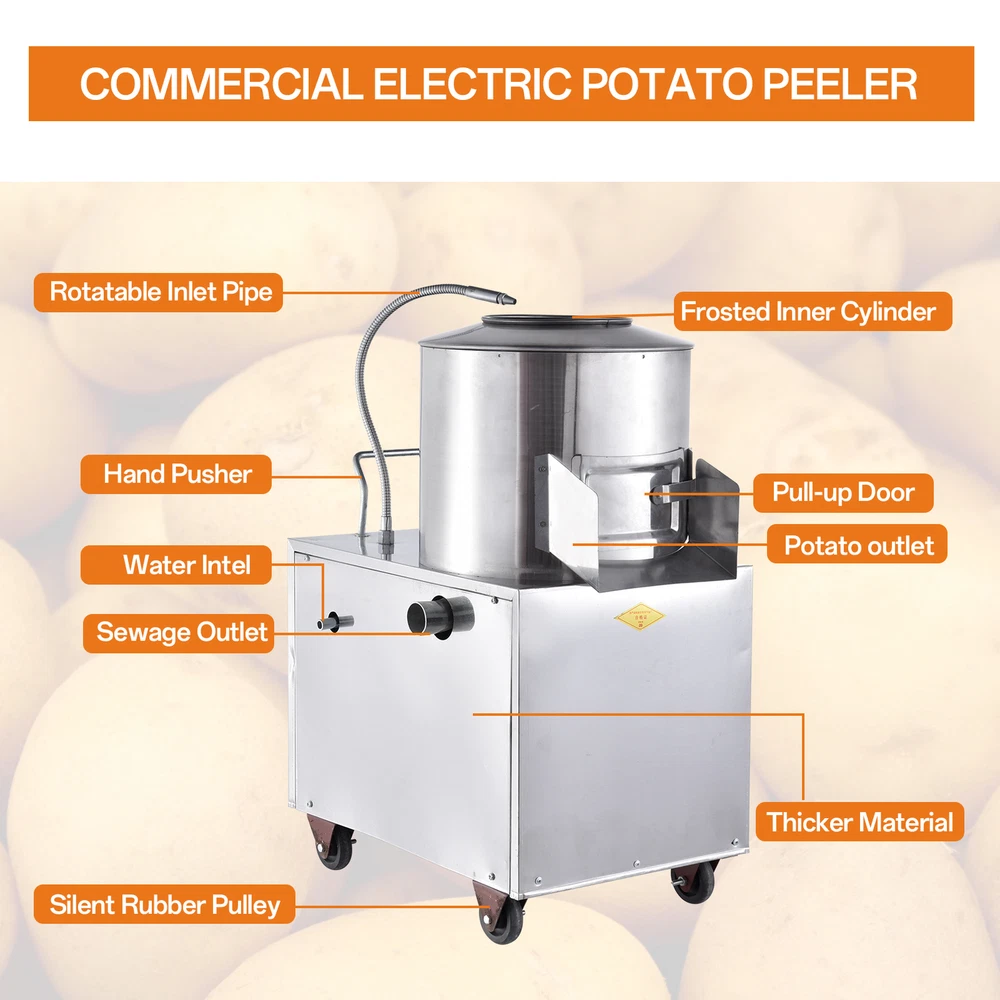 Electric Potato Peeler 1500W Commercial Potato Peeler 220KG /Hour Potato Washer Bullet Points: Unmatched Potato Peeling Capability: With food safety as a top priority, this 1.5KW electric potato peeler is built to last. Its stainless steel design can process 150-220kg of potatoes in just an hour, ensuring wonderful durability and high-efficiency performance, while maintaining optimum food safety standards Improved Peeling Efficiency: With a mighty motor, our electric potato peeler boasts peeling speed, while maintaining low breakage rates. Its adjustable water pipe design allows precision waterflow control, as you quickly collect your ideally peeled potatoes with minimal effort Safety Protection Ensured: Operate our electric potato peeler with peace of mind, thanks to its equipped leakage protection plug, waterproof on-off, and external transparent protective cover. With these improved safety measures, we ensure that it is safe to use and provide additional safety protection to prevent any possible accidents Multifunctional Peeling: Including potatoes, sweet potatoes, taro, and ginger, suitable for a range of vegetables using efficient centrifugal rotation friction peeling technology Humanized Design: Equipped with a humanized handle and steering casters, this electric potato peeler ensures 360-degree uniform peeling and a frosted inner wall design for easy mobility This 1.5KW automatic potato peeler features friction peeling technology, achieving 360-degree uniform peeling with a low breakage rate. Safe to operate, it is a convenient addition to any kitchen. Specifications: Product Name: electric potato peeler Material: Stainless steel Power: 1.5KW Voltage 110V/ 60HZ Capacity: 150-220kg/hour Product size: about 60x40x84cm/23.62x15.75x33.07 inches Packing List: 1* Automatic Potato Peeler 1* Instruction Manual Notes: 1. Due to different lighting and screen settings, the item color may be slightly different from the picture. 2. Due to different manual measurements, please allow a 1-2cm difference in size. 3. Please check whether there is any debris inside the machine before use. 4. It is strictly forbidden to put your hands inside the machine during operating. 5. Please make sure to disconnect the power supply before cleaning or disassembly. 6. Make sure the machine is reliably grounded to prevent electric shock. 7. Lubricate the bearings regularly to keep the machine running well. We accept PayPal payment,PayPal Credit,Credit card or debit card and so on. Payment should be completed within 4 (Four) days of auction closing. Or unpaid dispute will be filed for closing auction. We will leave a positive feedback immediately after payment is received. We appreciate a positive feedback as much as you do. If for some reason there is any issue with the purchase, please contact us prior to leaving feedback, we will be glad to work together and provide a satisfying solution. 1. We ship to your eBay address. Each package will be shipped via FedEx or UPS 2-8 business days with tracking number 2. Please check your shipping address carefully before checkout, it can't be changed if order completed. 3. Shipping within 1 business days once payment completed. Orders placed on weekend will be delay 1-2 days. 4. Please allow 6 business days for delivery to any destinations. 5. As a buyer, it is your duty to pay the tax when you make an order from abroad. Our price does not include taxes, VAT, or other hidden charges. 1. We maintain high standards of excellence FIVE STAR and strive for 100% customer satisfaction! 2. Positive Feedback is very important to us. We hope that you contact us immediately BEFORE you give us neutral or negative feedback, so that we can satisfactorily address your concerns. 3. We promise to offer the best price and high quality products. 1. If you have any questions, please send a ebay message. 2. We will reply within 48 hours of your email. Weekend will be delayed a bit.