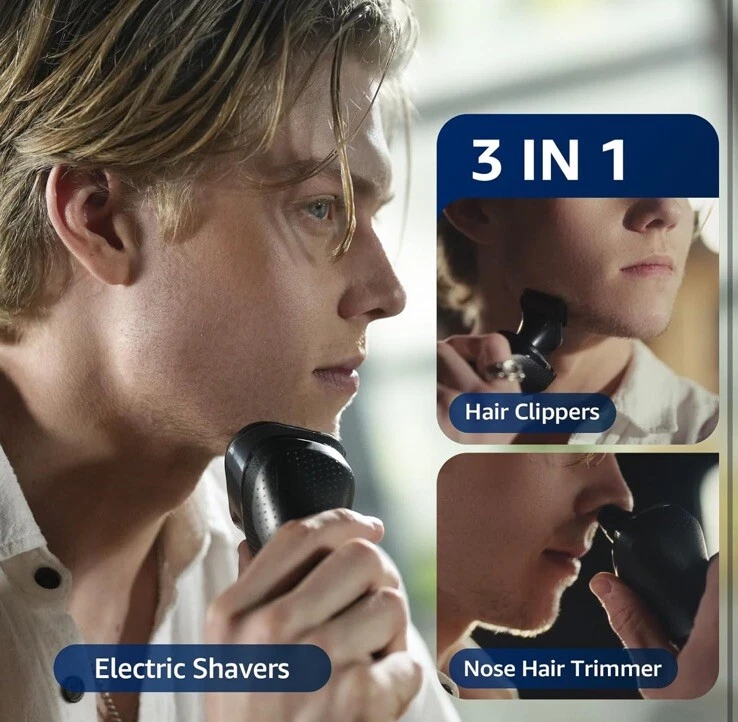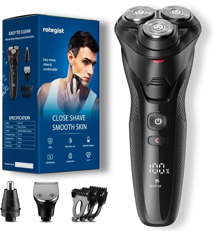 Electric Razor for Men, rategist Rechargeable Electric Shaver, Waterproof Wet Dry Cordless Razor, Adjustable Speeds, with Nose Hair Trimmer, Sideburns Trimmer