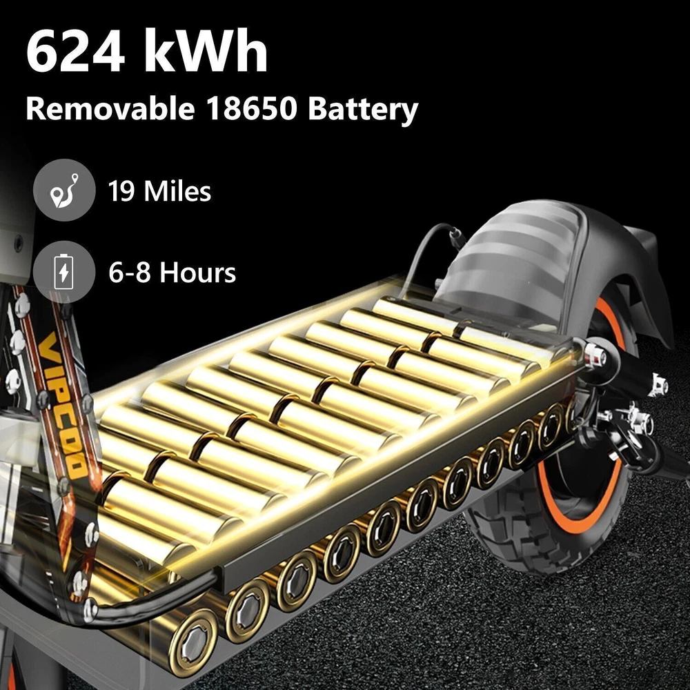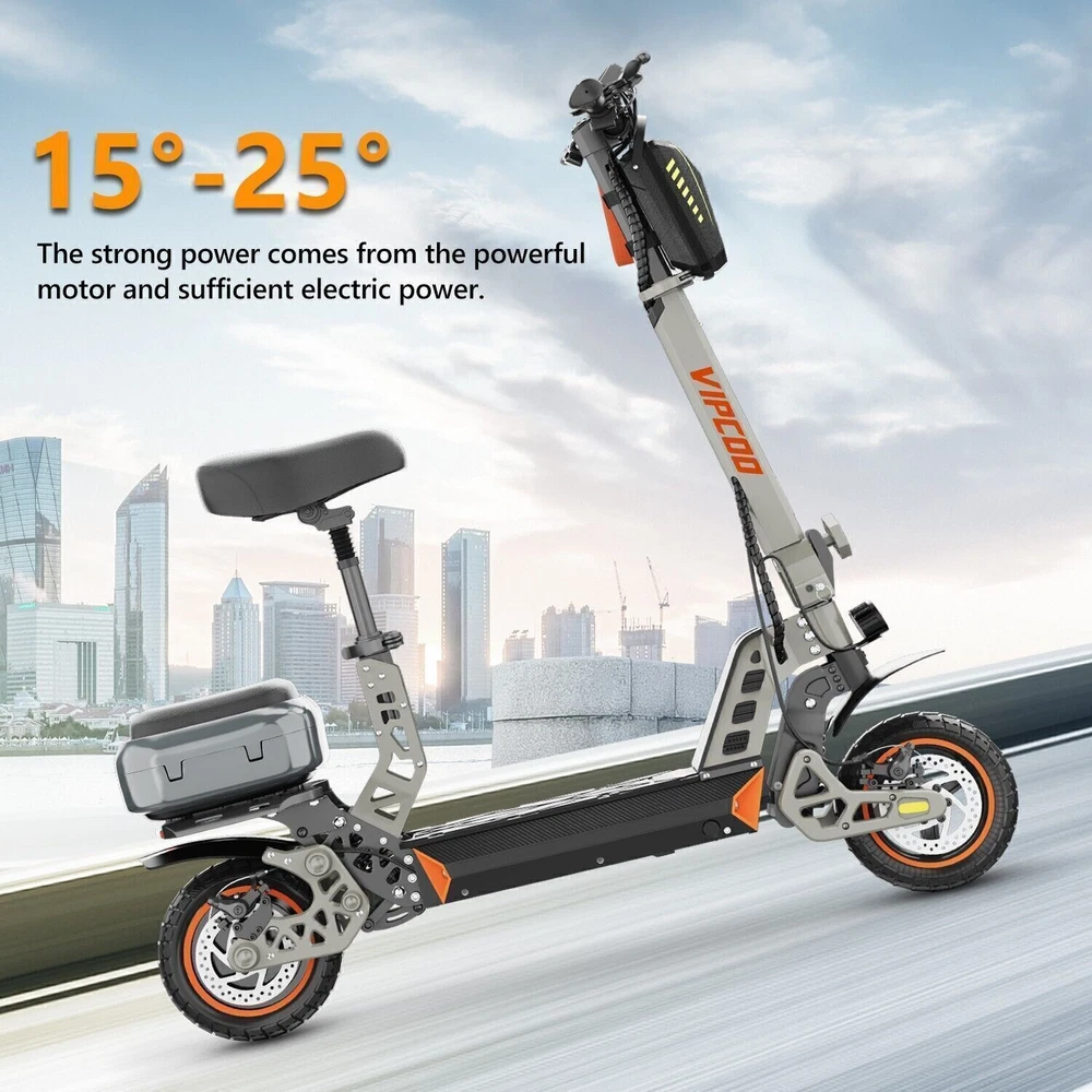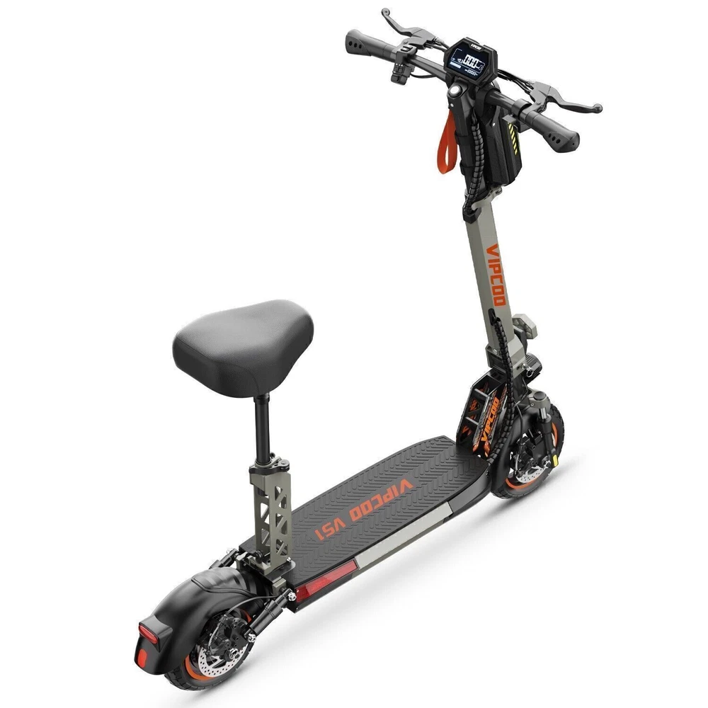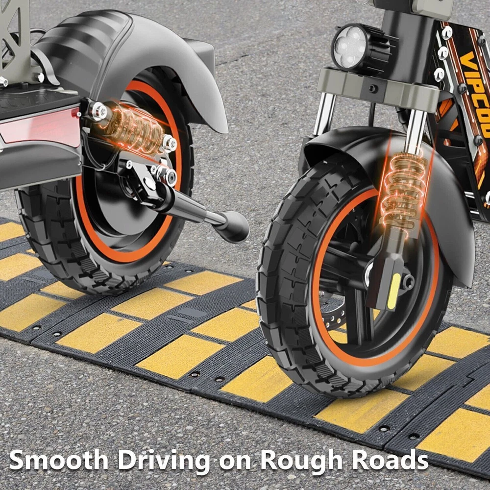 Product Description Model: VIPCOO VS1 Battery: 48V/13Ah Power: 700W Display Screen: Digital display Max Speed: 28 MPH (45 KM/H) Range: 19 Miles (20-30 KM) Max Load: 265 lbs (120 KG) Tire Size: 10 inch Tyre Type: Off-road air tires Charging Time: 6-8 hours Frame Material: Aluminum alloy Net Weight: 25.2 KG Gross Weight: 29.5 KG Package Size: 122.5 × 23.5 × 52 cm Brake: Front and rear disc brakes Light: Front LED headlights, side lights, and taillights Adapter: Input: 100-240V~50/60Hz 3.0A Max, Output: 54.6V 2.0A Additional Notes: The max load capacity is the maximum weight the e-scooter can withstand. Max speed & range may vary depending on the rider's weight, riding style, ambient temperature, battery level, and terrain. Package contents: 1 x Electric scooter. 1 x Instruction 1 x Tool set. 1 x Main charger. 🛴A new option that allows you to freely across the city - Our New VS1 Adult Electric Scooter with Seat which is with powerful battery(48V 13Ah), makes it easier for you to complete daily travel, and one charge is enough for you to ride for 15-45 miles under specific conditions. 🛴Let You Ride As You Want, Easy to Drive - Our New VS1 Escooter has three different riding modes (Eco: 9Mph, D: 18Mph, S: 28Mph), you can choose the most suitable mode for you according to your needs, and the 700w powerful high brushless motor allows you ride speed up to 28Mph, and handle all kinds of road conditions with ease! 🛴Comfortable Riding Experiences, Let You Enjoy Every Trip - Our New VS1 Electric Scooter for Adult adopts front and rear wheel suspension system and 10inch pneumatic tires, which means you can enjoy a smoother and more comfortable riding experience, even on rough roads! 🛴Make Your Safety More Secure - Our New VS1 Escooter for Adult is not only equipped with super bright headlight & taillight, but also has a side ambient light, which improves the safety of night riding and allows you to travel with peace of mind at any time. The perfect front & rear dual brakes and electronic braking system allow you to stop whenever you want. 【Important Note】- The max speed and max range of per full charged vary based on a lot factors, including: rider's weight, riding surface, incline, ambient temperature, battery level, riding style (stop/start vs cruising), wind direction, wind speed etc “Warning: It is illegal to ride electric scooters on public roads, pavements, or cycle paths. They are intended only for use on private land with the owner’s permission. See Guidance for local areas and rental operators of e-scooters.{e253595-1081650x} Our product: (1) Our product approved by UL2272/CE/ROHS certificates (2) Every piece of spare part will be inspected before assembling and very piece of completed product will be tested before shipment. Electric Scooter For Adult 24OOW Motor 37Miles Range,10-Inch Off-Road Tire 37mph 1078.0 USD Free shipping AOKDA-A1 Electric Scooter for Adults Teens Folding E-Scooter Commuter 48V/12.5Ah 250.38 USD 357.69 USD 39.99 USD 30% off 600W Electric Scooter Adults Teens Folding E-Scooter with Seat 48V/10AH 45Km/h 497.17 USD 599.0 USD Free shipping 17% off iENYRID 24OOW Dual Motor Electric Scooter Adult 10" Off-Road Tires + Seat 48V US 1200.0 USD Free shipping powered by