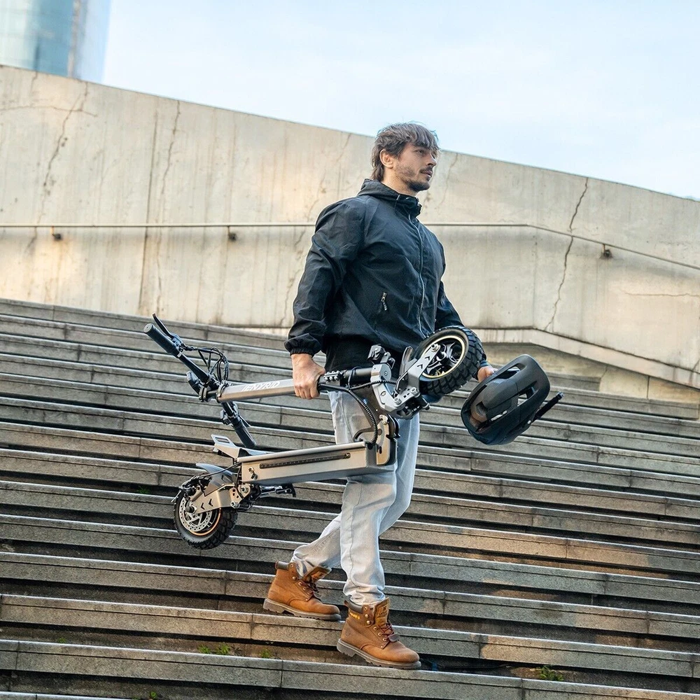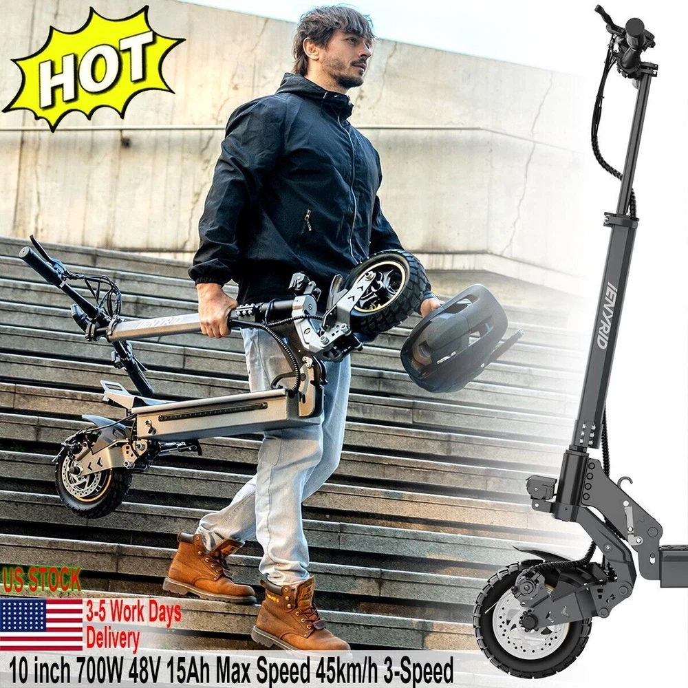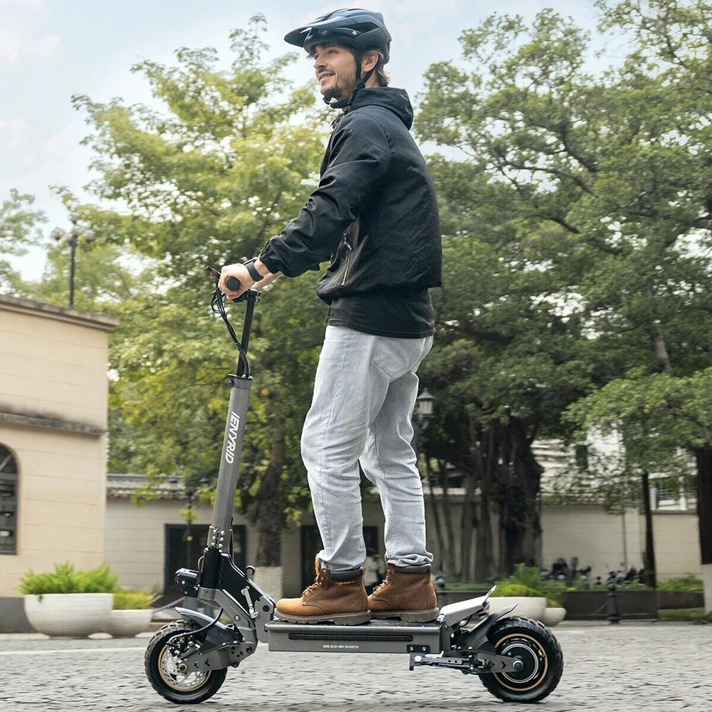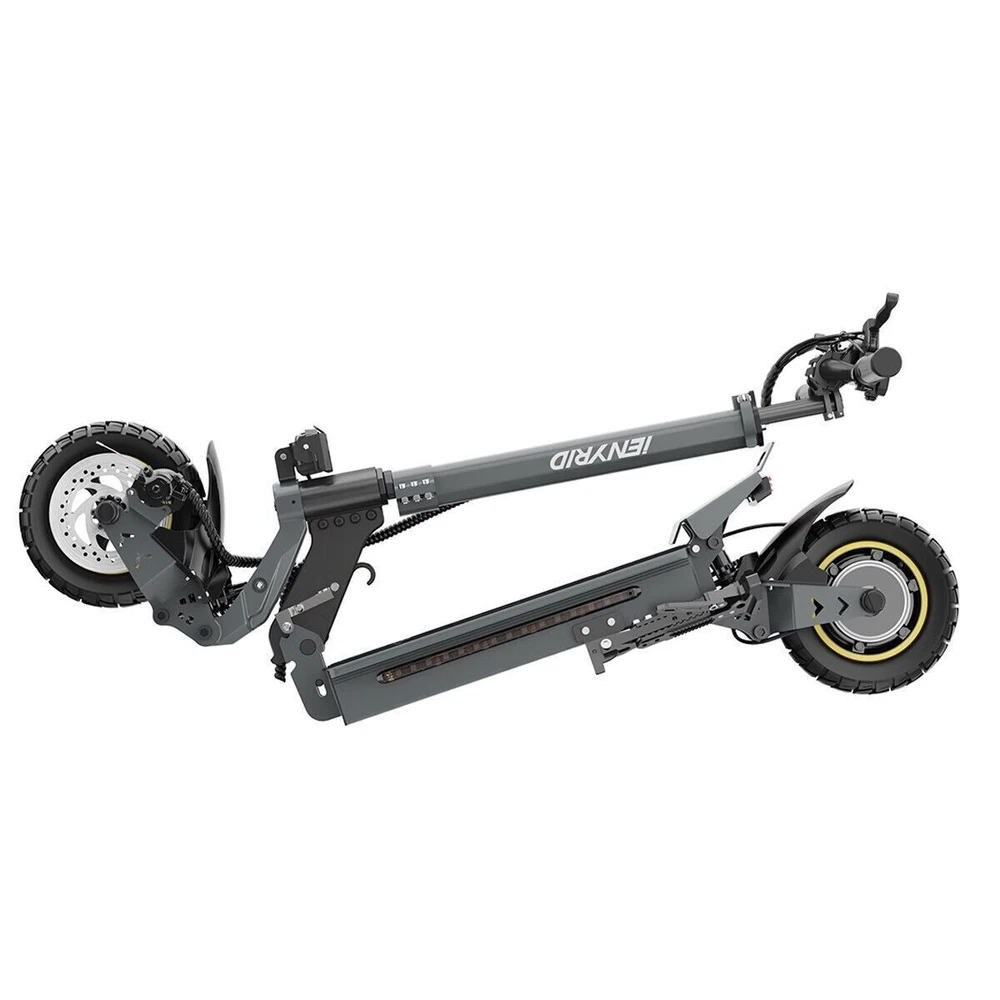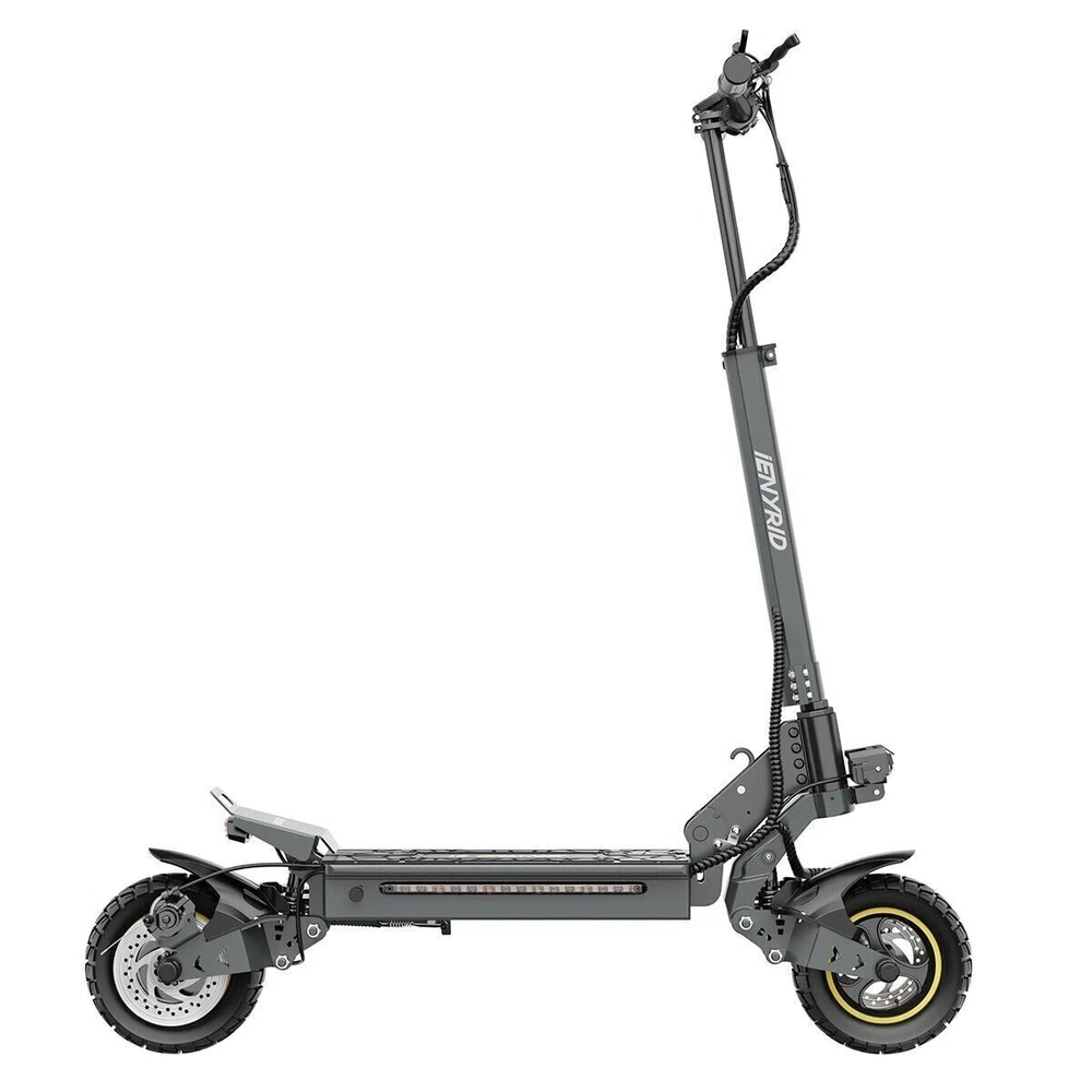 iENYRID 700W 48V Adults Electric Scooters Dual Motors Drive Commute Off Road E-Scooter 2025 Upgraded iENYRID Electric Scooter S-A Foldable Electric Scooter comes with a 700Wh (48V 15Ah) battery assisting 19-25 miles cruising range. S-A becomes an excellent choice for high-quality and comfortable riding. It is suitable for commuting to work, shopping in supermarkets, mountain cross-country and traveling. Powerful Motor & Long Lasting Battery S-A electric scooters f With powerful Dual 700W Motors, detailed parts, detachable seat and foldable design, brings faster acceleration and climbing ability to this electric scooter, which can reach 28 mph max and max 30°climbing angle. Comfortable Commuting IENYRID S-A adult off road electric scooter comes with upgraded 10-inch off-road tires and front and rear dual suspension to ensure max comfort even on bumpy roads. Also, the aviation-grade aluminum frame is stronger and lighter, which makes the scooter much more elegant to look at and handle as well. And it has a max load of 280 lbs. Foldable Electric Scooter Easy to fold and carry, carry it on public transportation or store it in your car to get to wherever you want. Dynamic, Easy storage in car trunks and other compact spaces, occupying little space and suitable for travel and transportation commute. IPX5 Super Waterproof & LED Intelligent Lighting System The waterproof frame and deck are tightly sealed against water, accredited with an IPX5 ingress protection rating painting. The head of the e scooter is equipped with three LED lights with different functions to ensure safe and worry-free riding at night. Specification: Type: Electric Scooter for Adults Model:S-A Motor: 700W Tyre Type: Air tires Battery specification: 48V 15AH Charger specification: Input 100-240V 50/60Hz 2.0A, Output 54.6V 2A Max Controller specification: DC48V/36A Charging time: 6-8 hours Frame Material: Aluminum alloy Light: Front LED headlights, sidelights, and taillights Drive mode: front and rear wheel dual drive Max Speed: 28MPH Max Range: 19-25 Miles Max Load: 265 lbs Maximum climbing ability: ≤ 30 ° Tires: 10 in off-road pneumatic tires Frame Material: aluminum alloy Braking method (front/rear): mechanical braking Front shock absorber: Yes Rear shock absorber: Yes Front headlights: integrated with horn Tail lights: Yes Edge light: Yes Brake lights: Yes Net Weight: 65 lb Front and rear tire pressure: 50 ± 10psi Product Size (L x H x W): 47.24 x 49.6 x 23.62 in (unfolded), 45.67 x 20 x 23.62 inch (folded) Package Size: 128*24*48 cm Package Contents: 1 x Charger 1 x User Manual 1 x Electric scooter Warning: It is illegal to ride electric scooters on public roads (except under very specific circumstances), pavements or cycle paths. They are intended only for use on private land with the owner’s permission.