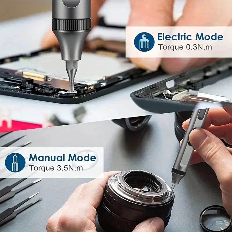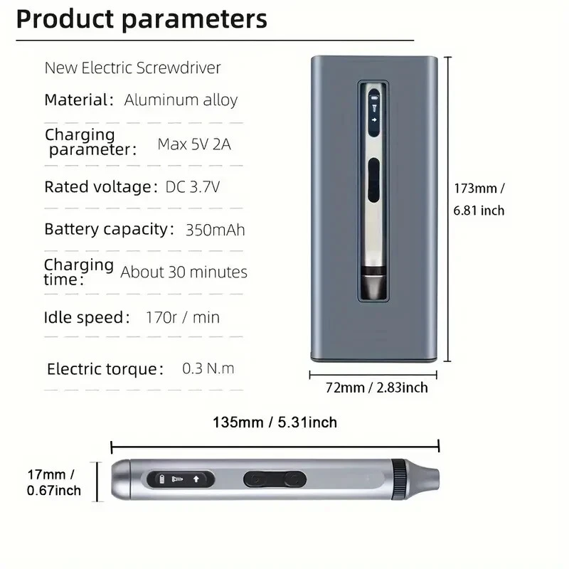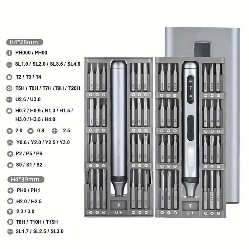 Tool Cord Style: Cordless-feature Items Included: Case Power Supply: Battery Powered (no Plug) Battery Properties: Rechargeable Battery Rechargeable Battery: Lithium Battery Brand: Hoehne Battery Capacity (mAh): 350MAh Characteristic of the item 【Dual Mode & F/R Button】- Electric automatic screwdriver is designed with durable aluminum alloy surface. With 170r/min rotation speed, supporting both manual mode (torque of 3.5N.m) and electrical mode (torque of 0.3N.m). The forward and reverse button of Hoehne cordless screwdriver meets your requirement of tightening or loosening screw bits with just a single press for higher efficiency. 【Magnetic Design】- Precision small electronics screwdriver set comes with a magnetic case that keeps the screwdriver and 48 metal bits orderly in place. The case, screwdriver and bits are all magnetic for easy attachment. Even if you turn the case upside down, the internal bits will not fall out. With an extra magnetization area, the drill bit’s magnetization can be increased when it touches here. 【50 in 1 for Multipurpose】- Mini precision screwdriver set consists of 48 different types of S2 steel bits, 1 electric screwdriver handle, 1 USB-C cable,1 tweezers and 1 crowbar, which are able to assemble and disassemble most electronics products, small household appliance, Pc building, tablet computers, mobile phones, Macbook, iPad, watch, laptops, Camera, eyeglasses, drones, clocks, controllers, RC Model, joystick, keyboard, small handheld devices, PS5 Xbox etc. 【Push pop-up Design & Shadowless LED Lights 】- The pop-up mechanism brings you satisfying sensation for every open and close of the case. Portable auto motorized screw driver embeds 2 shadowless LED light, which will illuminate the working area and dim corners, allowing you to maintain a clear vision in the darkness. and also a ideal present for , Birthday, Thanksgiving Day, Fathers' Day, etc. 【Long-lasting Battery】- Powered by 350mAh rechargeable lithium battery, it only takes rechargeable electrician screwdriver 60 minutes of full charge time to process up to 1000 screws, which is more than enough for your electronic repair work. Besides, the universal USB-C charging interface makes the charging more convenient.