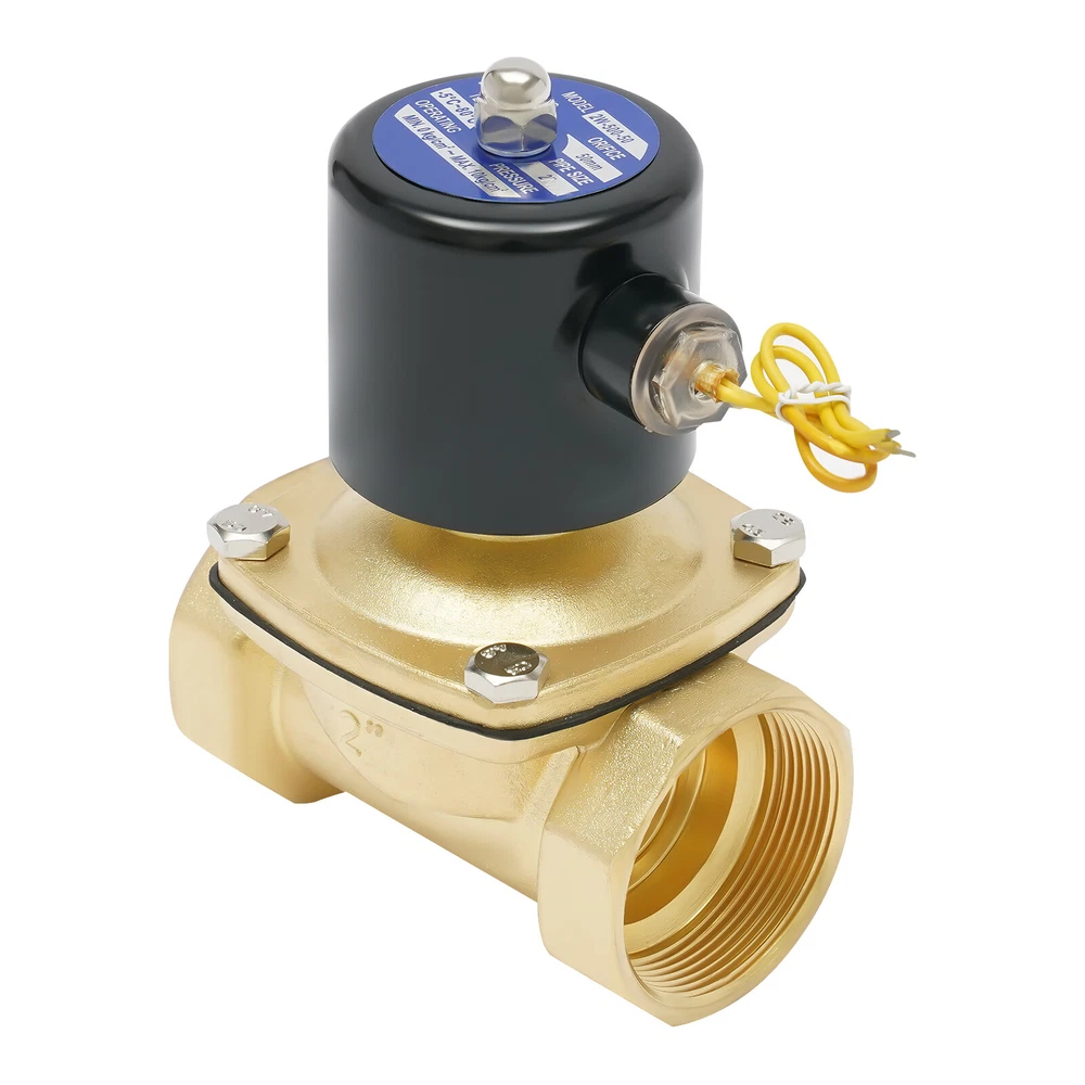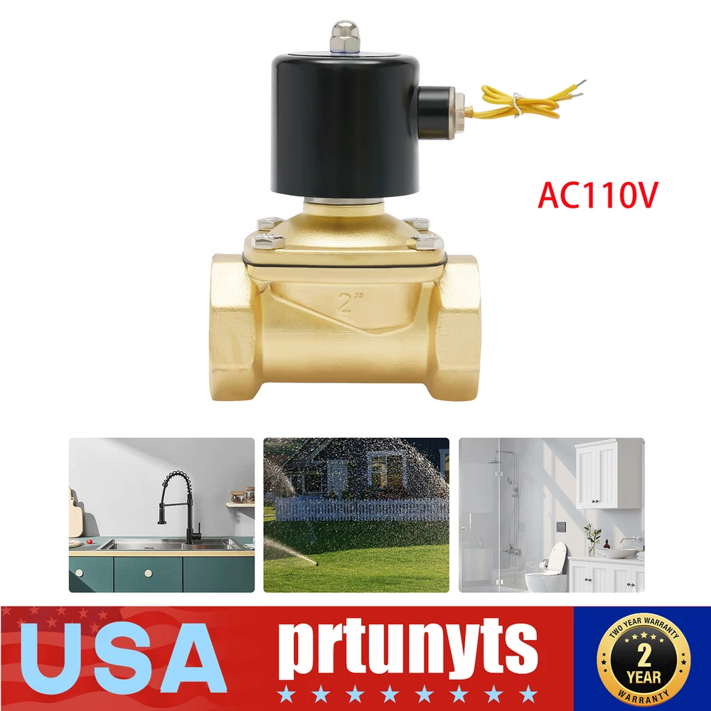 Specification Model: 2W500-50 Color: Gold, Black Material: Brass, Iron Style: Modern Voltage: AC 110V Type: American Standard Surface Treatment: Polished Process Thread Type: NPT Gasket Type: NBR Orifice: 50mm/1.9inch Pipe Size: 2inch/5cm Working Temperature: -5-80℃/-41-176℉ Operating Pressure: 0-10kg/cm² (0-142psi) Working Medium: Air, Gas, Water, Oil (Exclude Gasoline&Kerosene) Type: Two-way, Normally Closed Flow Direction: One-way Transmission Mode: Direct-acting. Net Weight: 2.3kg/5.0lbs Gross Weight: 2.4kg/5.2lbs Package Size: 18*13*9.5cm/7*5*3inch Product Size: 12.3*9.3*17.6cm/4.8*3.7*6.9inch Thread Diameter: 5.8cm/2.3inch Electric Solenoid Valve Brass Water Air Gas Normally Closed 2-inch NPT AC110V 2" NPT Electric Solenoid Valve 110V AC Normally Closed Solenoid Valve Description Made of high-quality brass and iron, this electric solenoid valve is strong and durable. It can quickly open or close the flow and can be used many times. The threads and a gasket ensure a tight connection. It is applicable to non-corrosive water, gas and other media. Details Round Edges: Round edges rather than sharp edges can avoid scratching your hands. Two-way Type: The two-way type makes it easy to be connected with pipes. Application It is suitable for hot or cold water (-41-176℉), gas, air, low viscosity fluids (<20 cst), oils and hydrocarbons, or diesel fuel. It can be used in DIY projects, medium-temperature applications, harsh chemicals, flow control of irrigation systems, reverse osmosis systems, home brewing, home swimming pools, home water towers, and industrial wastewater discharge. Specification Model: 2W500-50 Color: Gold, Black Material: Brass, Iron Style: Modern Voltage: AC 110V Type: American Standard Surface Treatment: Polished Process Thread Type: NPT Gasket Type: NBR Orifice: 50mm/1.9inch Pipe Size: 2inch/5cm Working Temperature: -5-80℃/-41-176℉ Operating Pressure: 0-10kg/cm² (0-142psi) Working Medium: Air, Gas, Water, Oil (Exclude Gasoline&Kerosene) Type: Two-way, Normally Closed Flow Direction: One-way Transmission Mode: Direct-acting. Net Weight: 2.3kg/5.0lbs Gross Weight: 2.4kg/5.2lbs Package Size: 18*13*9.5cm/7*5*3inch Product Size: 12.3*9.3*17.6cm/4.8*3.7*6.9inch Thread Diameter: 5.8cm/2.3inch Solenoid Valve Installation Instructions Please clean and rinse the impurities in the pipeline before installation. The thread should be wound with tape. Be careful not to drop the debris into the pipeline to prevent blocking the solenoid valve. When installing, keep the arrow direction on the valve body consistent with the flow direction of the medium. If there is reverse pressure, a check valve shall be installed. All valves are unidirectional, and they need to be installed in the direction of the arrow when in use. If the connection direction is opposite, the valve will not start/close normally. To extend the service life of the solenoid valve, the installation should be horizontal and the coil should be installed vertically upwards. After the solenoid valve coil outlet wire (connector) is connected, it should be confirmed whether the contact of electrical components is firm. Shake or loose may cause the solenoid valve unable to work. Solenoid valves that are out of service for a long time should be cleaned of impurity condensation before use. Solenoid valves are not suitable for fluids under the following conditions: A. Changing into a liquid by heating and into a solid by cooling. B. Viscosity greater than CST20 C. Fluid with impurities that are easy to block the valve. Pay attention to the insulation of the circuit. The wire has no requirements for positive and negative poles. The valve is not a continuous working valve, and the continuous use time in a single cycle shall not exceed 2 hours. Overuse will shorten the service life of the valve and may cause the valve core to burn out. Package Included 1* Electric Solenoid Valve Notes 1. Due to the chemical composition of brass, this valve should not be used with drinking water. 2. All solenoid valves need some pressure to actuate. 3. Please don't use the gasket for gasoline or it will corrode the gasket and can cause serious gasoline leakage or fire. 4. When it is used in low temperature or freezing environment, please heat the solenoid valve or set thermal insulation measures. 5. When the solenoid valve is installed in the pipeline that needs continuous production, it is better to build a bypass pipeline to facilitate the repair and maintenance of the solenoid valve and avoid the impact on production. 6. Please allow the slight color difference caused by the shooting light and 1-3cm error due to manual measurement, and make sure you do not mind before ordering. Payment Delivery details Terms of sales About us Contact us Payment We accept ebay payment 。 Fees such as import duties, taxes are not included in the item price or shipping costs. These charges are the buyer's responsibility. Delivery details Shipping: 2-9 working days to: USA Terms of sales We maintain high standards of excellence and strive for hundred percent customer satisfaction. Feedback is very important to us. We hope that you contact us immediately before you give neutral or negative feedback, so that we can address your concerns. It is impossible to address issues if we do not know about them! About us Your satis faction is our ultimate goal. We work hard to earn your trust and future business. Our certified technicians have tested each item before shipping. The unit comes with 1 year limited warranty on all manufacturing defects. a) If you receive a defective item, you may return it or ask for a discount. Please contact us within 14 days after you receive the package. b) What you returned must be intact and in its original packaging as re? u. Customer is responsible for shipping costs of the returned item. c) We will cover the cost of shipping back t with the shipping rate indicated in the registration page. We will send you a new unit or refund the fu