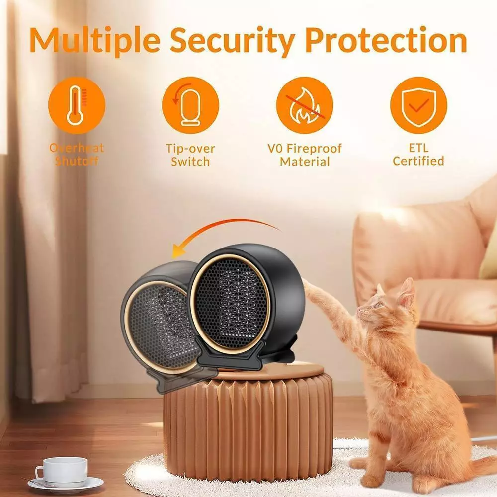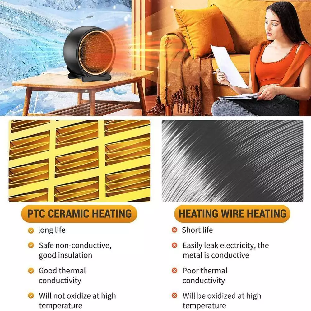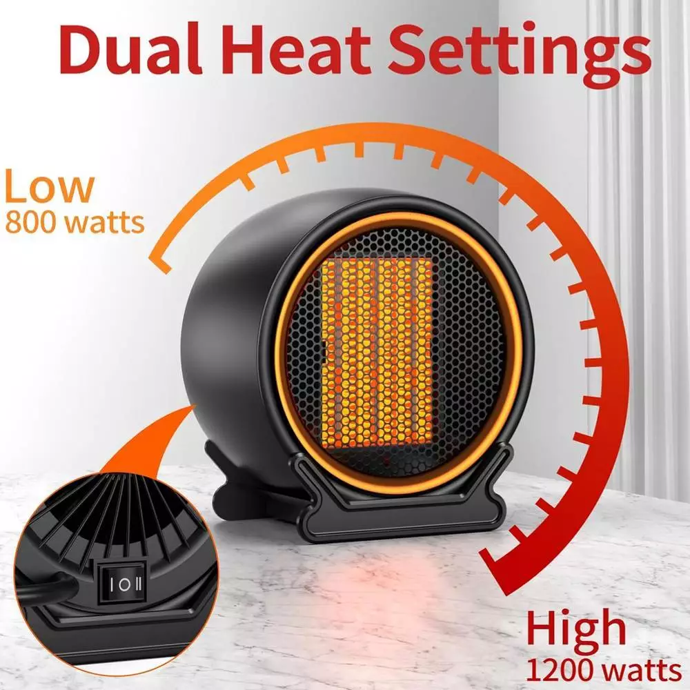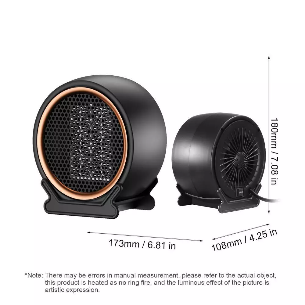 Note: Pl ease don't cover the fan when the machine working. Please don't use it for a long time. There is no light in the use of the product, and the picture is a display effect. Factory mass production, the product may have small scratches,we promise all products are brand new. F eatures: Small but Powerful This compact space heater is heated with advanced PTC ceramic, which emits extraordinary intense heat, instant comfort and warmth, mini lightweight and portable, perfect for desktop, countertop bedside, bedroom , bathroom, study, kitchen, office and indoor use. 2 Seconds Fast Heating Fan Mode This 1200W portable heater heats the air around you in 2 seconds! Quality space heaters use PTC ceramic heating technology and high-speed fan, quickly release a large amount of heat for whole house heating, save electricity effectively, long life, for your family's office, and provide a personalized and comfortable temperature. 2 Adjustable Heating Power Two heating modes and one natural wind mode are available, including 1200W (high), 800W (low) power settings .Just press the button you can enjoy comfortable warmth. Low Noise and Energy Saving Automatically adjusts the heating mode according to the room temperature: This indoor heater will save money on your electric bill while keeping you comfortable. Our portable electric heaters are more energy efficient and quieter than traditional ones. The working noise is only 45 decibels. The internal heaters will not interfere with sleeping, studying, reading or working, giving you an ultra-comfortable quiet space. Portable Mini Spac e Heater The low energy consumption heater is easy to carry, light weight and small in size. You can easily take the heater anywhere. Internal heaters are small enough that most people can use them in their bedrooms while they sleep. Heart Warming G ift for Winter This would be ideal for family, friends and girlfriends on cold winter days or while on vacation. When you hand it over to the gift, they will feel the warmth of your heart. Descriptions: Name:Smart Heater Fan Type:Heater Fan/Space Heater Features:800/1200W Power,PTC Material,Overload Protection,2 Levels Winds,Portable Design,Tip-Over Protection,3s Heating Rated voltage:110V,50Hz Power:800/1200W Gear: low gear 800W, high gear 1200W Noise: ≤50dB Applicable area: 10-20 ㎡ Heating mode: PTC ceramic heating Product size: 16.5*11*18cm Single weight: 0.80kg Plug:US Plug Color:White/Black Packages: 1x Space Heater fan 1x Manual
