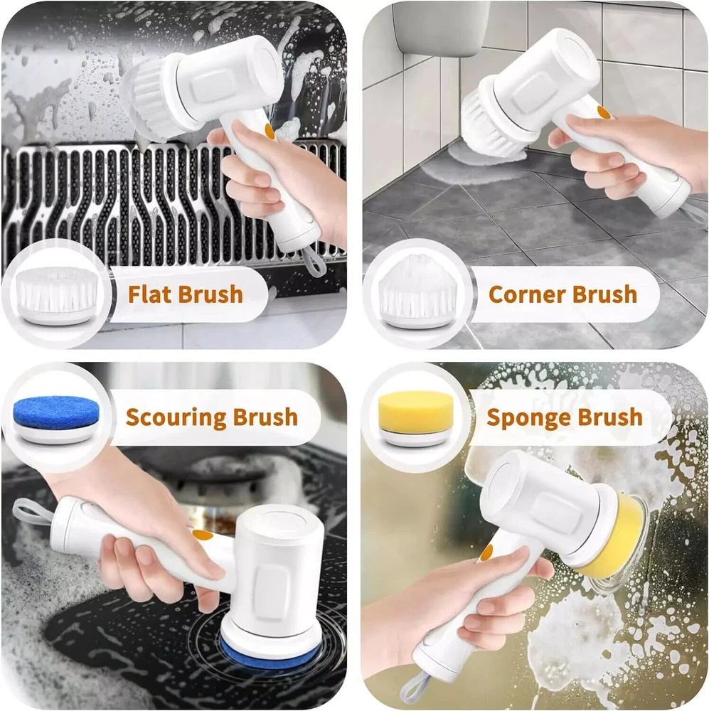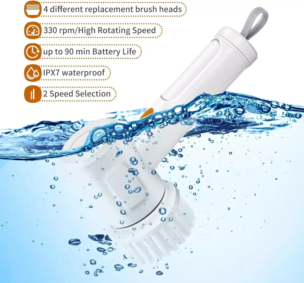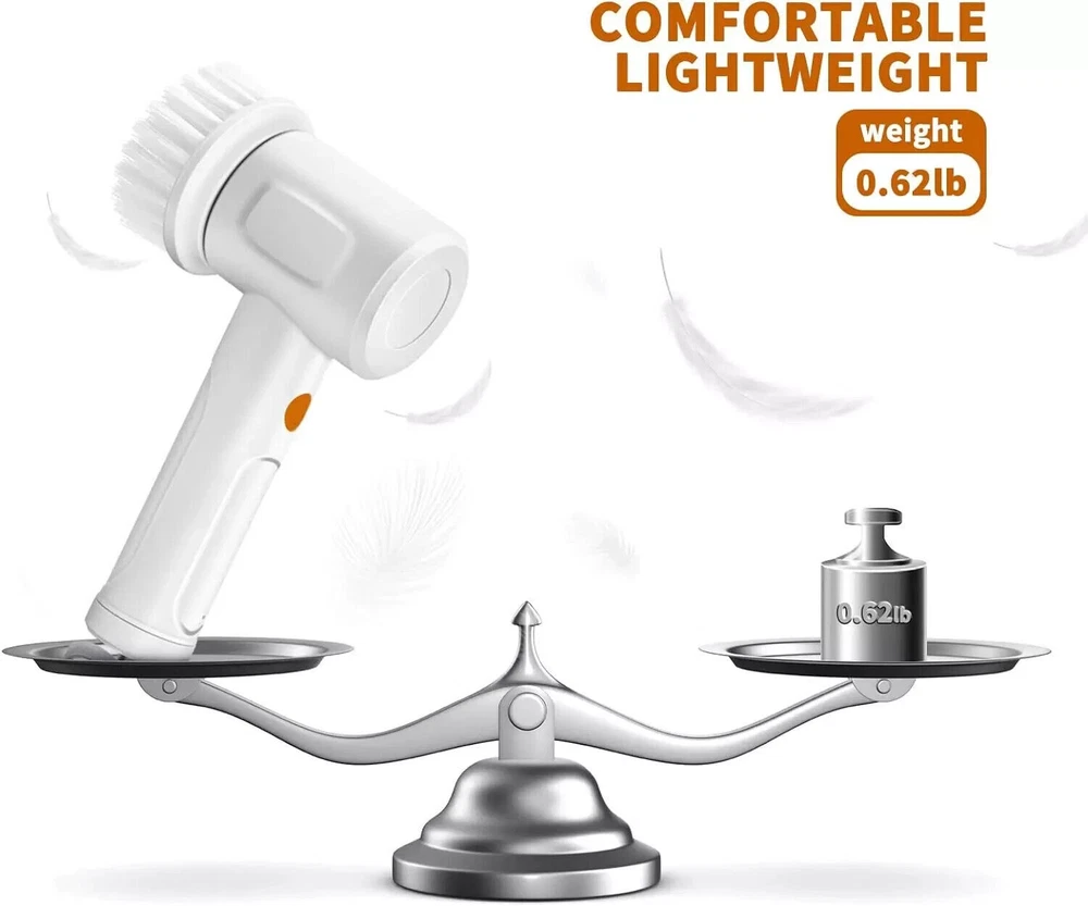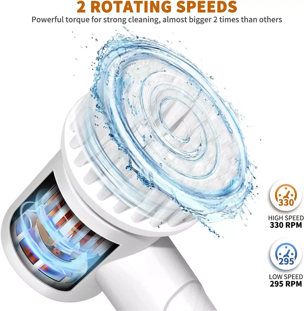 Electric Spin Scrubber-Power Scrubber,Electric Cleaning Brush Cordless Power Scr 【Efficient & Powerful】:Our powerful electric spin scrubber oscillates at over 330 rpm/high rotating speed to deep clean dirt and grime. No more manual labor with a traditional cleaning brush! The power scrubber after charging for about 2.5 hours, it can work continuously for up to 120 minutes. Long-lasting battery life enough for daily cleaning. 【4 Kinds of Replaceable Brush Heads】:This electric cleaning brush comes with 3 interchangeable heads for targeting different areas efficiently. Our electric cleaning brush scrubber can tackle all cleaning jobs. The different types of brush heads (bathroom scrubber、 scrub brush for cleaning dishes、bathtub scrubber、cepillo electrico para limpiar)cater to all cleaning areas in kitchens and bathrooms, such as floors, tiles, bathtubs, ovens, stoves, sinks, pots and pans, etc. Any corner can be clean as new! 【Cordless Power Brush】:Enjoy maximum mobility and convenience as this high-performance electric scrubber is battery-operated and lightweight -- allowing for easy carrying from room to room. No more tangled cords or difficult to reach areas. Our electric scrubber is cordless, portable, and rechargeable for easy use anywhere and anytime. 【IPX7 Waterproof】: The long-lasting battery life is good enough for all the cleaning. The professional IPX7 waterproof level enables the spin scrubber to work in the water without being damaged. You no longer have to worry about cleaning brush falling into the water.The shower cleaning brush electric spin scrubber is a must have for every family. Good gift idea for friends, families. 【Ergonomic Design】:This electric spin scrubber kitchen & bathroom cleaner features a comfortable grip handle that allows for easy maneuverability and precision when cleaning, ensuring that scrubbing is now painless and efficient. Say goodbye to manual scrubbing with an electric scrubber that does the hard work for you.