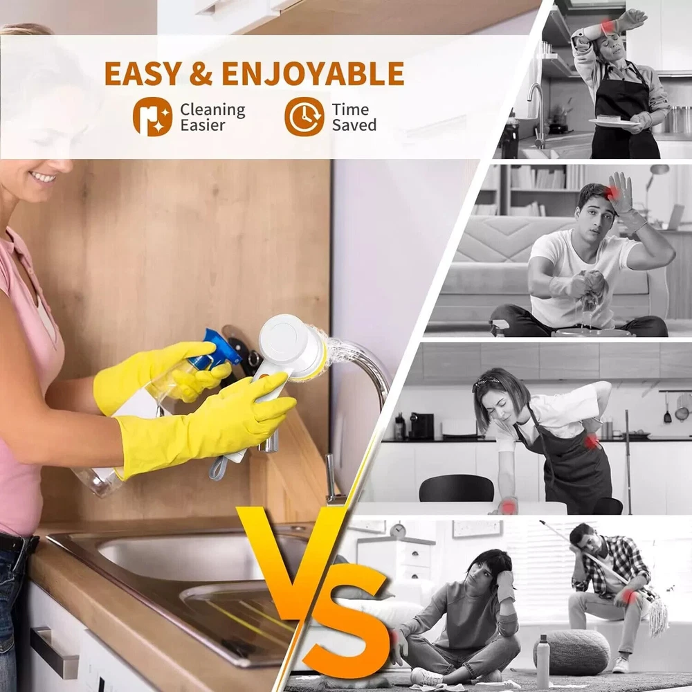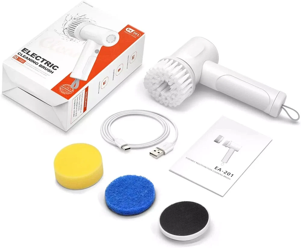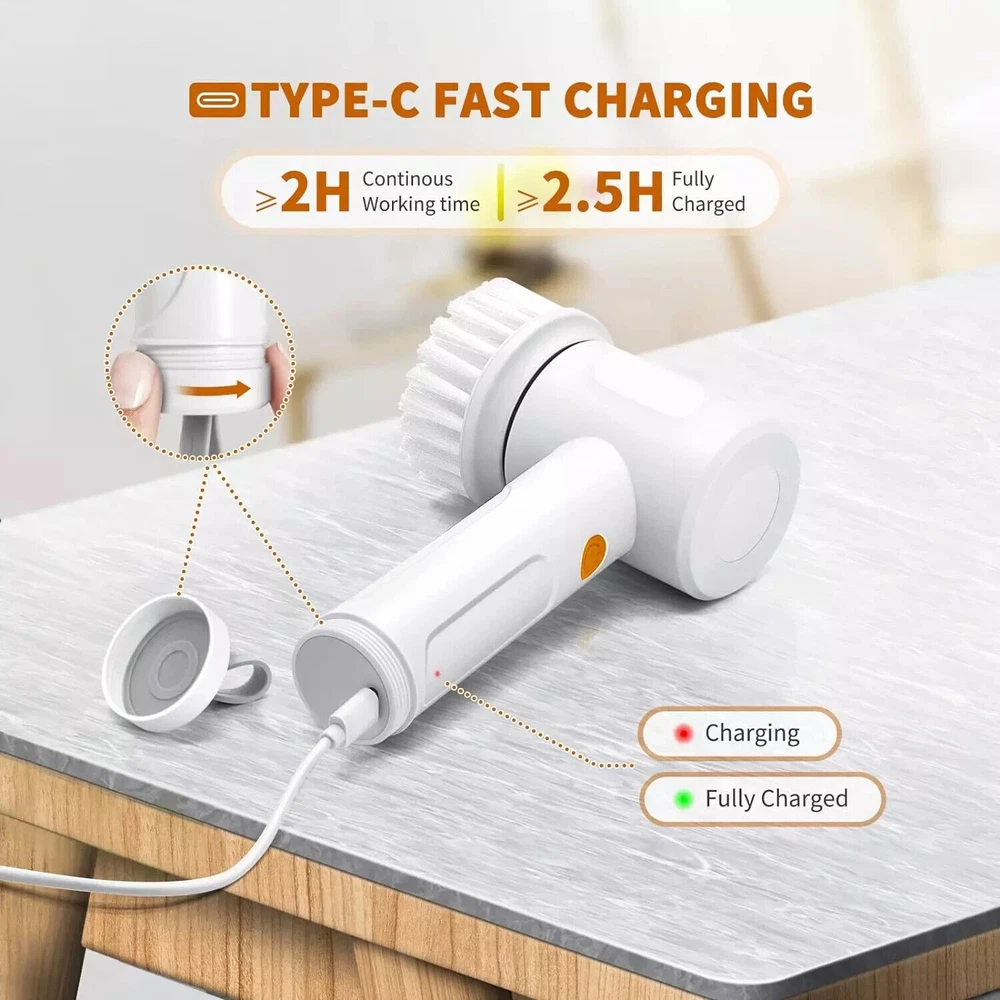 Electric Spin Scrubber-Power Scrubber,Electric Cleaning Brush Cordless Power Scr 【Efficient & Powerful】:Our powerful electric spin scrubber oscillates at over 330 rpm/high rotating speed to deep clean dirt and grime. No more manual labor with a traditional cleaning brush! The power scrubber after charging for about 2.5 hours, it can work continuously for up to 120 minutes. Long-lasting battery life enough for daily cleaning. 【4 Kinds of Replaceable Brush Heads】:This electric cleaning brush comes with 3 interchangeable heads for targeting different areas efficiently. Our electric cleaning brush scrubber can tackle all cleaning jobs. The different types of brush heads (bathroom scrubber、 scrub brush for cleaning dishes、bathtub scrubber、cepillo electrico para limpiar)cater to all cleaning areas in kitchens and bathrooms, such as floors, tiles, bathtubs, ovens, stoves, sinks, pots and pans, etc. Any corner can be clean as new! 【Cordless Power Brush】:Enjoy maximum mobility and convenience as this high-performance electric scrubber is battery-operated and lightweight -- allowing for easy carrying from room to room. No more tangled cords or difficult to reach areas. Our electric scrubber is cordless, portable, and rechargeable for easy use anywhere and anytime. 【IPX7 Waterproof】: The long-lasting battery life is good enough for all the cleaning. The professional IPX7 waterproof level enables the spin scrubber to work in the water without being damaged. You no longer have to worry about cleaning brush falling into the water.The shower cleaning brush electric spin scrubber is a must have for every family. Good gift idea for friends, families. 【Ergonomic Design】:This electric spin scrubber kitchen & bathroom cleaner features a comfortable grip handle that allows for easy maneuverability and precision when cleaning, ensuring that scrubbing is now painless and efficient. Say goodbye to manual scrubbing with an electric scrubber that does the hard work for you.