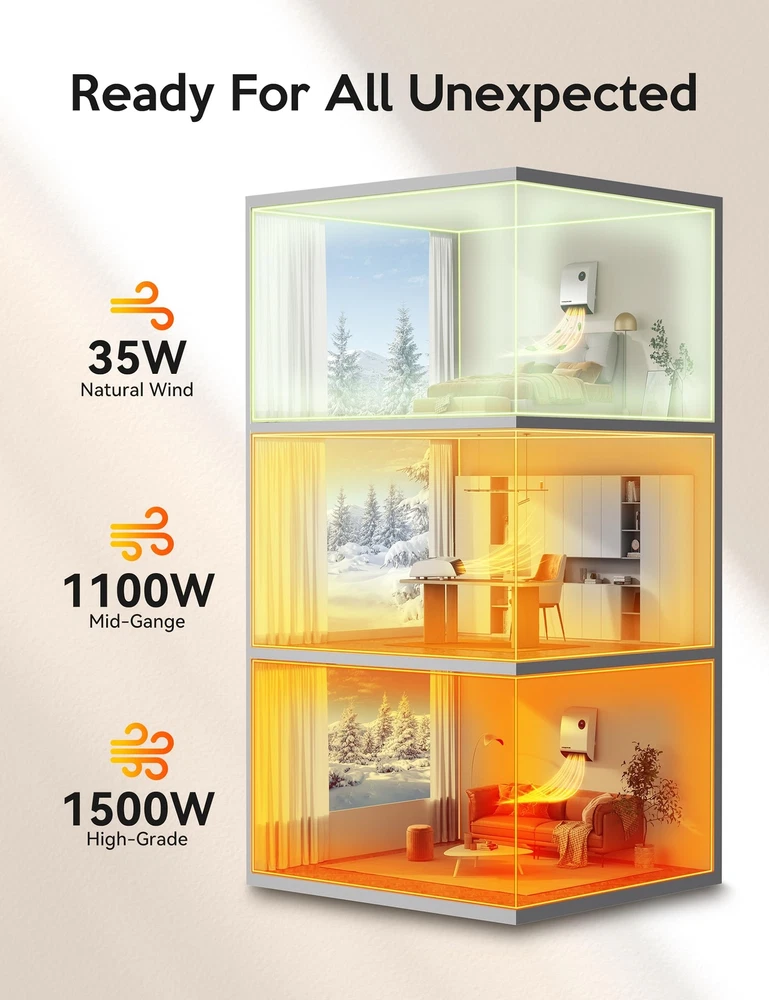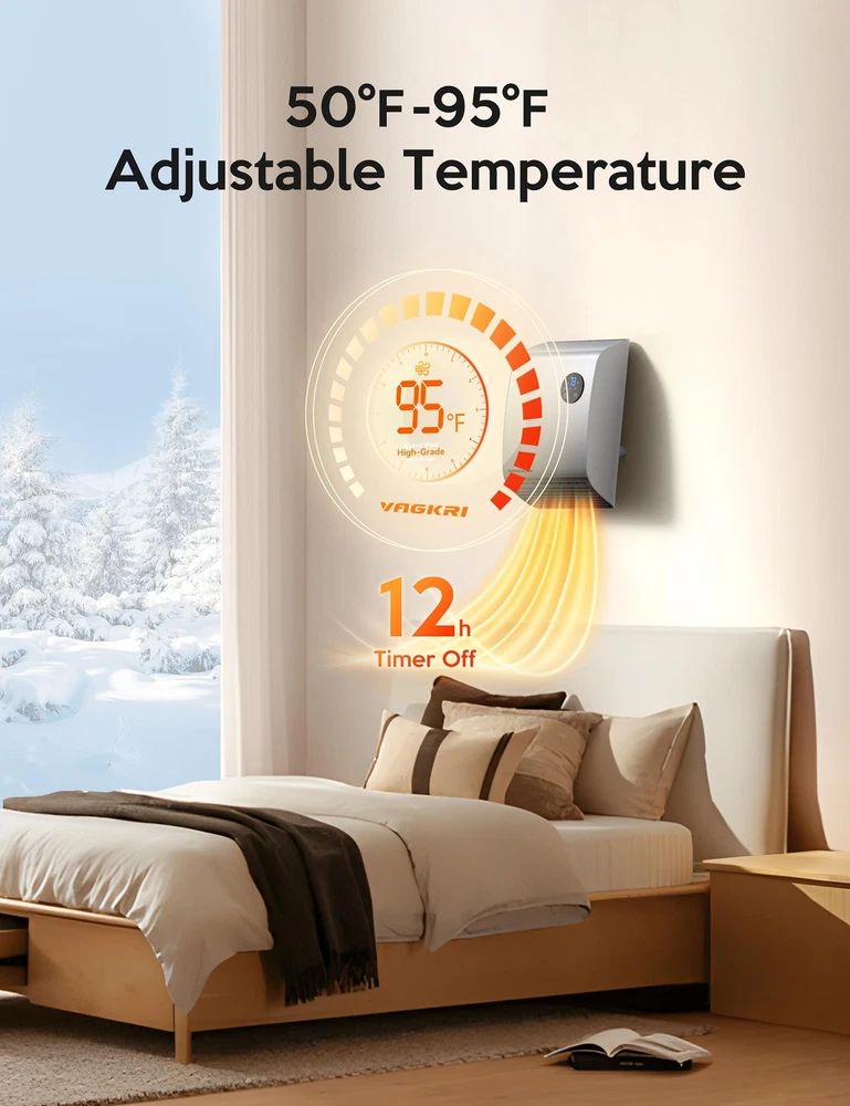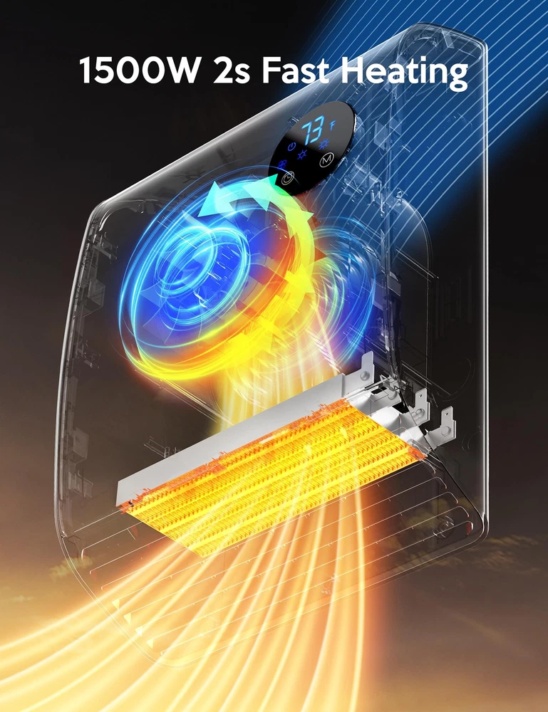 Electric Wall Heaters for Indoor - 2S 1500W Fast Heating Space Heaters for Indoor Use, Energy Efficient Indoor Space Heater Panel Wall Heaters with 3 Fan Speeds, Thermostat, Remote Continuous use for 24 hours, in order to avoid accidents, the heater will be automatically turned off. Multiple Protection Safety System - The heaters are made of V-0 flame retardant material to avoid any fire hazard, the UL 1278 Test underscores its commitment to your safety. The overheating protection system will shut off the space heater if it overheats. Child lock design gives you peace of mind and protects children, the elderly and pet. Heat the Way You Like - with multiple modes (high/medium/fan only), high-grade (1500W) can quickly heat up to the temperature you need in 2s, mid-range (1100W), fan (35W). 50-95℉ adjustable temperature , use the digital thermostat to personalize your own comfort level from 50 to 95 degrees Fahrenheit in 1 degree Fahrenheit increments. Precise heating for precise comfort. Compact and Powerful - 9.96" x 13.66" x 5.67"", the portable heater can be hung directly on the wall or placed on the table without taking up much space. Touch design, you can directly touch the screen to set the temperature, or you could control the temperature you want by remote control. Modern design with elegant bottom vents and remote controls to keep you warm anytime, anywhere. Easy to Install - Installs easily in minutes (no electrician required). Easy to operate and clean, with no moving parts, just daily wipe down maintenance. Compared to expensive central heating systems, there are no additional installation costs and you can do it yourself. Slim, sleek, space-saving design reduces floor clutter! Save Energy - The Portable Air Heater can heat any desired area of your home at any time. Safe and efficient heating capacity can replace central heating systems. 0-12 hours automatic shutdown, you can set the shutdown time after falling asleep to save your electricity bill. Note: There is a 60s countdown for turnoff to prolong the service life of the heater.