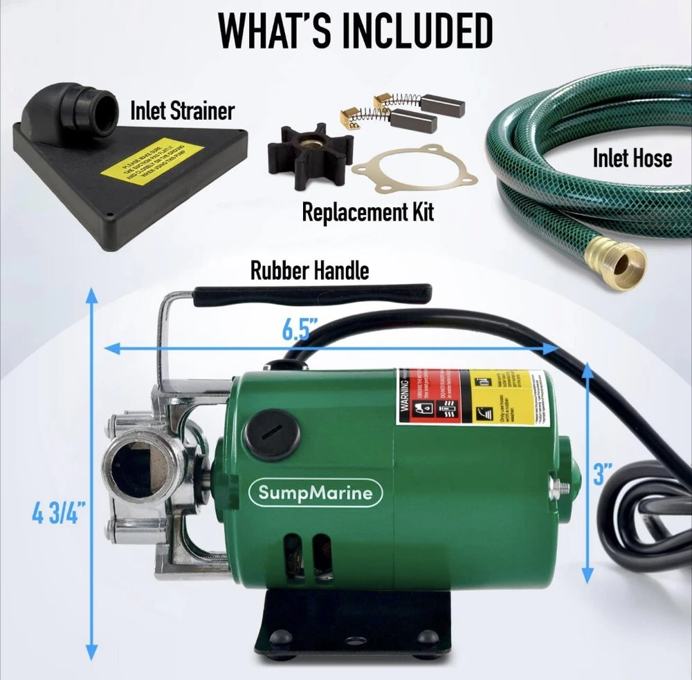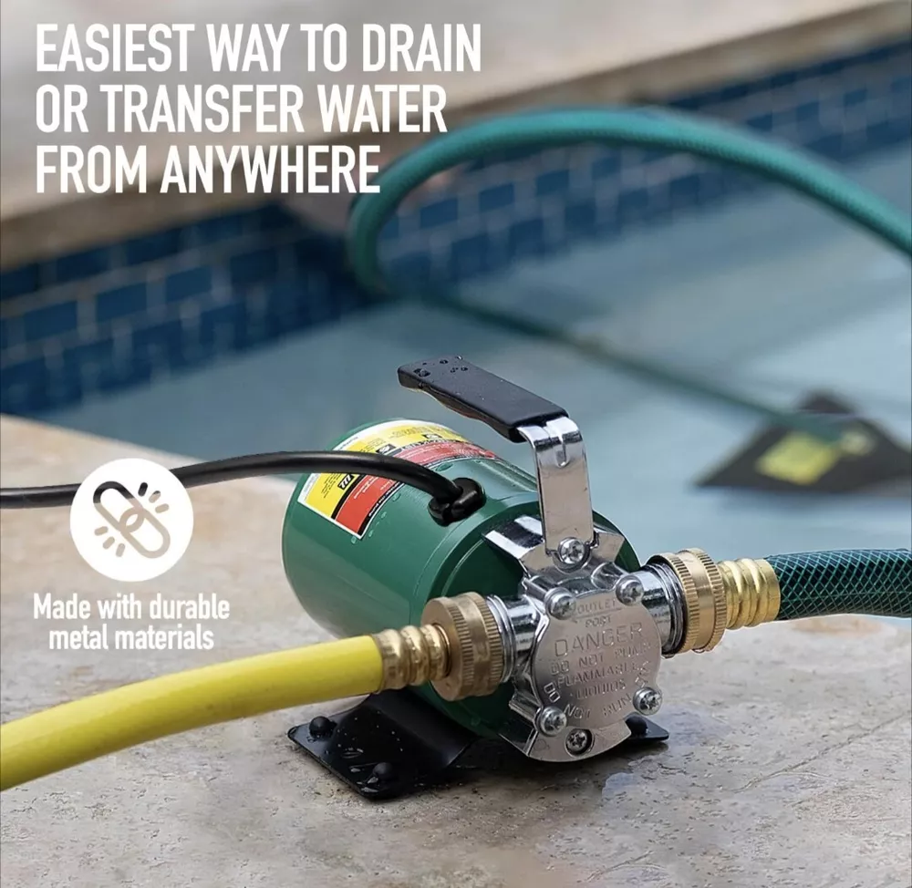 EASY TO USE: Simply Prime the pump with food-grade vegetable oil, place the intake hose attachment in the water, and plug it in! POWERFUL: The (115 Volt) 1/10 HorsePower motor, transfers water at a rate of up to 330 Gallons Per Hour! LIGHTWEIGHT & PORTABLE: Easy to store and haul, this mini utility pump offers big value in a little package MULTIPURPOSE: Perfect for transferring water from aquariums, washing machines, water beds, water heaters, clogged sinks, and more. INCLUDES: 6' hose and Water Suction attachment, as well as an impeller replacement kit