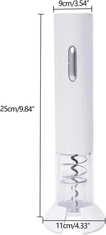 Description Are You Still Using a Manual Wine Corkscrew? Such a Method Is Laborious and May Injure Your Hands. and This Electric Wine Opener Allows You to Open Wine Elegantly, Quickly and Effortlessly! Its Caliber Is Suitable for Most Red Wine Bottle Mouths on the Market, so You Can Buy It with Great Confidence! Specification Material: Abs, Pc, Stainless Steel, High Carbon with Low Nickel Color: White Shape: Cylindrical Battery Type: Aa Battery Gross Weight: 0.3kg/0.66lbs Package Size: 5.8*5.8*25cm/2.28*2.28*9.84inch Product Size: 9*25cm/3.54*9.84inch Cutter Diameter: 11cm/4.33inch How to Use Cut the Foil. Place the Opener Vertically. Press the "down" Button Until the Cork Is Pulled out. Press the "up" Button Until the Cork Is Released. Package Included 1 X Electric Wi Electric Wine Bottle Opener Automatic Wine Bottle Corkscrew with Foil Cutter New Specification Material: Abs, Pc, Stainless Steel, High Carbon with Low Nickel Color: White Shape: Cylindrical Battery Type: Aa Battery Gross Weight: 0.3kg/0.66lbs Package Size: 5.8*5.8*25cm/2.28*2.28*9.84inch Product Size: 9*25cm/3.54*9.84inch Cutter Diameter: 11cm/4.33inch How to Use Cut the Foil. Place the Opener Vertically. Press the "down" Button Until the Cork Is Pulled out. Press the "up" Button Until the Cork Is Released. Package Included 1 X Electric Wine Opener 1 X Foil Cutter 1 X English Manual Key Features Fast and Effortless : This Electric Wine Opener Saves You from Pulling the Cork Hard, Allowing You to Gracefully Remove the Cork in Seconds. Solve Difficulties: This Opener Only Needs One Key to Open and It Can Easily Avoid the Problems of the Cork Breaking on the Bottle Mouth and the Slag of the Cork. Space Saving: This Electric Opener Is Small Enough to Fit in a Drawer for Storage When Not in Use. Place It with the Base Next to Your Wine Fridge, Storage Rack, Bookcase, Etc. Without Taking up Too Much Space. Simple to Use: You Just Place This Opener Vertically on Your Wine Bottle, Press the Switch Button and Your Wine Is Open. You Are Ready to Enjoy It. Good Compatibility: the Diameter of This Bottle Opener Is 3.54 Inches, Which Is Suitable for Most Wine Bottle Mouth Sizes on the Market. Humanized Design: the Drill Bit of the Opener Has a Transparent Protective Shell, You Can Not Only Accurately Insert the Screw Hook into the Cork but Also Prevent the Shards from Splashing out, Ensuring Your Safety When You Use It. Battery Power Supply: This Electric Opener Is Powered by Four Aa Batteries, so You Can Use It Anywhere Without the Restriction of the Power Cord. Easy to Carry: It Is Very Compact and Does Not Take up a Lot of Space. Its Spiral Hook Is Also Protected by a Transparent Pp Plastic Shell, Which Will Not Cause Scratches When Put in a Pocket for Comfortable and Easy Carrying. Safe and Non-toxic : the Screw Hook of This Bottle Opener Is Made of Food-grade No. 72 High-carbon and Low-nickel Material, Which Will Not Bring Harmful Substances into the Wine When Opening the Bottle. This Product Is Also Fda Certified, so You Can Use It with Confidence. Flip Cover Battery Compartment: the Cover of the Battery Compartment Is Designed with a Flip Cover, Which Is Very Convenient to Open and Replace the Battery. the Cover Is Also Very Stable After It Is Closed and Batteries Will Not Fall off Easily. An Amazing Gift: Its Elegant Color, Textured Look and Efficient Bottle Opening Make Our Opener an Attractive Gift. Details Foil Cutter: the Cutter Has a Sharp Edge and a Large Opening That Is Suitable for Most Wine Bottle Mouths, and It Can Quickly Remove the Foil from the Bottle Mouth for a Neat and Beautiful Cut. It Can Also Be Used As a Base for the Opener. Comfortable Handle: the Handle Is Made of an Abs Shell with a Smooth Surface and Comfortable Grip. Injection Molding Button: the Switch Button of the Bottle Opener Adopts the Injection Molding Process, the Surface Is Smooth and Has a Strong Sense of Luster. It Is Not Easy to Fade and Break Under Long-term Pressing. Screw Hook: the Surface of the Screw Hook Has a Special Coating, Which Will Not Let Wood Chips or Red Wine Liquid Stick to It. so It Is Very Convenient for Cleaning. Stainless Steel Spring: There Is a Stainless Steel Spring on the Outer Ring of the Spiral Hook, Which Can Help to Eject the Cork Better and Faster. Application It Is Suitable for Opening Most Wine on the Market with a Cork at Home, Catering, Banquet, Restaurant, or bar. Notes It Requires Four Aa Batteries, Which Are Not Included in the Package, so You Need to Buy Them Separately. Please Allow the Slight Color Difference Caused by the Shooting Light and 1-3 Cm Error Due to Manual Measurement, and Make Sure You Do Not Mind Before Ordering. Payment Delivery details Terms of sales About us Contact us Payment We accept ebay payment 。 Fees such as import duties, taxes are not included in the item price or shipping costs. These charges are the buyer's responsibility. Delivery details Shipping: 2-9 working days to: USA Terms of sales We maintain high standards of excellence and strive for hundred percent customer satisfaction. Feedback is very important to us. We hope that you contact us immediately before you give neutral or negative feedback, so that we can address your concerns. It is impossible to address issues if we do not know about them! About us Your satis faction is our ultimate goal. We work hard to earn your trust and future business. Our certified technicians have tested each item before shipping. The unit comes with 1 year limited warranty on all manufacturing defects. a) If you receive a defective item, you may return it or ask for a discount. Please contact us within 14 days after you receive the package. b) What you returned must be intact and in its original packaging as re? u. Customer is responsible for shipping costs of the returned item. c) We will cover the cost of shipping back t with the shipping rate indicated in the registration page. We will send you a new unit or refund the full payment you