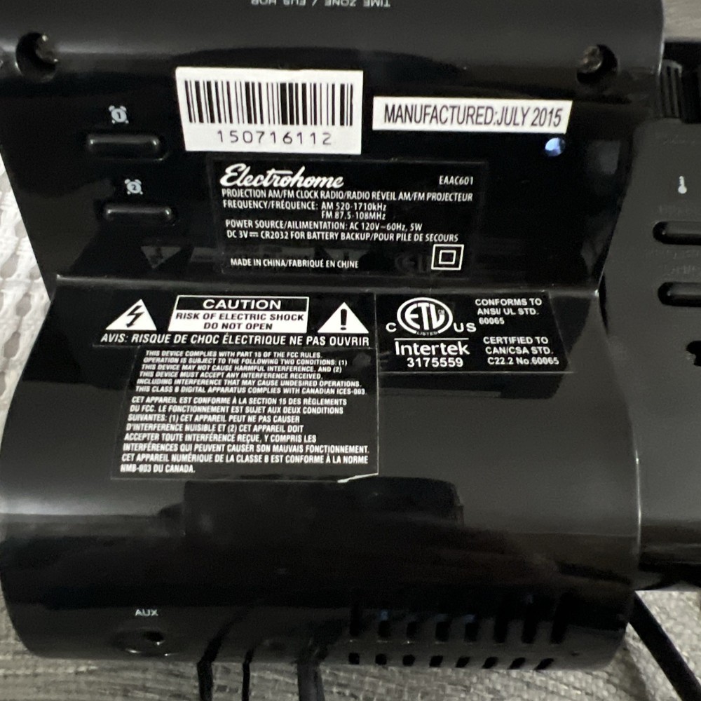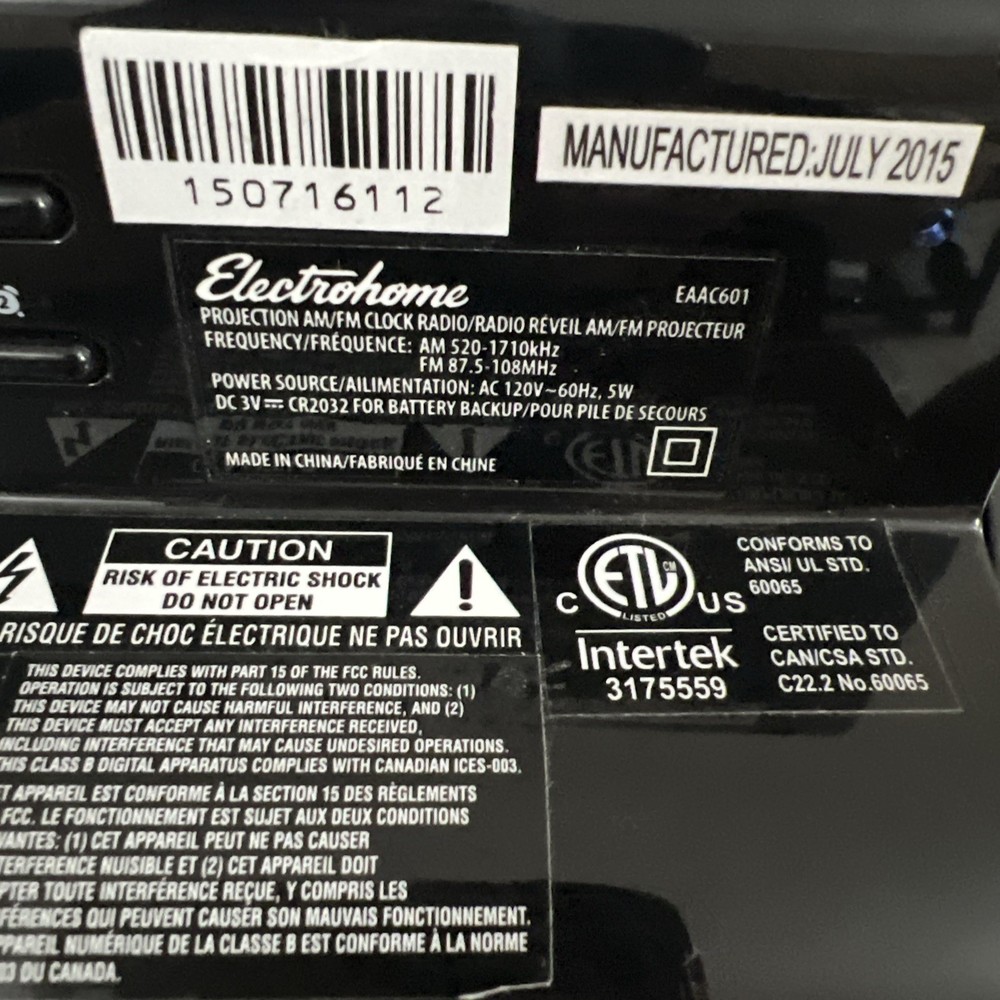 The Electrohome EAAC601 Projection Alarm Clock with AM/FM Radio is a modern and stylish clock radio with a crowned top design in black plastic. It features a quartz movement for accurate timekeeping and comes with Amazon Alexa smart home compatibility. This clock radio includes dual alarms, an LCD display, AM/FM radio, battery backup, day/date display, temperature display, and a 3.5mm auxiliary input for added convenience. Perfect for use in the bedroom or bathroom, this alarm clock adds a touch of abstract style to your home decor with its unique design and features.
