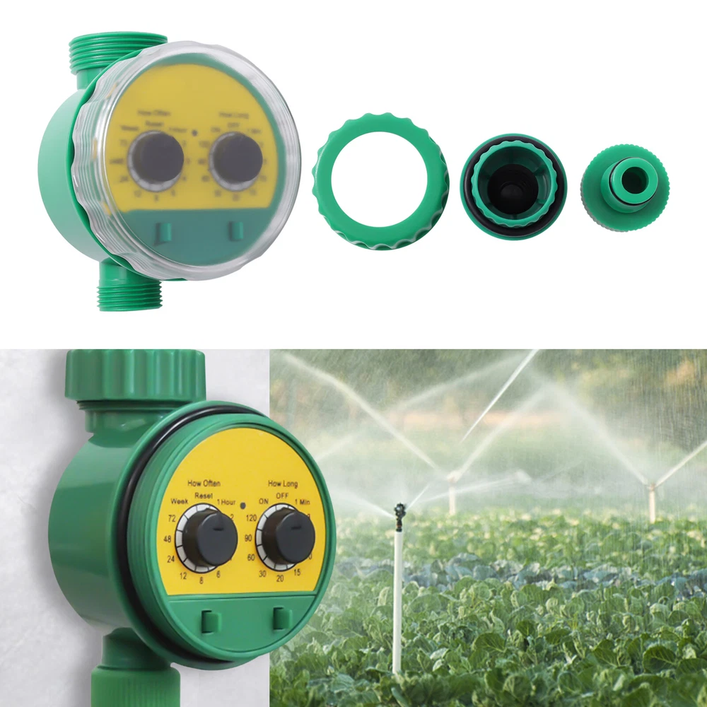 Electronic Automatic Garden Drip Irrigation Watering Timer Controller System Description If you are a person who loves to keep flowers but is busy with work, then you may need a water timer to take care of your beloved plants. This water timer is an ideal choice for you. It intelligently controls the watering time and period, so your plants can drink water regularly. Moreover, it is made of waterproof and durable ABS, which can last for a long time. So hurry up and bring home such an efficient and smart water timer! Key Features Timed Irrigation: The knob on the left side of the water timer can set the watering time and can water the plants at the set time. You do not have to worry about being too busy to take care of your plants. Settable Time Length: The knob on the right allows you to set the length of each watering from 1-120 minutes. You can set the right length according to your plant habit. Highly Waterproof : This water timer has a waterproof rating of IPX4, so you can install it outdoors with confidence. Moreover, it comes with a removable waterproof case that can further protect against water to extend its life. Easy to Operate: The 2 knobs control is friendly to most age groups, very simple and convenient to operate. Easy to Install: This water timer is easy to install with its threaded interfaces. You just need to connect the inlet to the applicable faucet and connect the watering hose to the outlet, then it can be used. Great Durability: This water timer is made of high-quality ABS, which is very sturdy enough to be used for a long time. Time and Energy Saving: With this automatic irrigator, you won't have to water your plants regularly and laboriously or forget to water them. It can save you a lot of time and effort. Good Sealing: The threaded knobs have good sealing and can be tightly attached to the faucet without water leaking. Guaranteed Customer Service: Your satisfaction is our top priority, we will make things right for you. If you are unsatisfied with our products, you can contact us and we will ensure you have a pleasant shopping experience in our store. Details Battery Cover Snap: The two snaps below the knobs secure the battery cover. If you want to pull out the battery cover, you need to press the two snaps inward. 3/4" Threaded Connector: The connectors of this water timer are all 3/4" threaded connectors, which can be directly connected to the corresponding model of faucet. Application This water timer is suitable for gardens, botanical gardens, plant walls, farms, fields, florists, flower houses, plant rooks, etc. Specification Material: ABS Color: Green Waterproof Level: IPX4 Applicable Model:3/4" Faucet Batteries: 2 x AAA Batteries (Not Included) Maximum Temperature: 0-40℃ Working Pressure: 3-8Bar Irrigation Medium: Clear Water Frequency: 1H-7 Days Settable Irrigation Time Length: 1-120 minutes settable Package Size: 9*9*13cm/3.5*3.5*5.1inch Gross Weight: 0.23kg/0.5lbs Net Weight: 0.2kg/0.44lbs How to Use Put the batteries in. The valve will self-test once when you put the battery in for the first time, and the valve ball will automatically turn to the closed state. Turn the left knob to the time point of the desired frequency. Turn the right knob to the desired length of time for watering. The water valve will work automatically within 10 seconds. Package Included 1 x Water Timer 3 x Connecting Pieces Note The setting cycle time cannot be less than the duration of the open valve output. When the left rotary switch is set to the "0" state, the water valve opens for watering only once. When the right rotary switch is set to OFF state, the water valve will turn off the valve. This product does not include batteries, please purchase two AAA batteries by yourself. Please allow the slight color difference caused by the shooting light and 1-3 cm error due to manual measurement, and make sure you do not mind before ordering. Payment Delivery details Terms of sales About us Contact us Payment We accept ebay payment 。 Fees such as import duties, taxes are not included in the item price or shipping costs. These charges are the buyer's responsibility. Delivery details Shipping: 2-9 working days to: USA Terms of sales We maintain high standards of excellence and strive for hundred percent customer satisfaction. Feedback is very important to us. We hope that you contact us immediately before you give neutral or negative feedback, so that we can address your concerns. It is impossible to address issues if we do not know about them! About us Your satis faction is our ultimate goal. We work hard to earn your trust and future business. Our certified technicians have tested each item before shipping. The unit comes with 1 year limited warranty on all manufacturing defects. a) If you receive a defective item, you may return it or ask for a discount. Please contact us within 14 days after you receive the package. b) What you returned must be intact and in its original packaging as re? u. Customer is responsible for shipping costs of the returned item. c) We will cover the cost of shipping back t with the shipping rate indicated in the registration page. We will send you a new unit or refund the full payment you paid. Thank you. Contact us Business Hour Business Hour: Monday To Friday: 8:30 AM to 5:00 PM (Beijing China time) Due to time zones, our reply to your questions may not be immediately. But within above working time, we will reply your email within 24 hours. If it's non-workdays, please kindly be patient and wait till Monday. Please contact us with ebay message. Please feel free to contact us if you have any questions. Monday To Friday: 8:30 AM to 5:00 PM (Beijing China time) Due to time zones, our reply to your questions may not be immediately. But within above working time, we will reply your email within 24 hours. If it's non-workdays, please kindly be patient and wait till Monday. Please contact us with ebay message. Please feel free to contact us if you have an