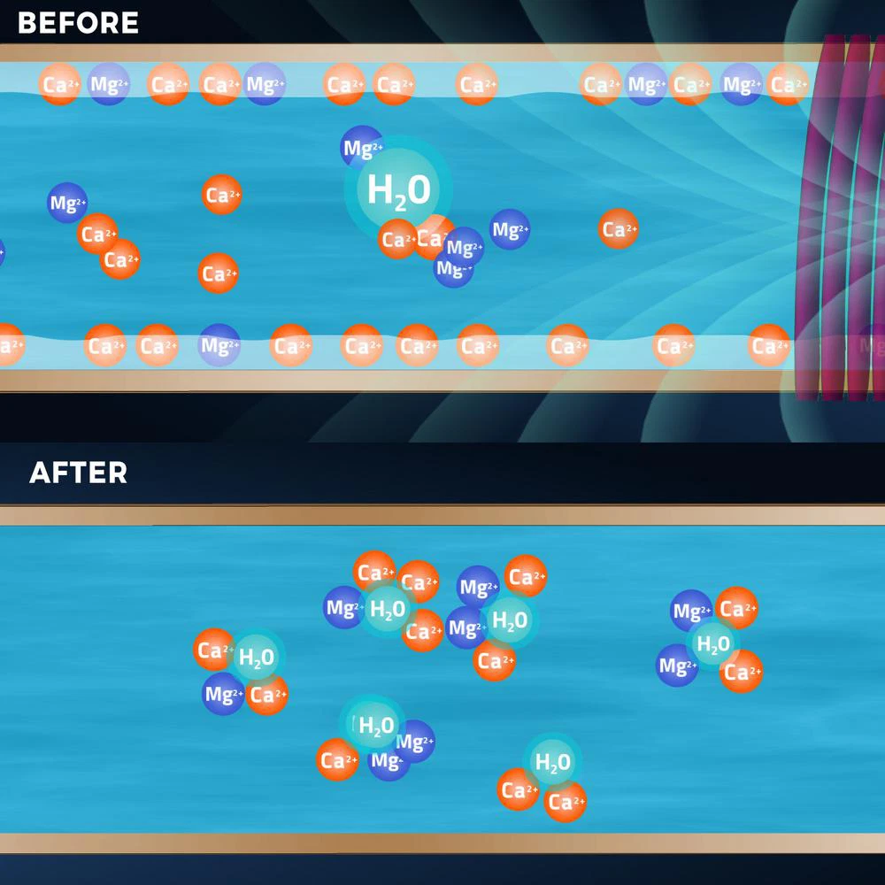 Product Description Style: Water Conditioner Features: 1.Solves hard water problems without the need for chemicals, salt, or maintenance, while keeping healthy minerals in the water by preventing scale deposits from forming and allowing existing scale to break down 2.Descales your entire water system and prevents scale buildup in pipes. Reduces energy consumption with an average one year payback period. Great for your home and the environment, individuals on salt-restricted diets, and those looking for healthier skin and hair 3.Designed for very hard water areas (10-19 grains per gallon). Saves energy and extends the life of your appliances 4.No plumbing modifications required. Maintenance-free. 5.Unlike salt water softeners, this product does not change the chemistry of water Fittment: Works on any pipe, even PEX and PVC. Working mechanism: This whole house electronic water descaler is an innovative, computerized water conditioning system that solves hard water problems without the need for chemicals, salt, or filter cartridges by leaving the minerals in the water and preventing them from forming the limescale deposits. It requires little maintenance as it does not need the constant salt additions or cartridge replacements that traditional water softening systems require. This product functions by wrapping two antenna cables around the main water pipe to form a coil, creating a complex, frequency modulated, electronicmagnetic waveform. This induces an oscillating electric field into the water, resulting in the agitation of water molecules sufficient enough to trigger the release of carbon dioxide and cause the premature precipitation of calcium bicarbonate. This process naturally results in a small increase in solubility, which allows the now unsaturated water to dissolve existing scale deposits and remove them from the water system. Limescale deposits on your fixtures will soften over time after regular contact with the treated water from thia product. This allows for easier cleaning of fixtures without the use of chemicals. Deposits on shower heads, sinks, and faucets will easily wipe off. The treated water will also allow soap to lather up more effectively, leaving skin feeling smoother and hair more manageable. For water over 25 grains of hardness, it's recommended to use a traditional water soften in addition to this product. Water with high iron content (over 0. 3ppm) should use an iron removal filter prior to this product. Homes with water mains over 1" but less than 1. 5" may need to use two this product side by side, and water traveling more than 50 feet may require an additional this product farther down the plumbing line. Package includes: As the picture show
