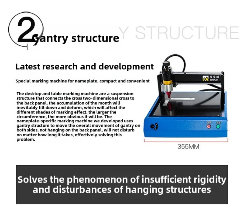 Electric marking machine metal electric marking machine aluminum nameplate stainless steel printer lettering and coding machine Lifting height: 20mm Marking speed 50mm/s Marking depth 0.05-2(mm) Needle hardness 96HRA Needle distance 0.5-3(mm) Voltage power 220V 400W