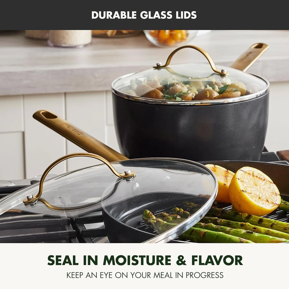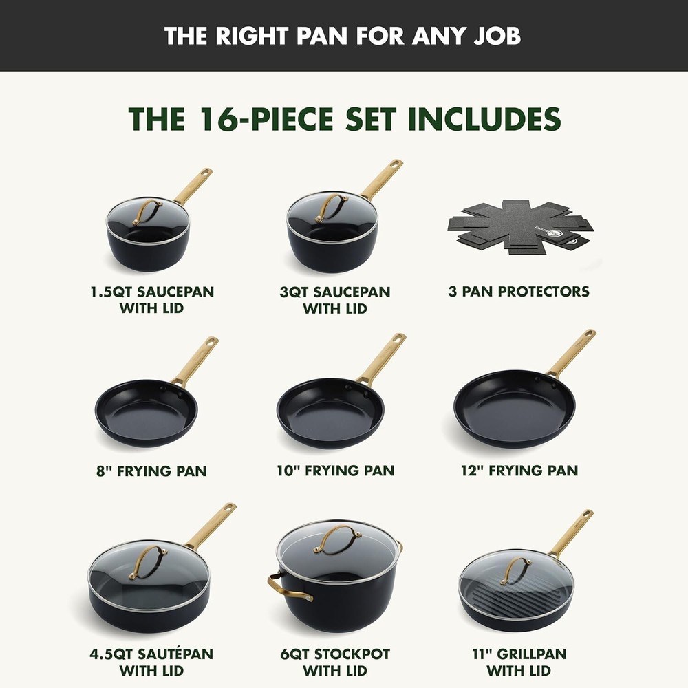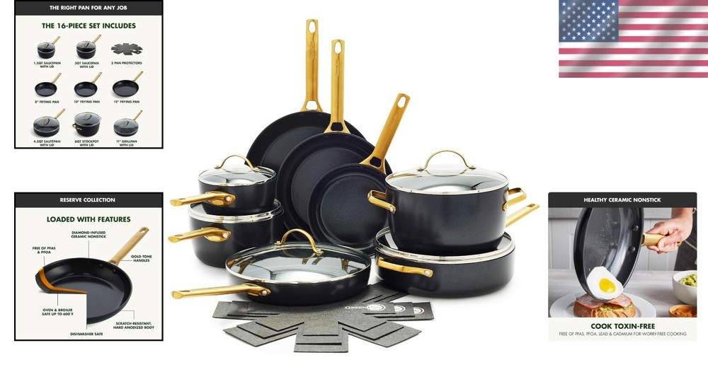 Elegant 16-Piece Nonstick Cookware Set with Diamond-Reinforced Ceramic Coating ‹ › ‹ › ‹ › ‹ › ‹ › ‹ › ‹ › ‹ › ‹ › ‹ › ‹ › Elegant 16-Piece Nonstick Cookware Set Set Includes: - 8", 10", and 12" frying pans - 11" grill pan with lid - 4.5QT sauté pan with lid - 1.5QT and 3QT saucepans with lids - 6QT stockpot with lid - Small, medium, and large pan protectors Features: Reinforced with Diamonds: Metal utensil safe, our original diamond-infused nonstick coating offers remarkable durability and balanced heating for effortless cleaning. Toxin-Free: Our Thermolon healthy ceramic nonstick coating is free of PFAS, PFOA, lead, and cadmium, promoting healthier cooking. Duoforged Armored Bodies: Pretreated before they are hard anodized, these pans feature extraordinary strength and scratch resistance with uniform heat distribution. Built for Oven Cooking: Oven and broiler safe up to 600°F and suitable for all stovetops, except induction. Stylish Flair: Gorgeous gold-tone handles add a pop of color to any kitchen while ensuring a secure grip. Enjoy the View: Tempered glass lids keep heat and moisture inside, allowing you to watch the action on the outside. Easy to Clean: These pans are dishwasher safe for effortless cleanup, though most messes simply wipe clean. Why Choose Our 16-Piece Nonstick Cookware Set? Indulge in the culinary artistry that awaits with our Elegant 16-Piece Nonstick Cookware Set. This collection is not only about functionality but also exquisite design. Featuring reinforced diamond-infused nonstick coating, forget the worries of unhealthy chemicals as you create your gourmet meals. The durability of these pans means they can withstand the test of time, while their stunning gold-tone accents guarantee they will look stunning in any kitchen. With perfectly curated sizes that cater to every cooking need, from sautéing to grilling, this cookware set will elevate your cooking experience. Oven-safe and compatible with any stovetop, let this set be your key to creating delectable dishes without compromise. Make a statement in your kitchen and enjoy a lifetime of culinary excellence—order your Elegant 16-Piece Nonstick Cookware Set today! Shipping Free & Fast Shipping - We offer free shipping to most of the USA with a normal delivery time of 3-10 businessdays. However, due to various situations, additional delivery time (up to 3 weeks) may be required for some items. Alternative Carriers - We may use alternative carriers (e.g. USPS, FedEx, UPS, etc.) to ensure your package arrives safely and on time. Due to the use of multiple carriers, we are unable to provide a tracking number automatically. Handling Time - Orders are processed and shipped within 1-5 business days of receiving cleared payment. Shipping Restrictions - Shipping to Alaska, Hawaii, Puerto Rico, Guam, and other US territories may incur shipping charges or delivery restrictions. Please contact us before ordering, or your order can be refunded/cancelled. State Restrictions - There may be restrictions based on your state of purchase. For example, certain items may not be shipped to California due to state regulations. Contact for Tracking Updates - If you require tracking updates or have any concerns about the delivery of your order, please feel free to contact us, and we will be happy to assist you. Return Please see our ebay return policy. We do not accept return on most products. This is to avoid customers mis-using ebay returns. All sales are final. Please be sure to check the return policy listed at the top of the listing. In rare cases, we may accept returns, if the buyer pays both ways shipping and 20% restocking fee. If you are un-sure of return policy of a particular item, please ask before buying. Payment We accept all major credit cards, PayPal, and Apple Pay for your convenience. Your payment information is secure and encrypted to ensure a safe and seamless transaction. Please complete your payment within 3 days of purchase to avoid any delays in shipping. Feedback Your feedback is extremely important to us. We strive to provide the best products and customer service possible. If you are satisfied with your purchase, please take a moment to leave us a positive review. If you have any concerns or issues with your order, please contact us before leaving negative feedback. We are committed to resolving any problems and ensuring your satisfaction. Contact Us If you have any questions or concerns, please feel free to reach out to our customer support team. You can contact us through the eBay messaging system. We are available Monday to Friday, 9:00 am to 5:00 pm EST, and we will do our best to respond to your inquiry within 24 hours. Buy it now and enjoy a pleasant shopping experience! UPC: Not Set Unit Quantity: 16 Stove Type Compatibility: Electric,Gas,Oven Material: Aluminum,Hard Anodized Aluminum Features: Dishwasher Safe,Easy Clean,Non-Stick,Oven-Safe Set Includes: Frying Pan,Grill Pan,Saucepan,Stockpot,Sauté Pan,Pan Protectors Type of Oven: Electric,Gas,Oven Brand: Unbranded Surface Coating: Non-Stick Color: Black Type: Cookware Set Item Width: Not Set Item Length: Not Set Item Diameter: 12 in MPN: Not Set Number of Items in Set: Sixteen-Piece Country/Region of Manufacture: Not Set Shape: Round Manufacturer Warranty: Not Set Item Height: Not Set Item Depth: 8 in Heat Resistance: 600°F Item Weight: 36 lb Model: Not Set Unit Type: lb