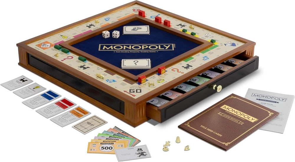 Elegant 2-Tone Wood Monopoly Game for 2-6 Players - Complete Collector's Edition ‹ › ‹ › ‹ › ‹ › ‹ › ‹ › Elegant 2-Tone Wood Monopoly Game For 2-6 Players - Complete Collector's Edition Indulge in luxury and nostalgia with this exquisite 2-Tone Wood Monopoly Game, the ultimate centerpiece for family game nights and a stunning addition to your collection. Features: Beautiful 2-tone wood cabinet with gold-tone metal accents, exuding elegance. Felt-lined recessed dice rolling area and foil-stamped game path for a premium experience. Two storage drawers: one with an organizer tray and the other featuring a built-in banker's tray. Includes Title Deed cards in a faux-leather wrapped organizer for style and sophistication. Chance and Community Chest cards add an element of surprise and excitement. 32 green wood houses and 12 red foil-stamped wood hotels for a classic touch. Eight gold-tone movers: Battleship, Boot, Horse and Rider, Iron, Race Car, Scottie Dog, Thimble, and Top Hat. Accompanied by faux ivory dice and clear instructions for easy gameplay. Officially licensed by Hasbro, ensuring authenticity and quality. Dimensions and Specifications: Wood cabinet measures 21.75 inches x 21.625 inches, with a height of 3 inches, weighing approximately 13 pounds. Framed dice rolling area measures 12.5 inches x 12.5 inches for generous gameplay. Monopoly money measures 4 inches x 2 inches; Cards measure 3.5 inches x 2.25 inches. Why Choose This Collector's Edition? Experience the thrill of MONOPOLY like never before, wrapped in luxury and sophistication. This collector's edition isn't just a game; it's a statement piece that transforms any gathering into an elegant affair. Invite friends and family to take turns rolling the dice and strategizing to own it all, all while enjoying a beautifully crafted game that will be cherished for generations. Revel in the joy of connection, laughter, and competition around this stunning 2-tone wood cabinet. Perfect as a gift or a prized addition to your own collection, it promises an evening of entertainment enveloped in opulence. Don’t miss the chance to elevate your game nights. Order the Elegant 2-Tone Wood Monopoly Game today, and experience luxury in play. Shipping Free & Fast Shipping - We offer free shipping to most of the USA with a normal delivery time of 3-7 days. However, due to the current situation, additional delivery time (up to 3 weeks) may be required for some items. Alternative Carriers - We may use alternative carriers (e.g. USPS, FedEx, UPS, etc.) to ensure your package arrives safely and on time. Due to the use of multiple carriers, we are unable to provide a tracking number automatically. Handling Time - Orders are processed and shipped within 1-2 business days of receiving cleared payment. Shipping Restrictions - Shipping to Alaska, Hawaii, Puerto Rico, Guam, and other US territories may incur shipping charges or delivery restrictions. Please contact us before ordering, or your order can be refunded/cancelled. State Restrictions - There may be restrictions based on your state of purchase. For example, certain items may not be shipped to California due to state regulations. Contact for Tracking Updates - If you require tracking updates or have any concerns about the delivery of your order, please feel free to contact us, and we will be happy to assist you. Return Please see our eBay Return Policy. Thank you. Payment We accept all major credit cards, PayPal, and Apple Pay for your convenience. Your payment information is secure and encrypted to ensure a safe and seamless transaction. Please complete your payment within 3 days of purchase to avoid any delays in shipping. Feedback Your feedback is extremely important to us. We strive to provide the best products and customer service possible. If you are satisfied with your purchase, please take a moment to leave us a positive review. If you have any concerns or issues with your order, please contact us before leaving negative feedback. We are committed to resolving any problems and ensuring your satisfaction. Contact Us If you have any questions or concerns, please feel free to reach out to our customer support team. You can contact us through the eBay messaging system. We are available Monday to Friday, 9:00 am to 5:00 pm EST, and we will do our best to respond to your inquiry within 24 hours. Thank you for supporting our small family business! UPC: Not Set Recommended Age Range: 17 Years & Up MPN: Monopoly_Game Age Level: 17 Years & Up Features: Luxury Edition,2-tone wood cabinet,gold-tone metal accents,foil-stamped game path,two storage drawers,organizer tray,built-in banker's tray,Chance and Community Chest cards,green wood houses,red foil-stamped wood hotels,gold-tone movers,faux ivory dice,instructions included,officially licensed by Hasbro,adult collectible Brand: Unbranded Game Title: Monopoly Game Type: Board Game Year: Not Set Type: Complete Game Theme: Not Set Min. Number of Players: 2 players Award: Not Set Gender: Boys & Girls Country/Region of Manufacture: Not Set