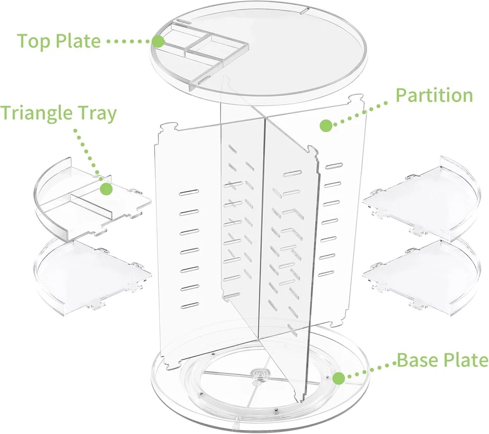 This organizer is a game-changer! Everything stays visible and within reach thanks to the smooth rotation and adjustable compartments. My vanity looks so chic and organized now.