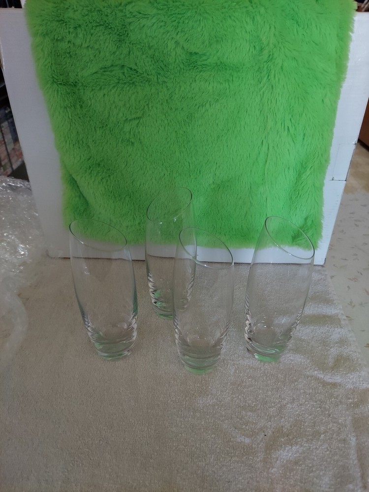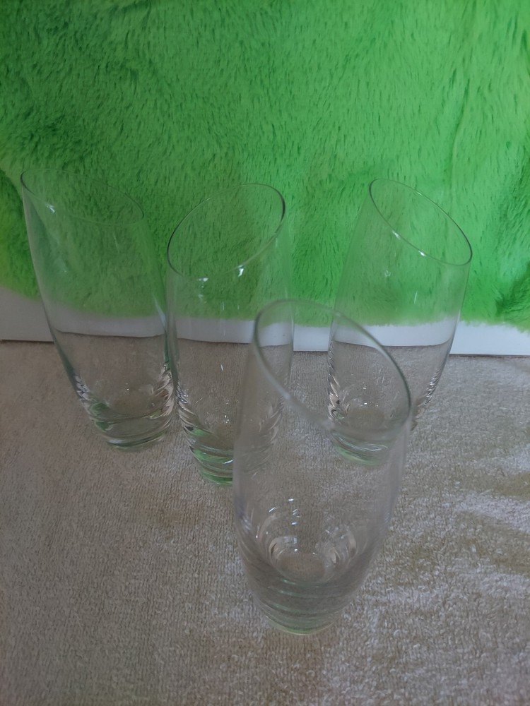 Glass Champaign Flutes Set Of 4 7.5 Oz. Very nice weight and quality. The rim has an asymmetrical design