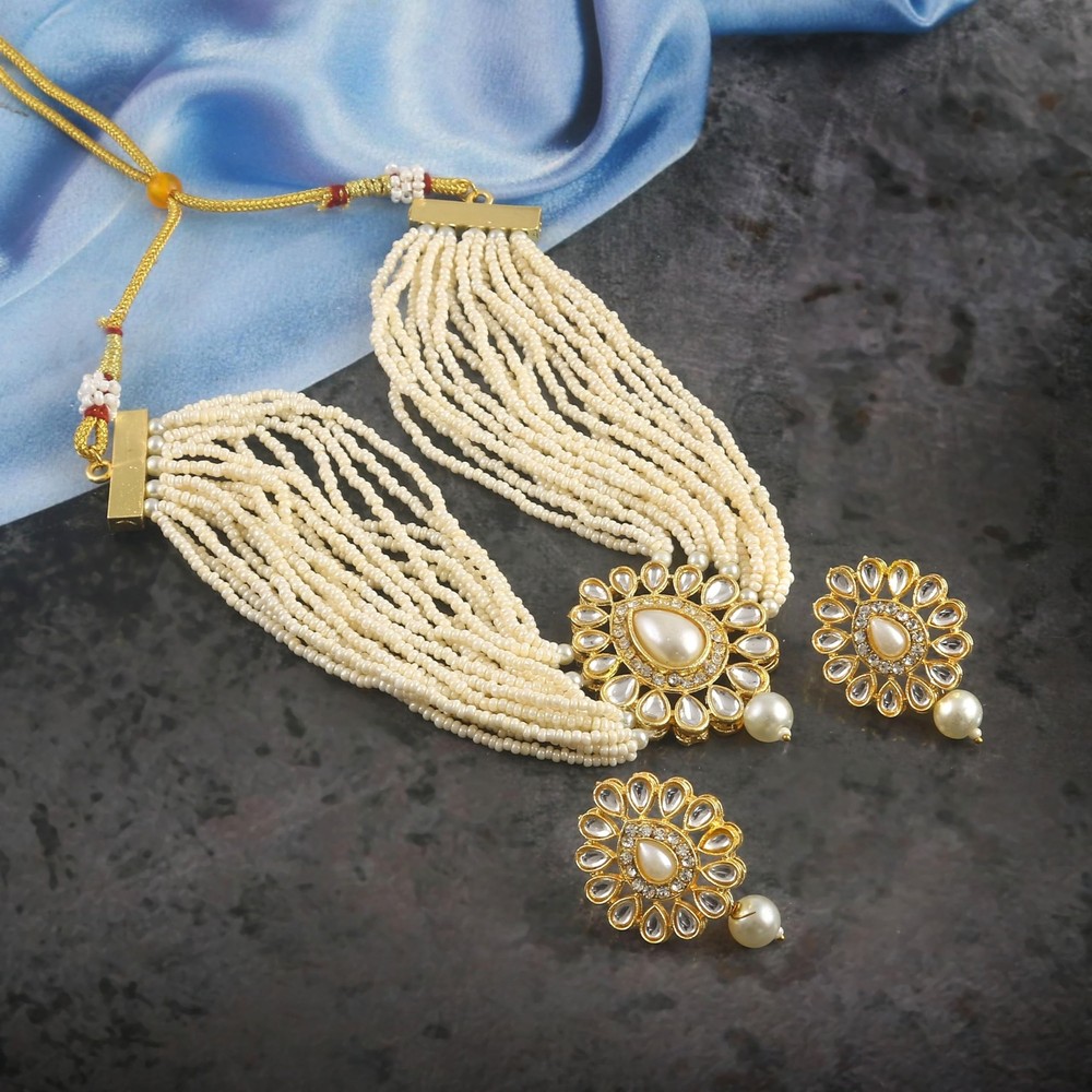 Jewarhaat AD CZ Kundan Pearl Studded Gold Plated Indian Jewelry Sets for Women Product Details Color: Moti Brand: Jewar MPN: Does not apply UPC: Does not apply EAN: Does not apply Package Dimensions : 5 x 2 x 1 inches; 1.6 ounces Department : womens Date First Available : February 15, 2024 Brand, Seller, or Collection Name: Jewar Metal: Brass Material: Gold Plated Gem Type: Cubic Zirconia Item Length: 8 inches Clasp: Lobster Clasp Number of stones: 2 JewarHaat Necklace Set Crystal Layered Gold Plated Pearl Ad Cz Choker Gold Tone Handmade Meena Work Kundan Inspired With Matching Earrings Jewelry For Women