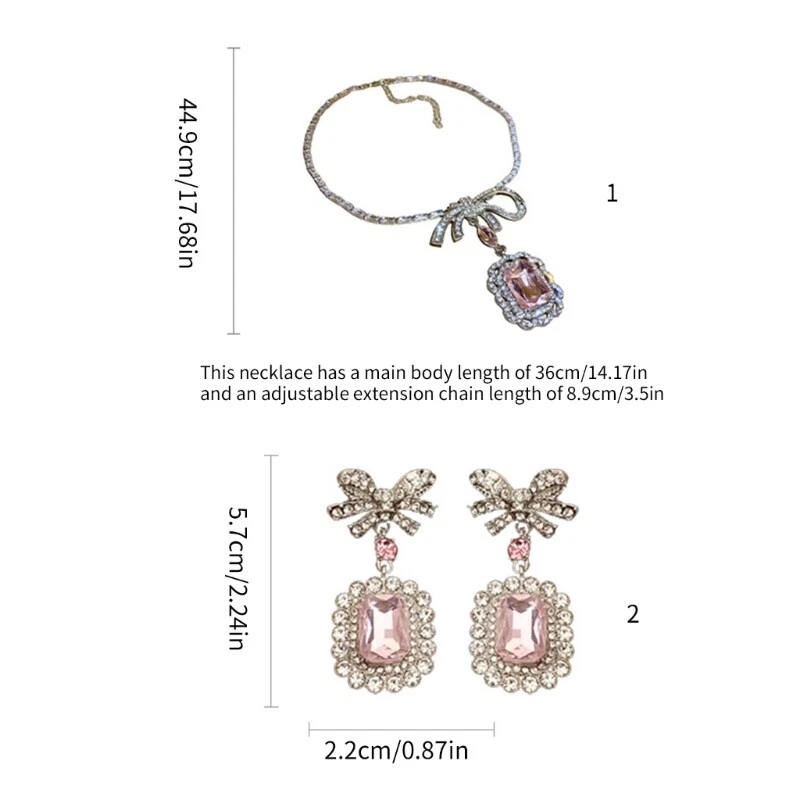 Features: Stand out with this Crystal Bowknot Necklace/Earrings that adds a touch of to any look. The square shaped crystal pendant gives this necklace/earring a unique and appeal. Designed for women who appreciate beauty, this necklace/earring is suitable for various occasions. Whether it's a casual gathering or a formal event, this necklace/earring complements any attire. the beauty of this Crystal Bowknot Necklace/Earring and make it a valuable addition to your jewelry collection. Specifications: Alloy Type:Necklace/Earring (Optional) Necklace Length:Approx.37+8.8cm/14.6+3.5inches Package Includes: 1Piece Crystal Bowknot Necklace/1Pair Crystal Bowknot Earrings note: Please allow 1-2cm error due to manual measurement. Please make sure you do not mind before you bid. Due to the difference between different monitors, the picture may not reflect the actual color of the item. Thanks!