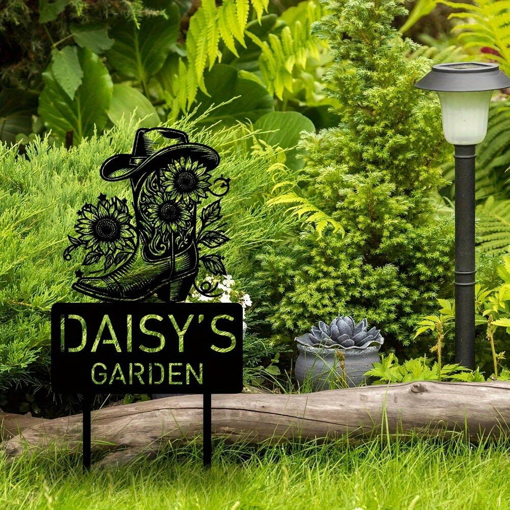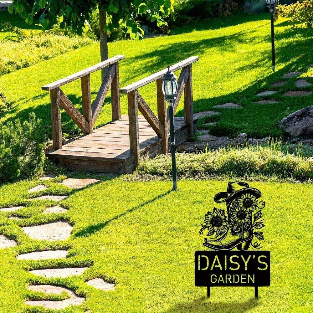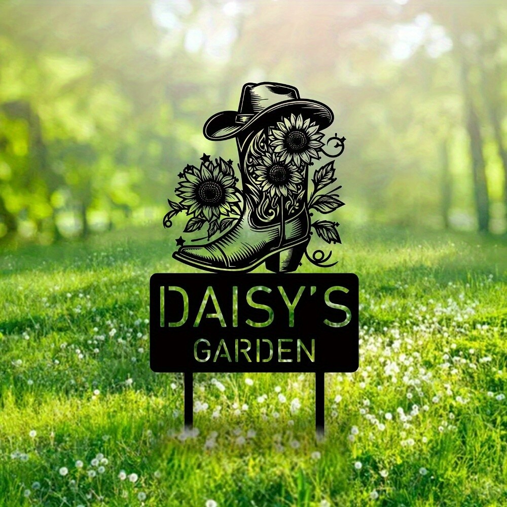 Personalized Art Deco Metal Garden Stake for Weddings and Nature Lovers