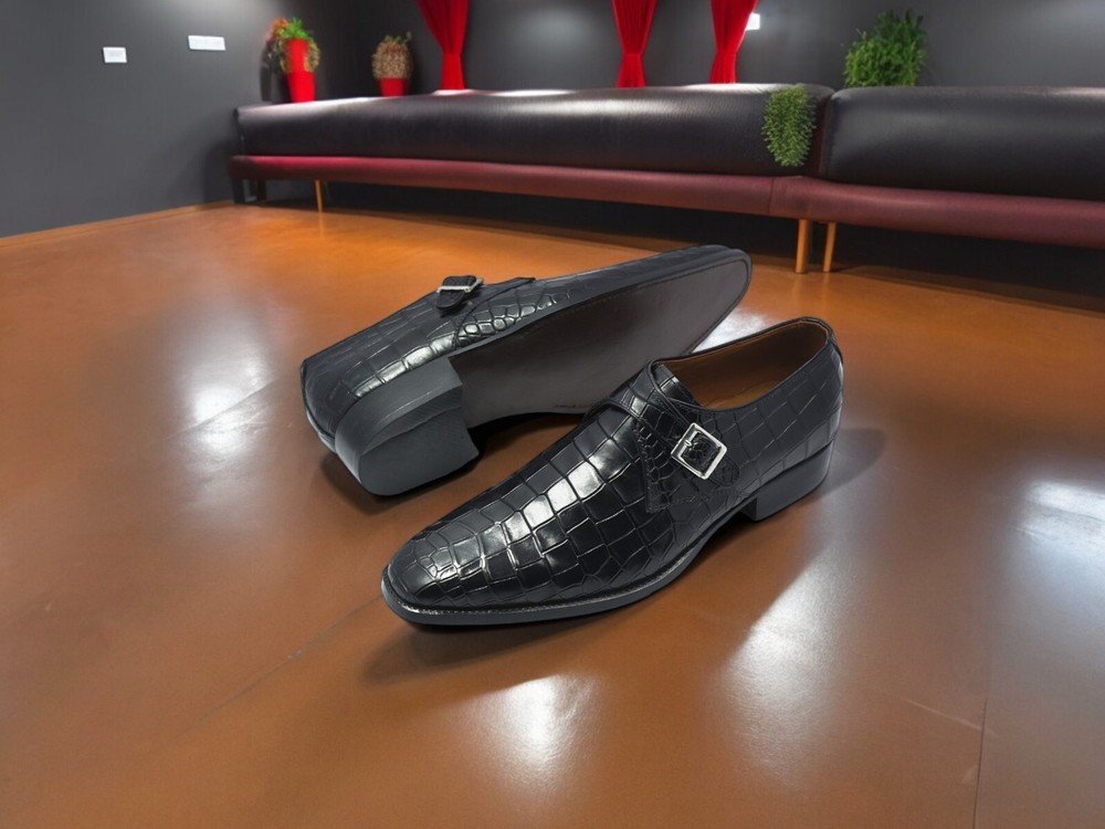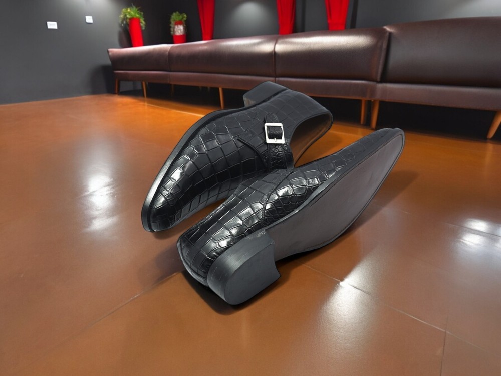 Experience the ultimate in luxury footwear with our exclusive black crocodile pattern leather shoes, adorned with a refined buckle. Designed for the modern gentleman, these shoes are made from top-quality genuine leather, ensuring both style and longevity. Ideal for any upscale occasion, these shoes are a statement of elegance and sophistication. With limited stock available, seize the opportunity to enhance your wardrobe with these timeless pieces. Step into a world of luxury and make a lasting impression Please note that slight variations in color may occur due to photography lighting effects and differences in computer color resolution. However, rest assured that every effort will be made to ensure that the colors used match the originals as closely as possible.