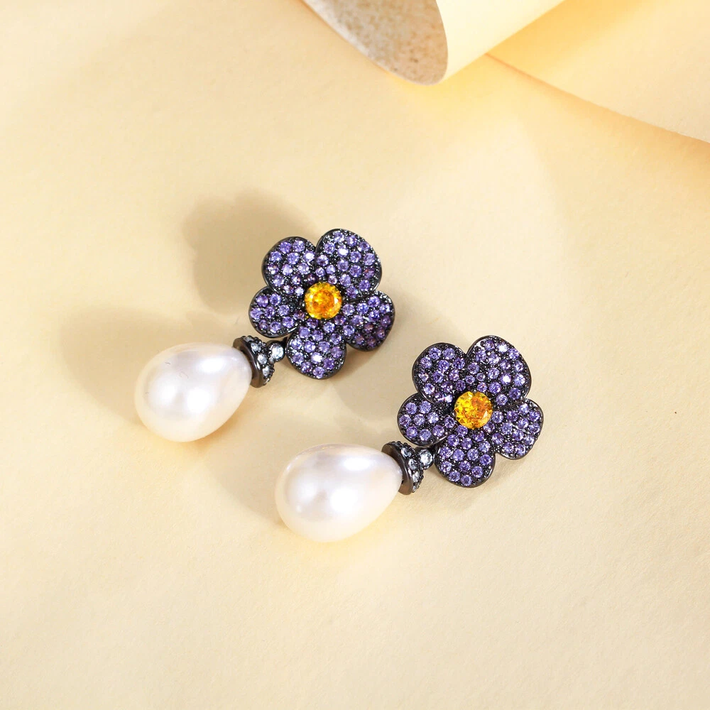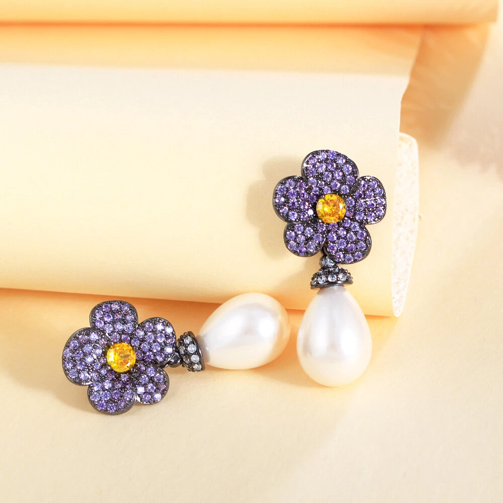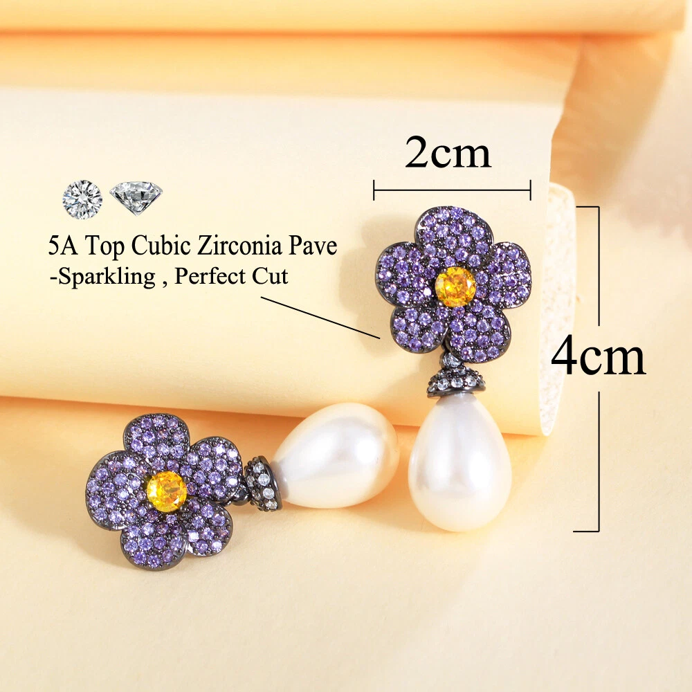 Elegant Black Gold Plated Zirconia Purple Flower Long Pearl Drop Bridal Earrings There’s an old saying that: Jewelry is woman’s best friend. And one appropriate luxury jewelry helps to spice up your charm and beauty. And here’s the reason why you choose us: ★ We adopts high-grade Cubic Zirconia, which displays pure and fascinating color; ★ All our items are Elaborate, Gold Plated (white gold plated/yellow gold plated/black gold plated), by which the texture is smooth and with fancy look, and will be appropriate for so many occasions; ★ Our items are with Exquisite Design, which shows your excellent taste, and could catch people’s attention easily. ★ Ideal gift for mother, wife, girlfriend, daughters, brides, bridesmaids, ect. Specification Type: Dangle/Drop Earrings Stone Material: Cubic Zirconia Base Metal Material: Brass Metal Material: Black Gold Plated Pearl Type: White Simulated-pearl Shape: Flower Color: Purple Suitable Occasion: Daily, Holidays, Party, Engagement, Wedding, Anniversary, Valentine’s Day, Carnival, Performance, ect. Package Includes 1 Pair of CZ Drop Earrings Please note: *Please bear in mind that there might be 1~2cm difference due to manual measurement. *Our digital images are as accurate as possible. However, different monitors may cause colors to vary slightly. *We offer after-sale service, if there is any item problem, please feel free to contact us via eBay message first, your kind understanding is much appreciated. About Us Payment Shipping Returns Contact us About Us Topjewel33 is a newly-established online store which dedicates to provide excellent luxury jewelry products, such as earrings, rings, necklaces, bracelets, brooches, hair accessories, and high grade jewelry sets. We target worldwide market, and we strive for offering you unbeatable low price and satisfied customer service. Payment We accept PayPal payment only. Payment must be received within 7 days from the date of purchase. Shipping We do hope all our customers could receive the order asap, so normally, the order will be sent out within 2 working days. And as the delivery is handled by the third party, sorry that we could not guarantee which date you could receive the package. And sometimes the delivery might be a little bit delay, especially in high volume or holiday seasons. However, please don’t worry and feel free to contact us via eBay message, and we will do our best to help. And we sincerely apologize for any inconvenience may cause. Sometimes custom tax might be required, and we are afraid that it will be covered by the buyers, thank you for kind understanding. Returns We provide 30 days money back return policy. And if you have any problem with the item, please make sure the item is in the original package and feel free to contact us via eBay message first, thank you for kind understanding and cooperation. Contact us We offer customer service, if you have any problem with the item before/during/after the purchase, please feel free to contact us via eBay message, and we will get back to you asap. Thank you for your kind patience.