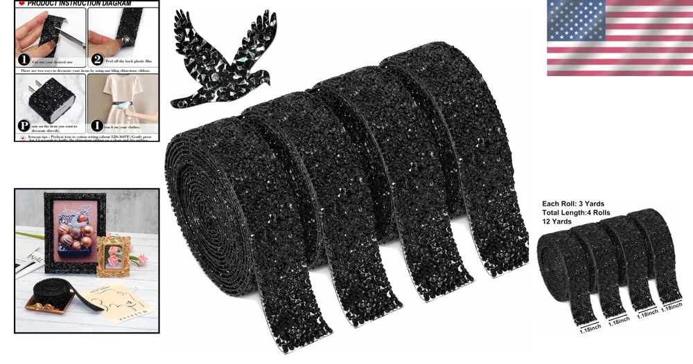 Elegant Black Rhinestone Ribbon - 12 Yards of Self-Adhesive Glamour for Crafts ‹ › ‹ › ‹ › ‹ › ‹ › ‹ › ‹ › ‹ › ‹ › ‹ › Elegant Black Rhinestone Ribbon -12 Yards of Self-Adhesive Glamour for Crafts Product Features: High-quality, extra shiny, non-fading rhinestone ribbon made with 3mm AAA grade standard solid color resin rhinestones. Professional hand-polished 17 multi-faced cutting for enhanced light reflection. Ensures the color of the rhinestones lasts, providing long-lasting elegance. To maximize sparkle, simply wipe the sticker with a wet towel before use. Strong adhesive that guarantees reliability for all your decorative needs. Easy to use—just peel off and apply directly to your desired surface. Wide range of applications including weddings, cars, windows, suitcases, laptops, notebooks, gifts, hats, clothing, and furniture. Two versatile usage options: self-adhesive or iron-on. Preheat iron to cotton setting (about 320-360 degrees) and press gently for 15-20 seconds for a secure hotfix. Each package includes 4 rolls of shimmering rhinestone stickers measuring approximately 1.18” x 3 yards each. Benefits: Adds a touch of glamour and elegance to any craft project. Durable and reliable with long-lasting sparkle. Perfect for elevating gifts, enhancing décor, or covering imperfections. Easy application for both skilled crafters and DIY novices. Why Choose Our Elegant Black Rhinestone Ribbon? Transform the ordinary into extraordinary with our Elegant Black Rhinestone Ribbon. Crafted with precision, our rhinestone ribbon is more than just a decorative element; it’s a statement of style and elegance. Each roll is designed to elevate your projects, from wedding decorations to fashionable accessories, ensuring that you shine wherever you go. Experience the ultimate blend of glamour and convenience with our user-friendly design. Embrace your creativity and let your imagination sparkle—order your set of Elegant Black Rhinestone Ribbon today and redefine elegance in your crafts! Shipping Free & Fast Shipping - We offer free shipping to most of the USA with a normal delivery time of 3-7 days. However, due to the current situation, additional delivery time (up to 3 weeks) may be required for some items. Alternative Carriers - We may use alternative carriers (e.g. USPS, FedEx, UPS, etc.) to ensure your package arrives safely and on time. Due to the use of multiple carriers, we are unable to provide a tracking number automatically. Handling Time - Orders are processed and shipped within 1-2 business days of receiving cleared payment. Shipping Restrictions - Shipping to Alaska, Hawaii, Puerto Rico, Guam, and other US territories may incur shipping charges or delivery restrictions. Please contact us before ordering, or your order can be refunded/cancelled. State Restrictions - There may be restrictions based on your state of purchase. For example, certain items may not be shipped to California due to state regulations. Contact for Tracking Updates - If you require tracking updates or have any concerns about the delivery of your order, please feel free to contact us, and we will be happy to assist you. Return Please see our eBay Return Policy. Thank you. Payment We accept all major credit cards, PayPal, and Apple Pay for your convenience. Your payment information is secure and encrypted to ensure a safe and seamless transaction. Please complete your payment within 3 days of purchase to avoid any delays in shipping. Feedback Your feedback is extremely important to us. We strive to provide the best products and customer service possible. If you are satisfied with your purchase, please take a moment to leave us a positive review. If you have any concerns or issues with your order, please contact us before leaving negative feedback. We are committed to resolving any problems and ensuring your satisfaction. Contact Us If you have any questions or concerns, please feel free to reach out to our customer support team. You can contact us through the eBay messaging system. We are available Monday to Friday, 9:00 am to 5:00 pm EST, and we will do our best to respond to your inquiry within 24 hours. Thank you for supporting our small family business! UPC: Not Set MPN: Rhinestone_Stickers_for_Crafts Unit Quantity: 12 Brand: Unbranded Theme: Rhinestone Stickers for Crafts Type: Rhinestone Color: Black Country/Region of Manufacture: Not Set Unit Type: Not Set Handmade: Not Set
