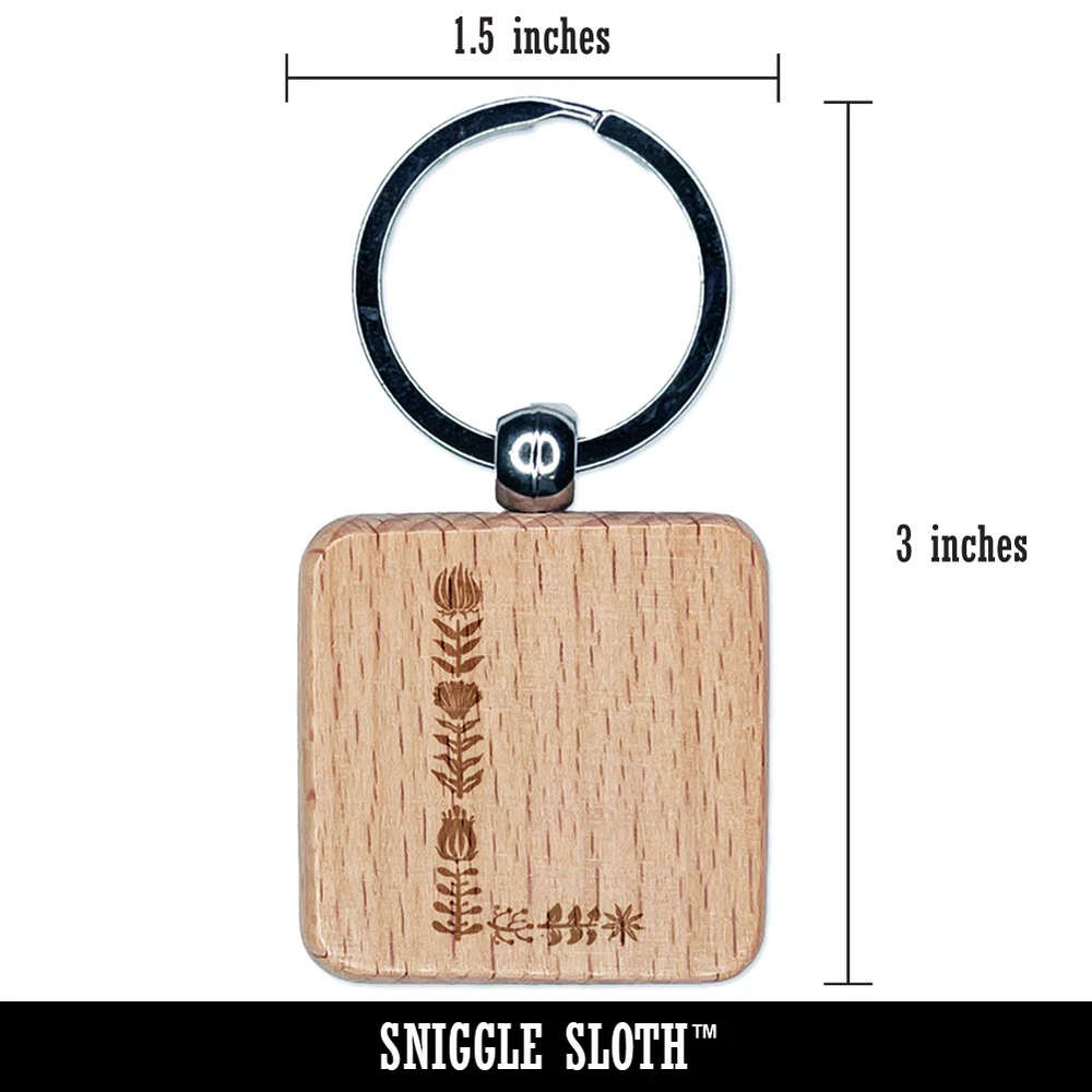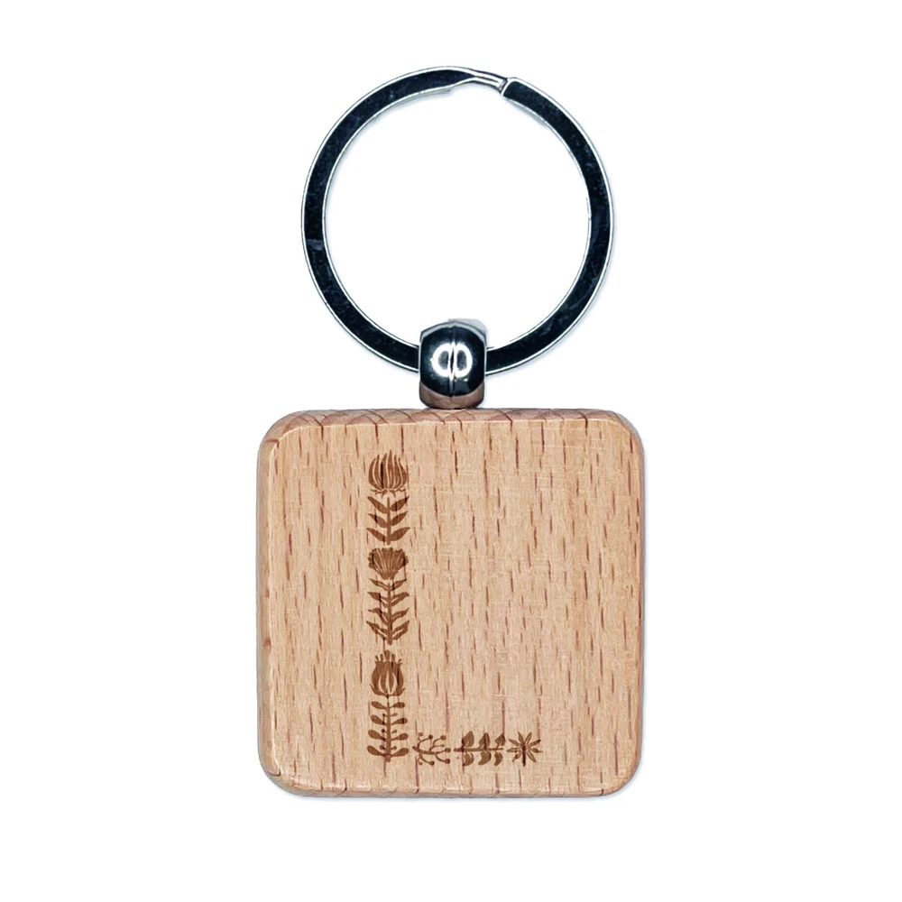 Elegant Botanical Floral Letter L Engraved Wood Square Keychain Tag Charm