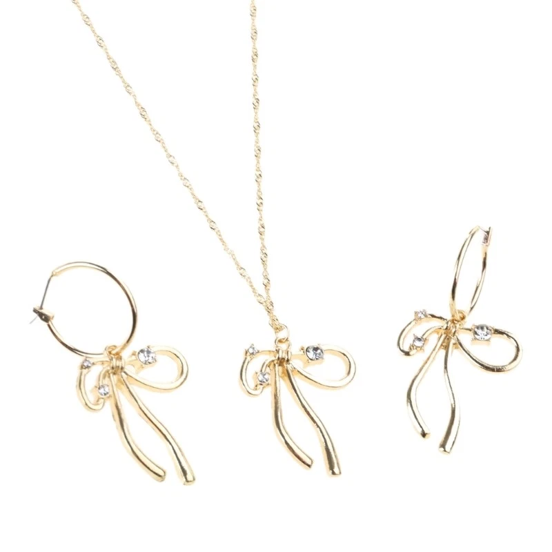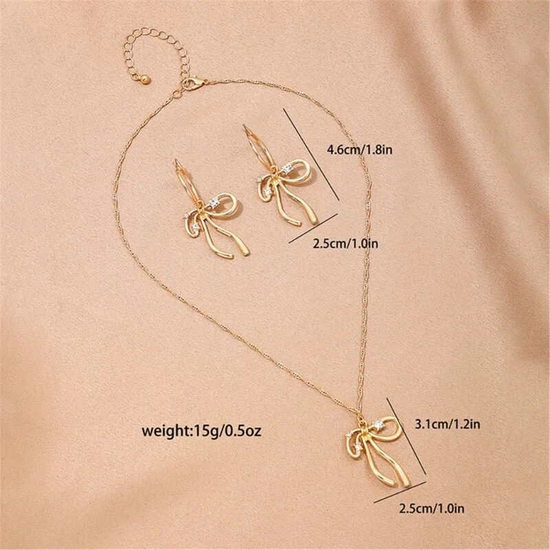 Features: and high This necklace and earrings set features sparkling stones, adding a touch of to your jewelry collection. for daily wear or special occasion. Crafted from alloy, this lightweight jewelry set is both comfortable and long lasting. Designed for women who appreciate stylish accessory, this set is suitable for various occasion, making it a addition to any outfit. Whether you're attending a party or going out with friend, this necklace and earrings set will raise your adding a touch of charm to your look. Treat yourself or surprise someone special with this beautiful necklace and earrings set, a thoughtful that will leave a lasting memory. Specifications: Component:Alloy Necklace Pendant Size:Approx.2.5x3.1cm/1.0x1.2inches Earrings Size:Approx.2.5x4.6cm/1.0x1.8inches Package Includes: 1Set Inlayed Bowknot Pendant Necklace and Earrings note: Please allow 1-2cm error due to manual measurement. Please make sure you do not mind before you bid. Due to the difference between different monitors, the picture may not reflect the actual color of the item. Thanks!