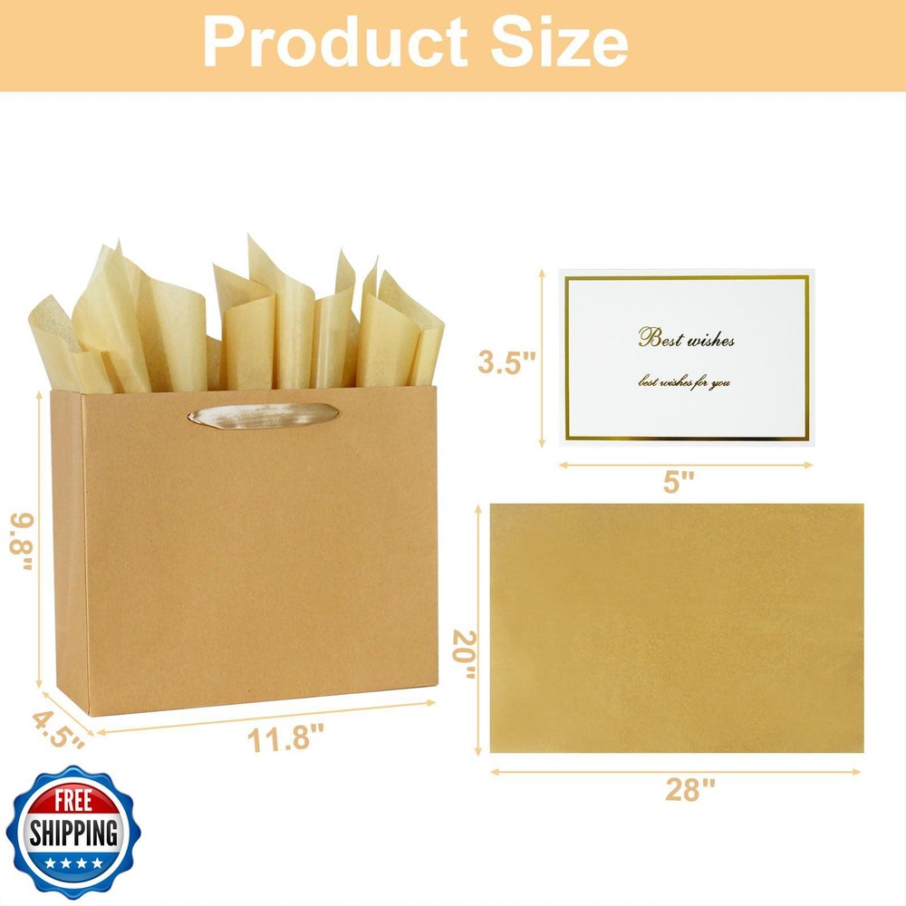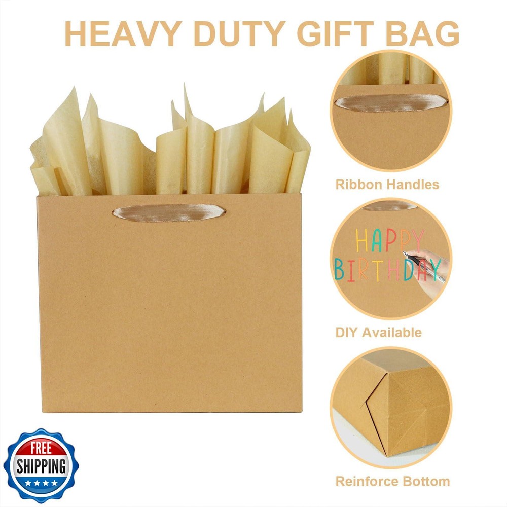 Elegant Brown Gift Bag 11.8"x4.5"x9.8" with Ribbon Handles, Includes Card and Tissue Papers, Perfect for Birthdays, Weddings, Parties, Holidays, Baby Shower Features Complete Gifting Solution: Each bag comes with a matching greeting card and premium tissue papers - everything you need for perfect presentation Luxury Meets Practicality: Generous 11.8"x4.5"x9.8" size accommodates most gifts while maintaining an elegant, proportional look Thoughtful Design: Reinforced base and sturdy construction ensure your gifts are both beautifully presented and well-protected Versatile Occasion Use: Ideal for Weddings, Birthdays, Anniversaries, Baby Showers, Valentine's Day, Mother's Day and other Holidays - your go-to gift packaging for every celebration Guarantee: We wish to provide you the best care, we 100% stand behind our products and hope you love them as much as we do. If you are not satisfied for any reason, please feel free to contact us, we are always on your side! Shipping Free & Fast Shipping: We offer free shipping to most of the USA with a normal delivery time of 3-7 days. However, due to the current situation, additional delivery time (up to 3 weeks) may be required for some items. Alternative Carriers: We may use alternative carriers (e.g., USPS, FedEx, UPS) to ensure your package arrives safely and on time. Due to the use of multiple carriers, we are unable to provide a tracking number automatically. Handling Time: Orders are processed and shipped within 1-2 business days of receiving cleared payment. Shipping Restrictions: Shipping to Alaska, Hawaii, Puerto Rico, Guam, and other US territories may incur shipping charges or delivery restrictions. Please contact us before ordering, or your order can be refunded/cancelled. State Restrictions: Certain items may not be shipped to California due to state regulations. Contact for Tracking Updates: If you require tracking updates or have any concerns about the delivery of your order, please feel free to contact us, and we will be happy to assist you. Return Policy 30-Day Hassle-Free Returns: If you are not completely satisfied with your purchase, you can return the item for free within 30 days of receiving it for a full refund or exchange. Easy Return Process: Contact us, and we will provide you with a prepaid return shipping label and detailed instructions. No Restocking Fee: There are no restocking fees for returns. However, the buyer is responsible for return shipping costs if the return is not due to a seller"s error. Refund Processing: Refunds will be processed within 1 business day of receiving the returned item in its original condition. Feedback Your feedback is extremely important to us. We strive to provide the best products and customer service possible. If you are satisfied with your purchase, please take a moment to leave us a positive review. If you have any concerns or issues with your order, please contact us before leaving negative feedback. We are committed to resolving any problems and ensuring your satisfaction. Contact Us If you have any questions or concerns, please feel free to reach out to our customer support team. You can contact us through the eBay messaging system. We are available Monday to Friday, 9:00 am to 5:00 pm EST, and we will do our best to respond to your inquiry within 24 hours. Thank you for supporting our small family business!