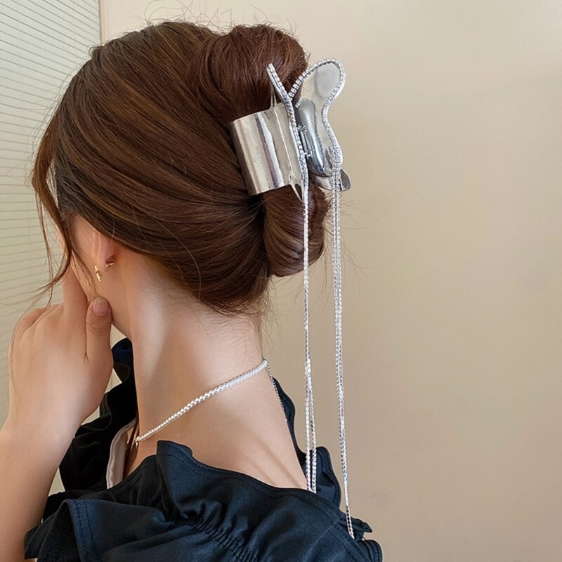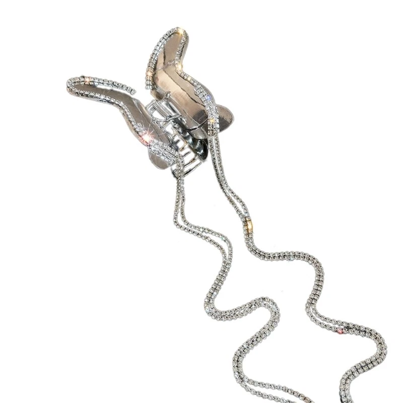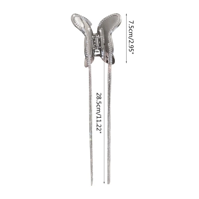 Features: Large hair clip are suitable for women and girls of all ages. Hair clip can be gift to your workmates, wife, mother or more. Hair clip for women are great choice for daily makeup, showers, sports, dance parties, parties, shopping, dating, travel, work, kitchen and more hairstyles, Allowing you to easily create elegant and delicate hairstyles to your dress. size for lady of all ages, meet your different daily mood, dating hairstyles or other needs. Teethes can greatly handle whatever thick/thin supple hair. Enough long clip for hair will hold tightly, perfect for thick, thin, curved, or straight hair.Suitable for girls of all ages, let you solve the trouble of taking care of your hair. The hair clip are decorated with for butterfly shape, which have tightly grip, cling to the hair but not easy to slip and not hurt, hair clip for supple hair are delicate, tightly and not easy to be broken. Specifications: Material: Metal, Rhinestones Size: Approx 7.5cm/ 2.95in Tassel Size: Approx. 28.5cm/ 11.22in Color: Golden, Silver Package Includes: 1pc Rhinestones for Butterfly Shape Hairpin note: Please allow 1-2cm errors due to manual measurement, ensure that you do not mind before you order. 2. Due to the difference between different monitors, the picture may not reflect the actual color of the item.
