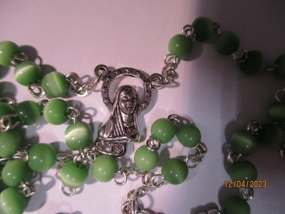 Beautiful Muted Green Bead Rosary Silver Crucifix 4 mm Glass Faceted Beads Beads have a beautiful pearlescent lustrous quality 15 in length Condition: NEW About: About all my Rosaries sold here: This group of rosaries that I will be listing came from a Highland Park estate. They are the most beautiful and unusual rosaries I have seen in a long long time. GORGEOUS. SEE PHOTOS!!! P.M. Beautiful Muted Green Bead Rosary Silver Crucifix 4 mm Glass Faceted Beads Beads have a beautiful pearlescent lustrious quality 15 in length Condition: NEW About: About all my Rosaries sold here: This group of rosaries that I will be listing came from a Highland Park estate. They are the most beautiful and unusual rosaries I have seen in a long long time. GORGEOUS. SEE PHOTOS!!! P.M. Images sell! Get Supersized Images & Free Image Hosting Attention Sellers - Get Templates Image Hosting, Scheduling at Auctiva.com. Track Page Views With Auctiva's Counter