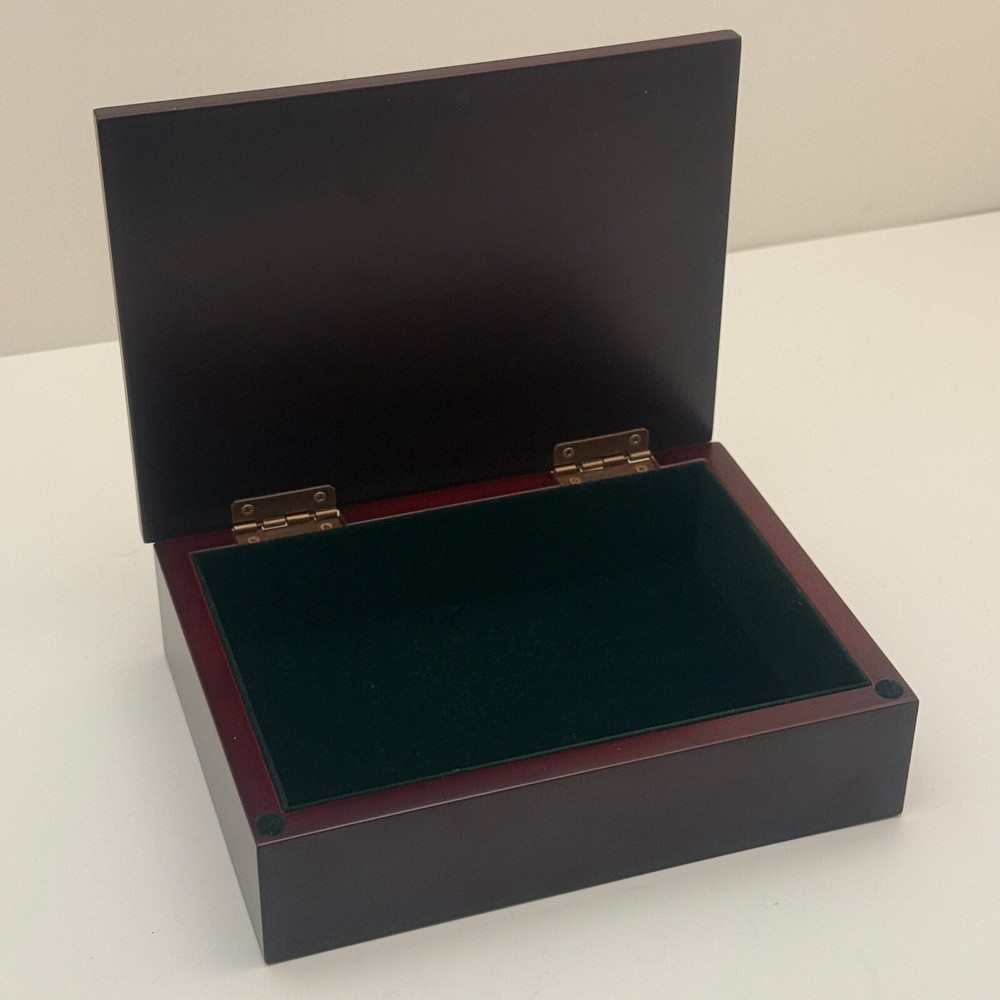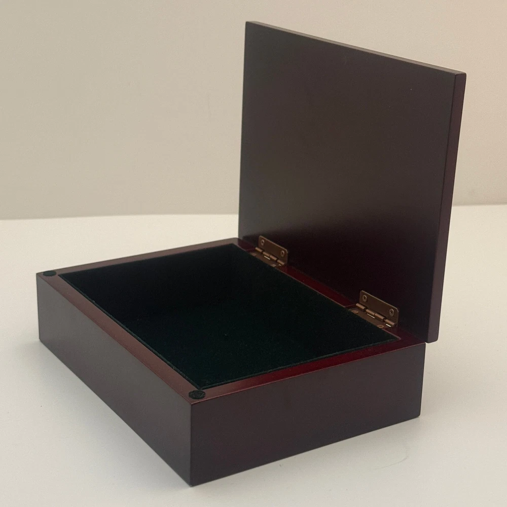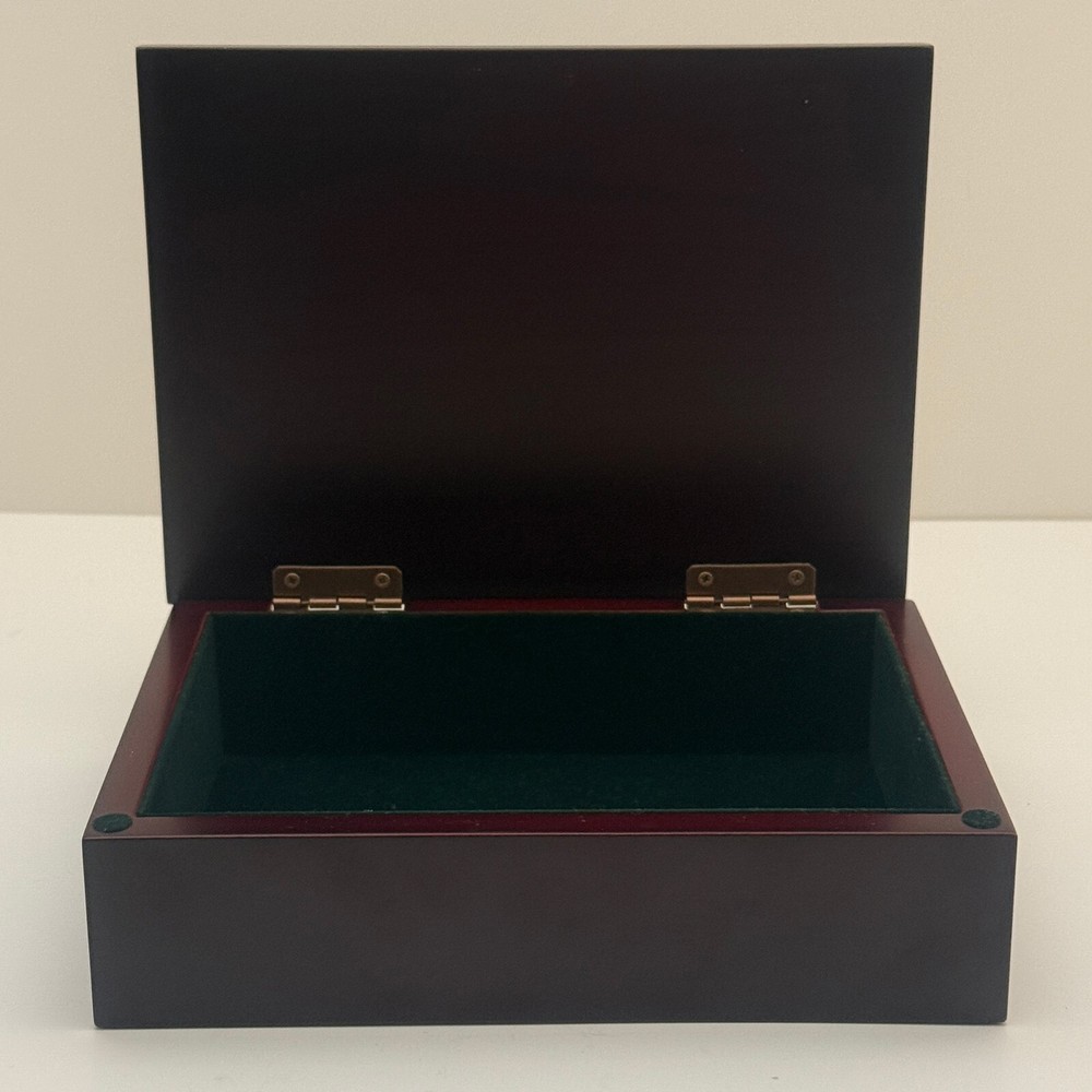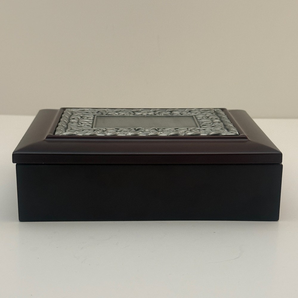 Wooden Jewelry Box with Floral Metal Inlay – 7.5 x 5.5 x 2 inches. Pre-owned item in good condition. The wooden box shows some scratches on the bottom from previous use, but the exterior and floral metal inlay are well-maintained. The velvet interior remains in good condition. Ideal for storing jewelry or trinkets, this box is both functional and stylish. Please refer to the photos for a closer look at its condition. The pictures are of the exact item you will receive. Please check the photos for more details. Please note that this item might have a slight smell of smoke due to storage and the cardboard box used for shipping. We take great care in cleaning and carefully packing the item to minimize any potential odors. Additionally, we prioritize fast shipping to ensure the item arrives quickly and in excellent condition. If you have any concerns, feel free to contact us before purchasing. Thank you for your understanding!