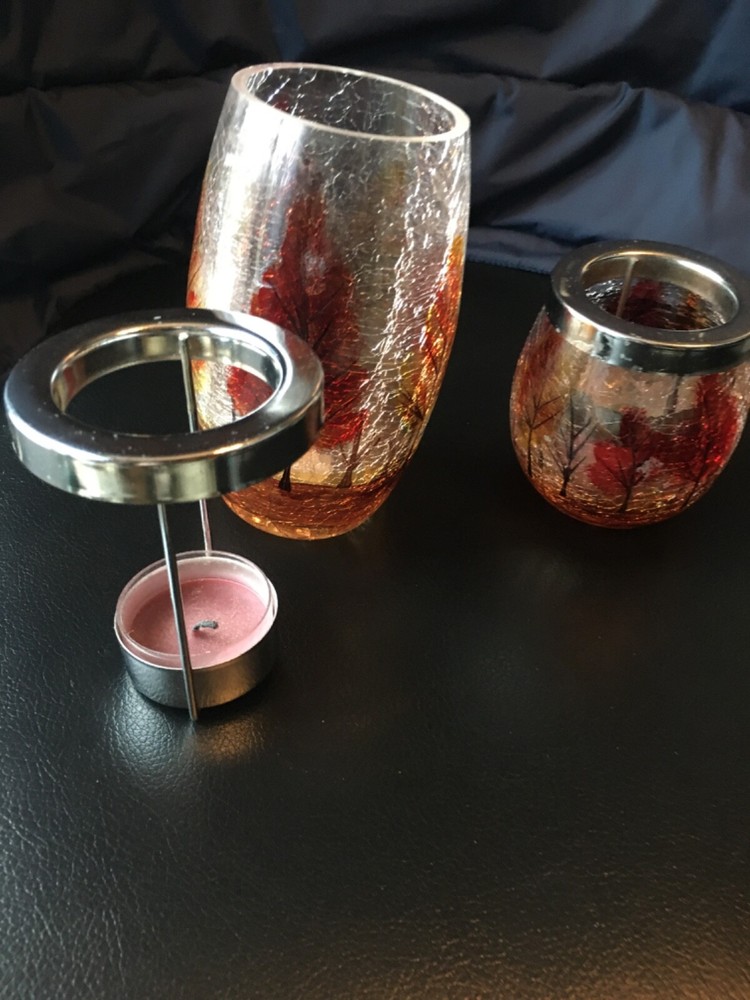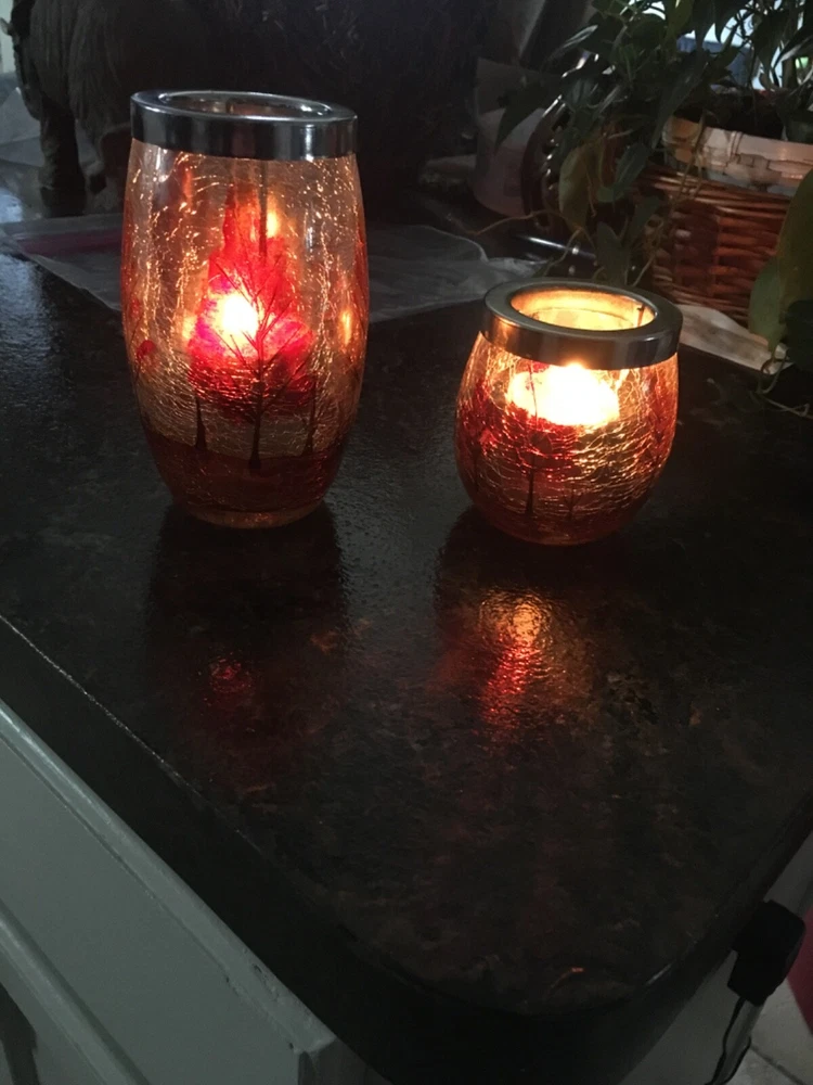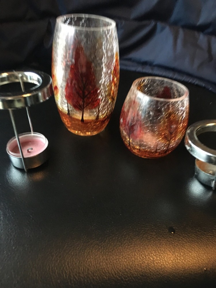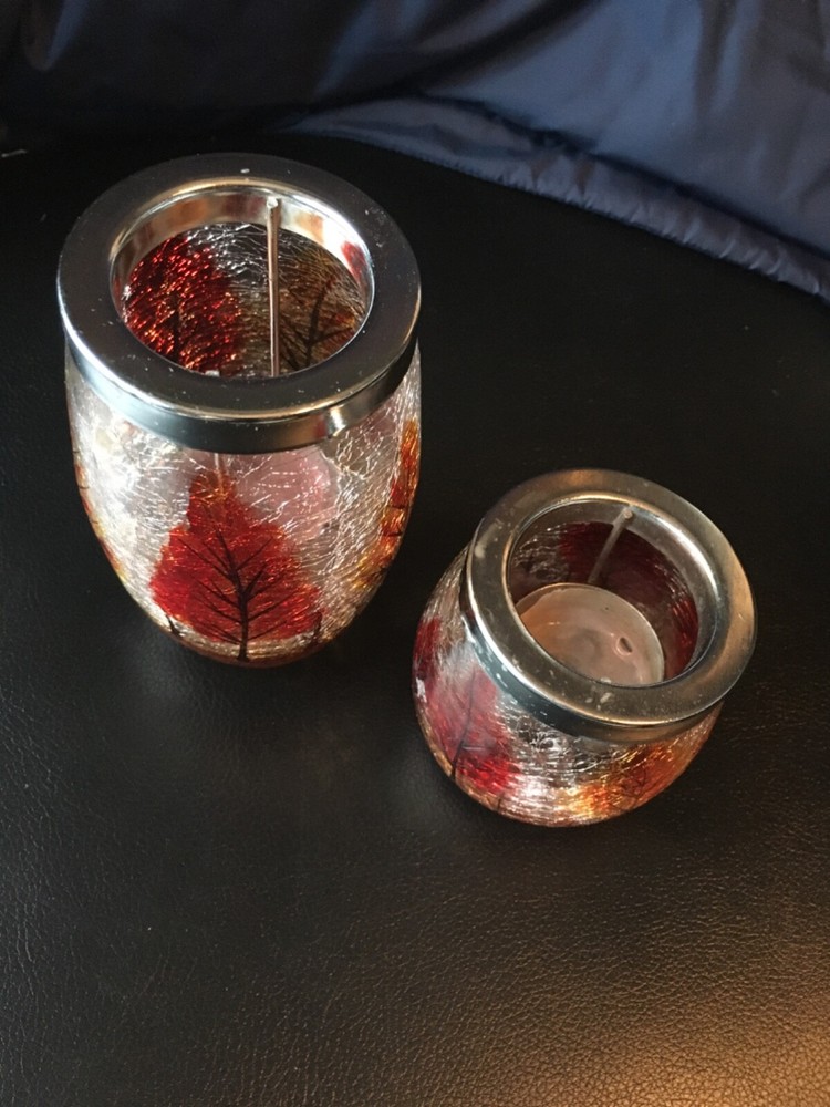 Yea light holders 5 inch and 3 inch candle holders table decorations shattered glass look fall tress