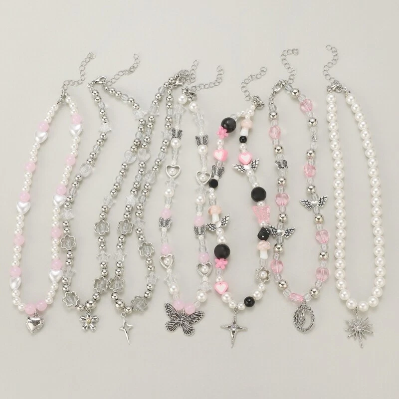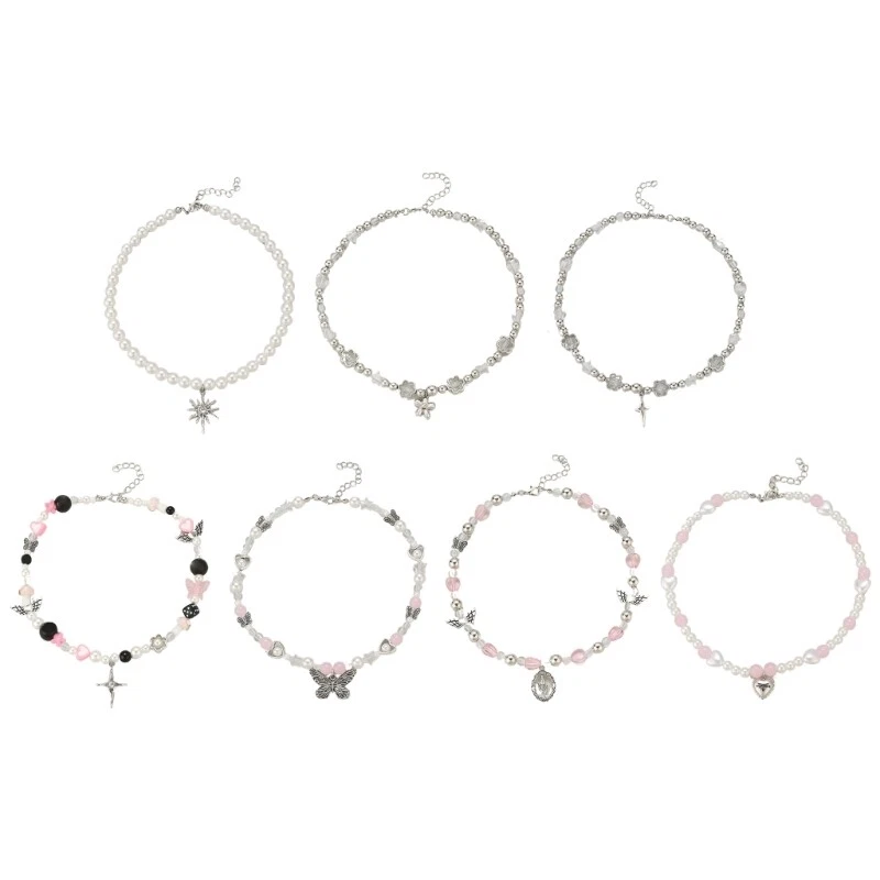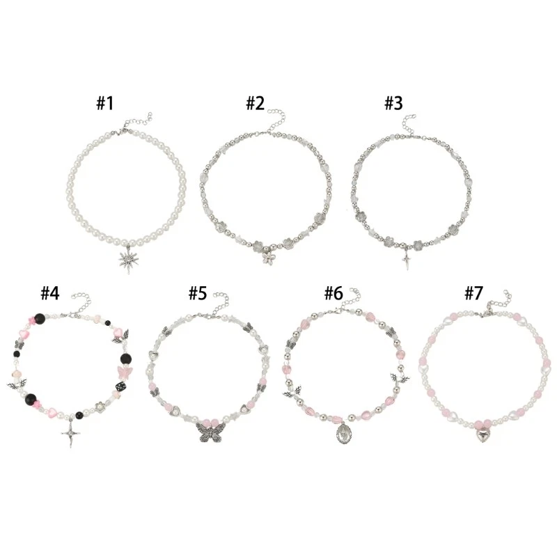 Elegant Heart Crosses Pendant Necklace Imitation Pearl Beaded Neckchain for Features: Embraces with our Butterfly Crosses Star Flower Beaded Necklace, a statement item that's trendy. Crafted from metal and imitation pearls, this necklace features a mix of like butterflies, crosses, and floral beads, all finished with exquisite attention to detail for lasting durability and for fashion forward youth and women who love to expressing their individuality through unique accessories. Versatile enough for daily wear or special event, this adjustable length necklace is suitable for parties, gatherings, or simply elevating your everyday outfit. Add a touch of elegances to your jewelry collection; this beaded necklace is not just accessory but a conversation starter. Specifications: Component: Imitation Pearl + Alloy Size: 42cm/16.54in Color: As the picture shown 7 Type: As choose. Quantity: 1 Pc Package Includes: 1Pc Necklace note: Please allow 0-1cm error due to manual measurement. please sure you donot mind before bid. Due to difference between different monitors, the picture may not reflect the actual color.