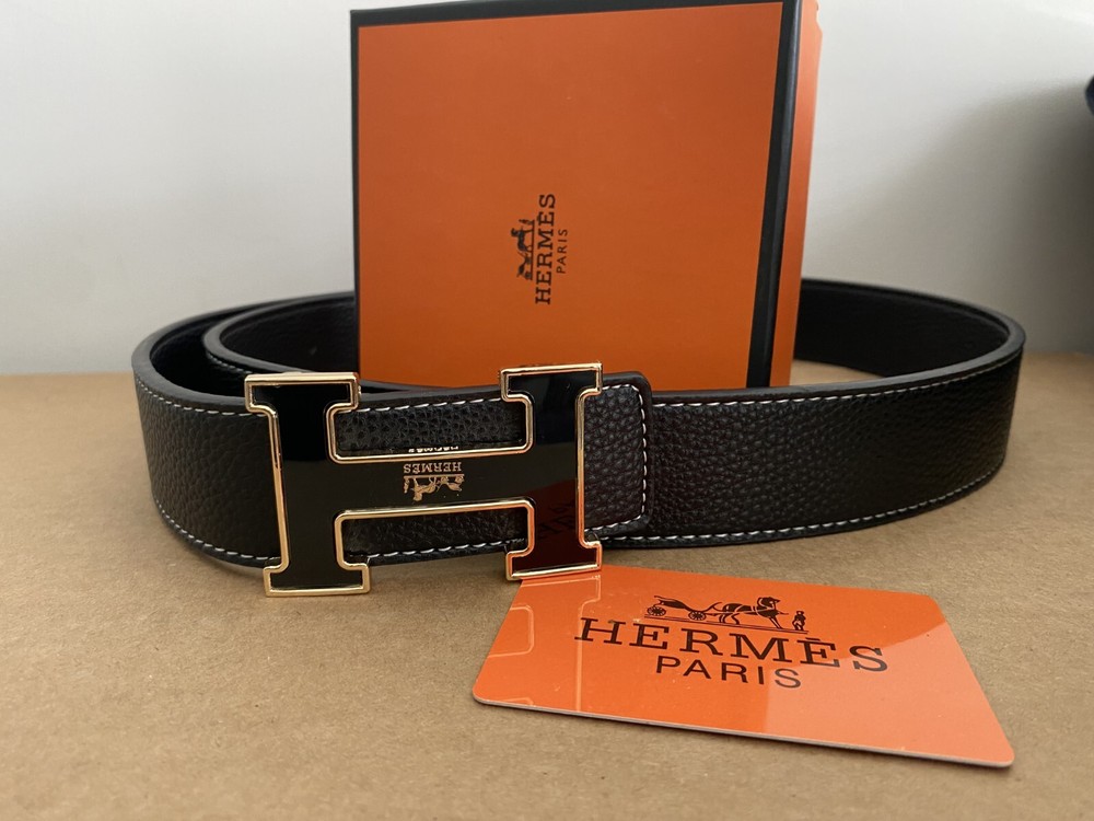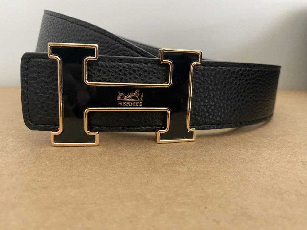 Hermes Belt Black reversible leather H buckle size 36-40. Reverse side is all black without white stitching. Condition: Never Worn, Mint, New. Shipped with USPS Ground Advantage.