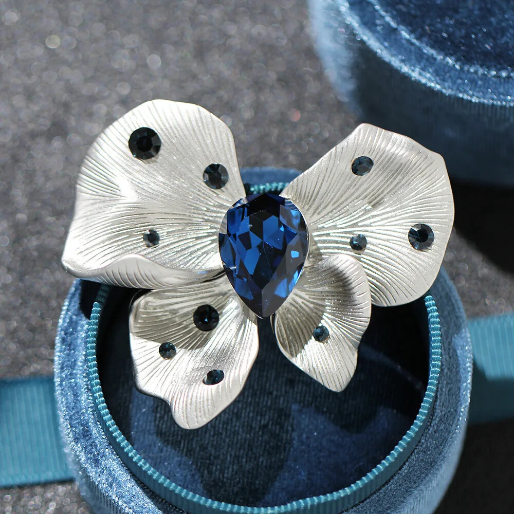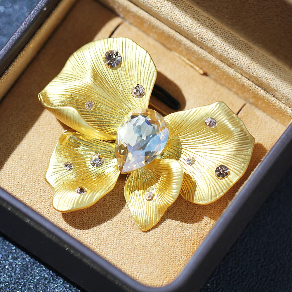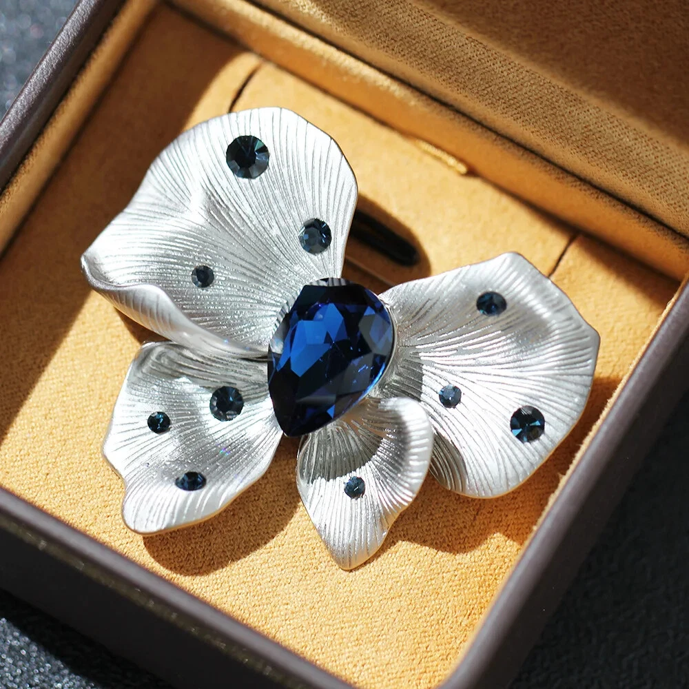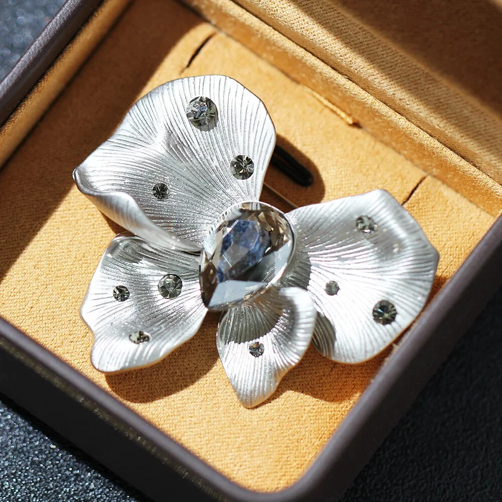 Elegant High-End Crystal Flower Brooch Pin Fashion Accessory