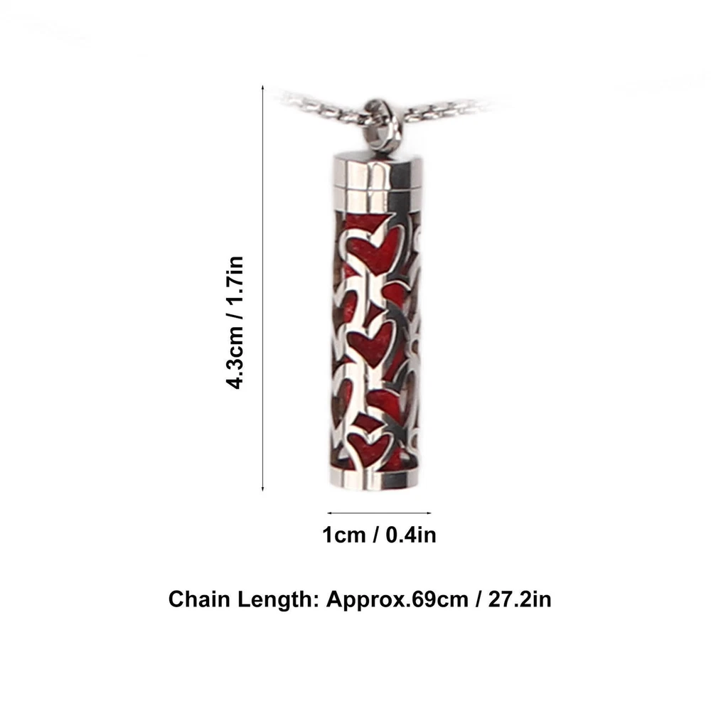 Feature: 1. Unique Design: A unique locket style essential oil diffuser pendant that allows you to now wear your favorite essential oils anywhere. 2. Small And Light Weight: The length of the chain is 69cm, the length is not adjustable, you can change other styles of chains by yourself. 3. Cutout Design: A circle of cutout design around the cylinder pendant is very fashionable, reusable and washable. 4. Gift: The best gift for aroma lovers and anyone who wants the efficacy of essential oils. 5. Applicability: Perfect for birthdays, Christmas, holidays, graduations or any gift giving occasion; anyone will love this beautiful essential oil jewelry. Specification: Item Type: Cylinder Necklace Product Material: Stainless Steel Pendant Size: Approx.4.3 x 1cm / 1.7 x 0.4in Chain Length: Approx.69cm / 27.2in Package List: 1 x Pendant 1 x Chain Note: Please note that gasket color is random.