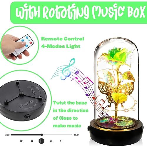 This beautiful light-up rose in a glass dome is such a thoughtful and elegant gift! The soft green color is stunning, and the music box adds a lovely touch. Perfect for Valentine’s Day, birthdays, or just to show someone you care. The rose looks so lifelike, and the dome keeps it protected while making it a gorgeous display piece. Fast shipping and great quality—highly recommend for moms, girlfriends, or anyone special!