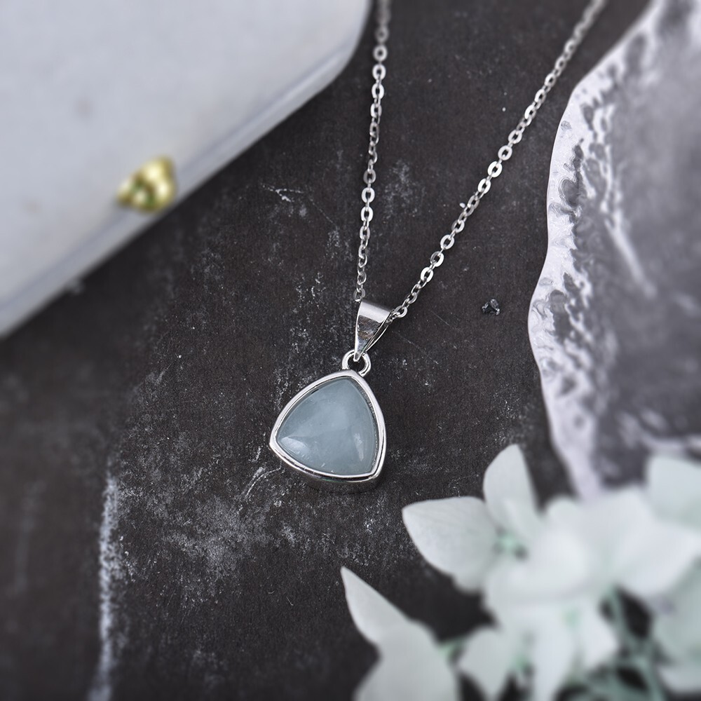 This elegant triangle pendant necklace is the perfect addition to any jewelry collection. The pendant is made of natural aquamarine, with a beautiful eye-clean clarity grade, and is set in sterling silver. The necklace is 45-50cm in length and is adjustable for the perfect fit. The necklace is ideal for any occasion, including engagement, wedding, graduation, birthdays, and more. The pendant's unique shape and the intricate design make it a stunning piece that will receive compliments. The Sey-Wow brand is known for its high-quality jewelry, and this necklace is no exception. Add this necklace to your collection today and elevate any outfit. Package includes: * Pendant * Necklace * Free jewelry Gift Bag * Free Jewelry Cleaning Cloth * Free Gift with each purchase * Free Shipping