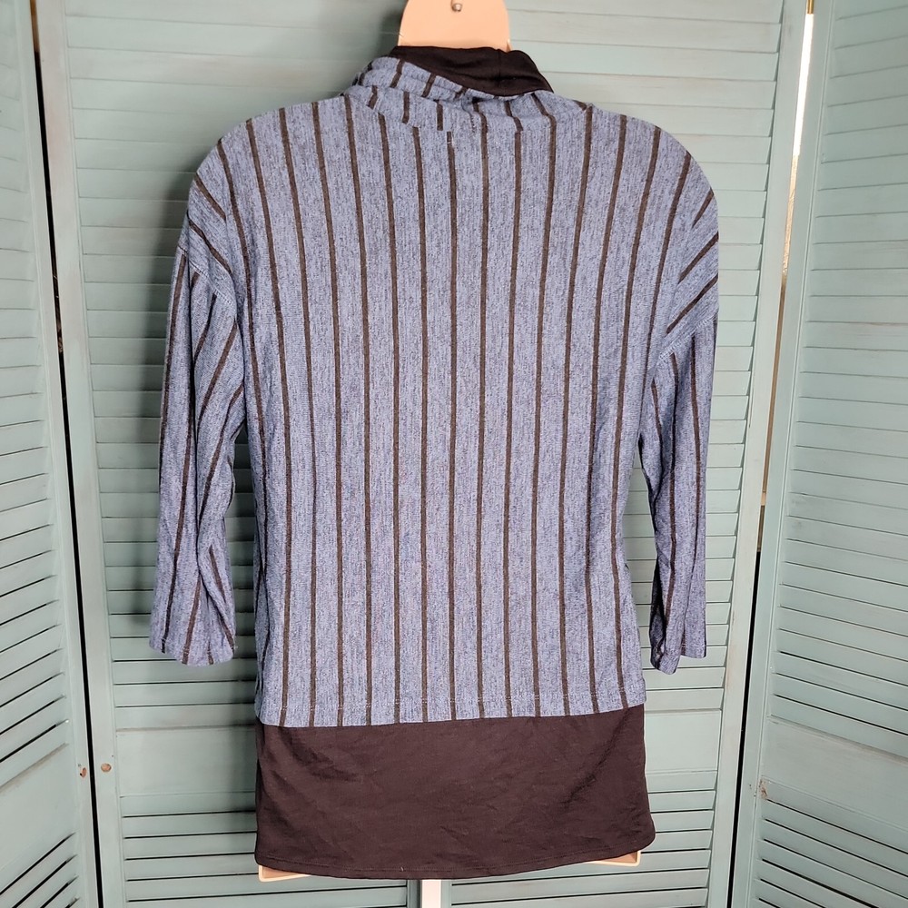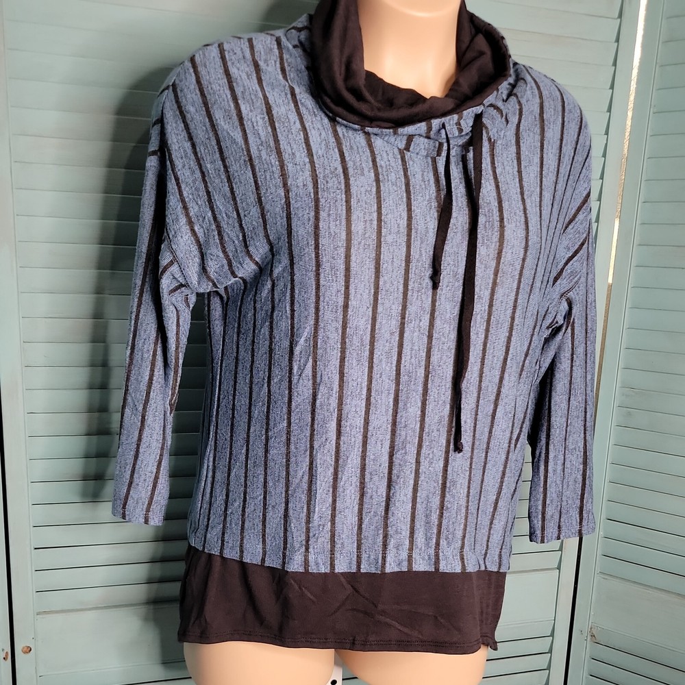 Olivia Blu High Neck 3/4 Sleeve Blouse Shirt Sz L Blue & Black ~ 26" Arm Pit to Arm Pit ~ 23" Across Waist ~ 21" Sleeve Length ~ 25.5 " Length Item is in great condition. Returns: If you decide you do not like the item or it does not fit I do accept returns within set amount of time. Payment: I do not require immediate payment, however please pay as soon as possible. Shipping: I do offer combined shipping. It is highest price plus $2 each additional item. Feedback: Feedback is automatically left after customer leaves me feedback. Condition: I try to be reserved when putting in the condition. Items are usually better than described unless it is vintage. Vintage may be a little more worn sometimes. If you have a question about condition, please ask. Thanks again for your interest in my item. I really do appreciate your business!
