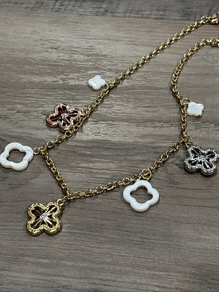 The Park Lane Gold Tone Necklace is a stylish and elegant piece of jewelry featuring a beautiful flower pendant in a combination of gold, silver, and rose gold tones. The lobster closure and adjustable chain make it perfect for everyday wear, adding a touch of beauty to any outfit. Made with clear main stone color, this necklace exudes a fashionable and sophisticated charm, making it a versatile accessory for any occasion. Perfect for those who appreciate the blend of classic and contemporary styles in their jewelry collection.