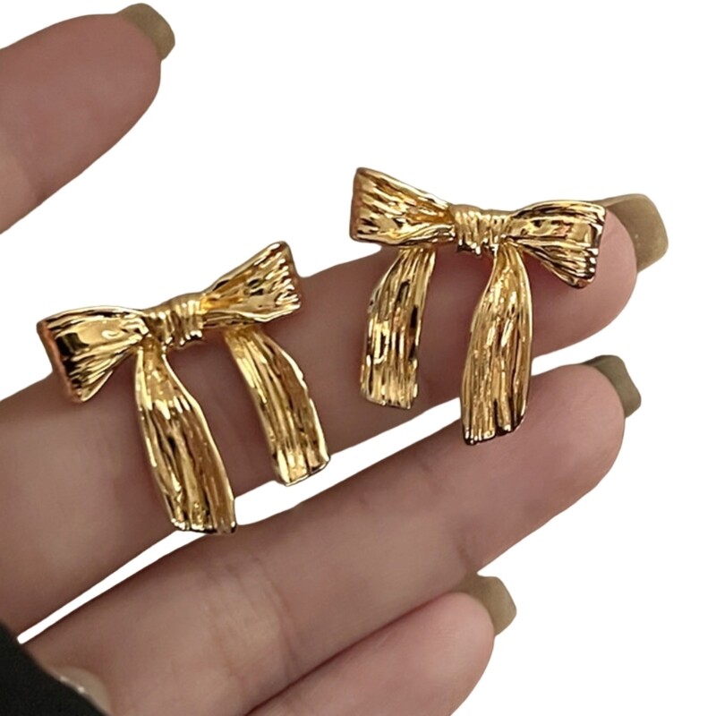 Features: Stand out with these polished metal textured ribbon bow ear earrings, a stylish accessory that adds charm to any look. Crafted from with a unique stacked dangle, these earrings is for everyday wear. Fashion forward women who appreciate jewelry will love these versatiles earrings. Whether you're heading to work or a night out, these earrings is the choice to your look. Add personality to your with these ribbon earrings, a great yourself or a love ones. Specifications: Color:Gold/Silver Weight:About Size:Approx.2.3cm/0.90inch Package Includes: 1 Pair Earrings note: 1.Please allow 1-2cm errors due to manual measurement, make sure that you do not mind before you order. 2.Due to the difference between different monitors, the picture may not reflect the actual color of the item.