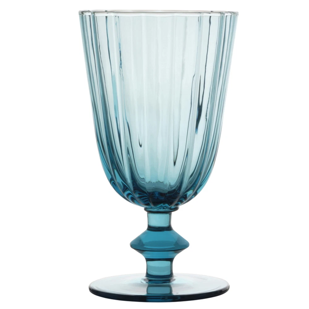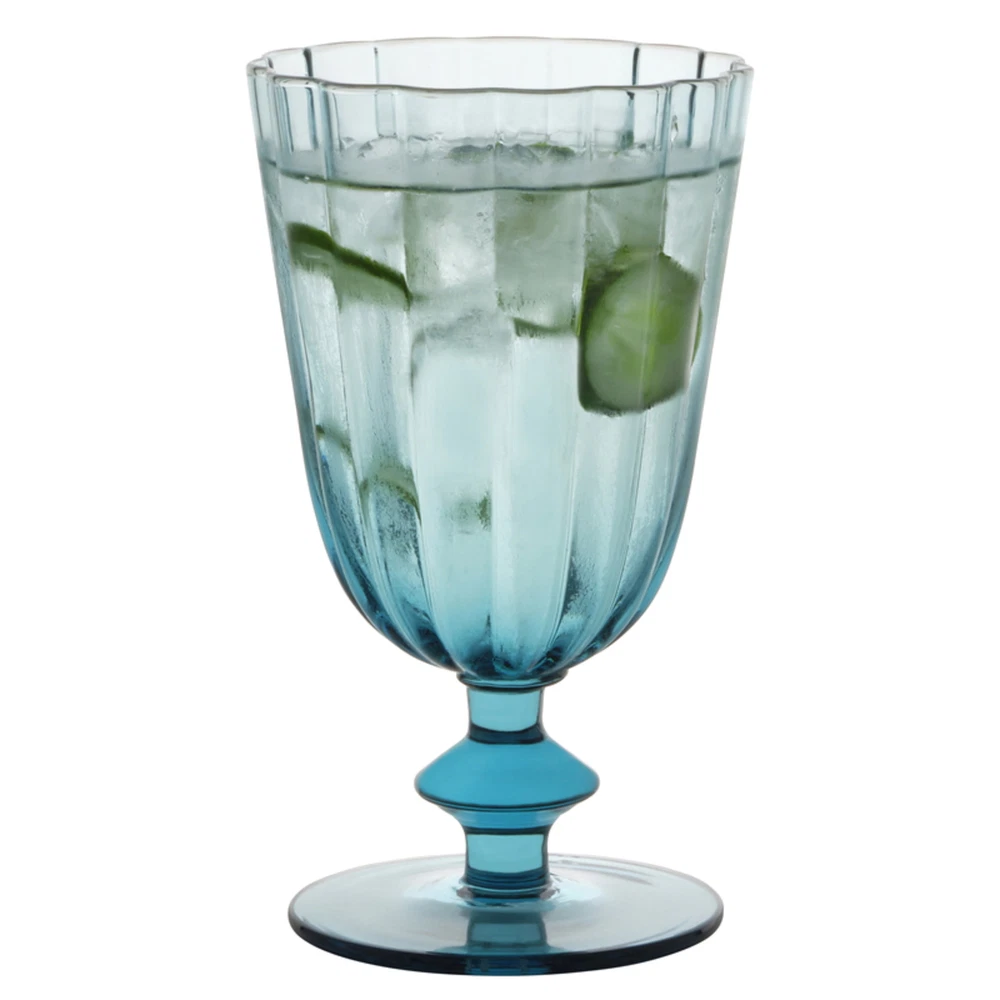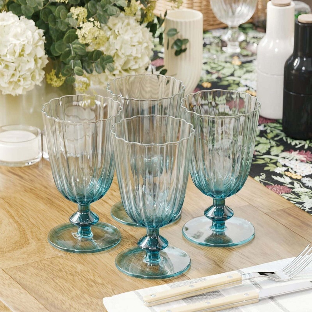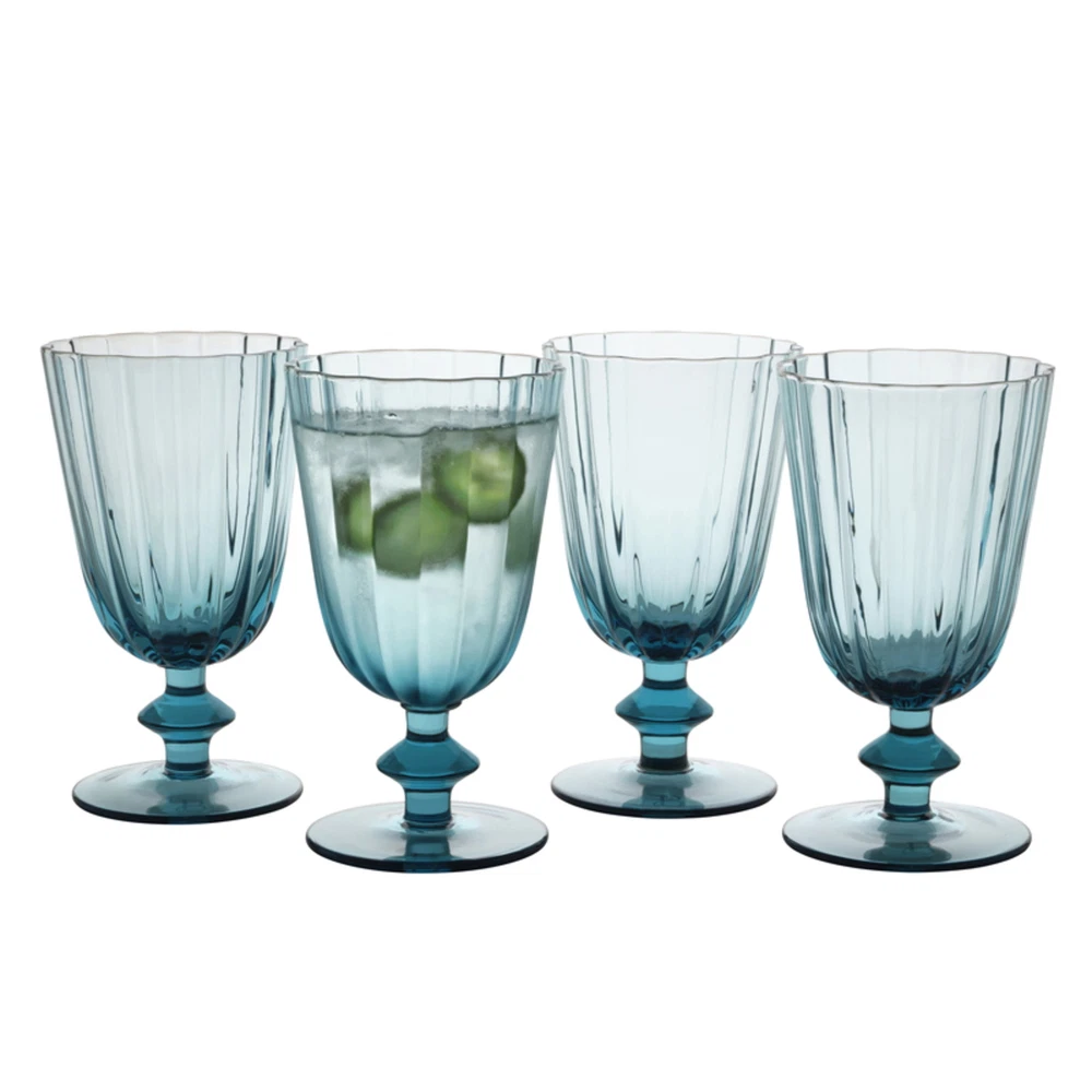 Bring a touch of soft and modern drinkware to your home bar and dining table for all your gatherings with this Beautiful by Drew set of 4 Scalloped Rim Goblets in cornflower blue. Made of lead free crystal, this easy elegant stemware combines casual silhouettes with a classic scalloped design for a stunning look that complements any flatware or dinnerware. Goblets are ideal for everyday enjoyment or entertaining and are perfect for iced tea and water as well as your wines and spirits. Mix and match with other Beautiful by Drew drinkware, dinnerware, and serve ware to create an intriguing tablescape. Set of 4 ach measuring 6-1/2 inches high by 3-3/4 inches in diameter with a 16 fluid ounce capacity. Dishwasher safe. ELEGANT STEMWARE: Beautiful by Drew Scalloped-Rim Goblets in cornflower blue add soft and modern drinkware to your home bar and dining table. Perfect for everyday use and all of your gatherings, combining casual and easy silhouettes with a classic scallop USE FOR ANY OCCASION: goblets are ideal for everyday enjoyment of iced tea and water as well as your favorite wines and spirits at formal gatherings WELL CRAFTED: made of lead-free crystal, this stunning set can be mixed and matched with other Beautiful by Drew drinkware, dinnerware, and serve ware to create an expressive tablescape SET OF 4: each goblet measures 6-1/2 inches high by 3-3/4 inches in diameter with a 16-fluid-ounce capacity EASY CARE: dishwasher safe for quick, thorough cleaning Beautiful Scallop Set of 4 Glass Goblet Blue by Drew Barrymore: 5312839