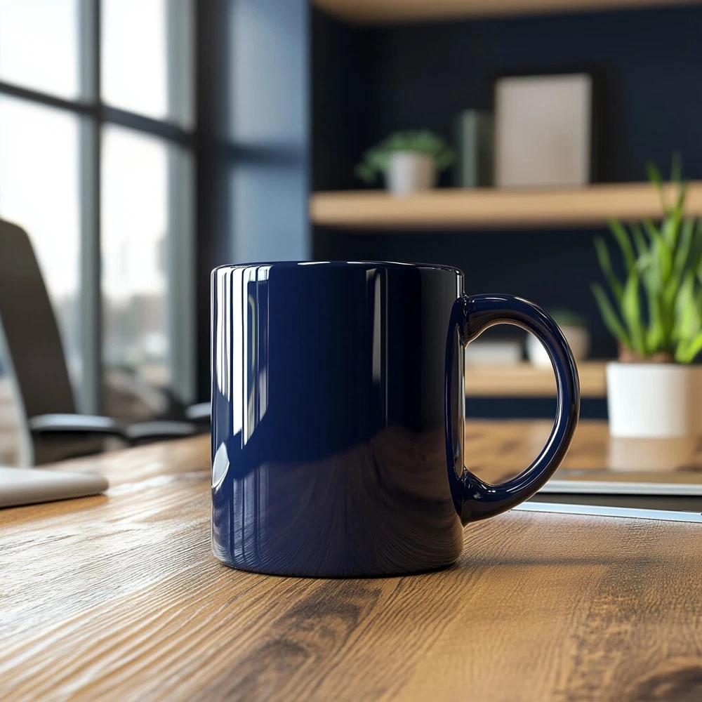 Elegant Single Navy Blue Ceramic Coffee Mug - Glossy Finish