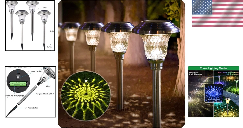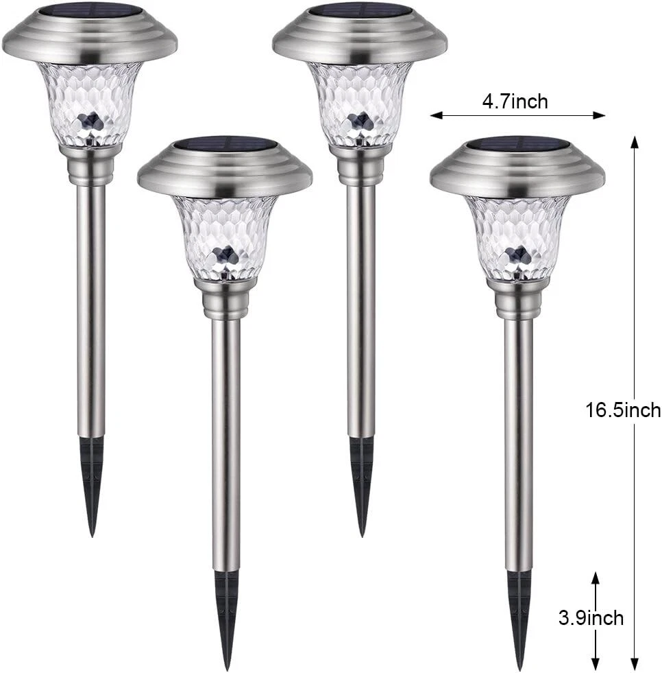 Elegant Solar Path Lights with 3 Lighting Modes - 12Hrs Illumination, 4 Pack ‹ › ‹ › ‹ › ‹ › ‹ › ‹ › ‹ › ‹ › ‹ › ‹ › Elegant Solar Path Lights with 3 Lighting Modes - 12Hrs Illumination Size: 16.54" in height x 4.72" in diameter Pack of 4 Product Highlights: Durable Material: Crafted from rustproof stainless steel and watertight diamond glass, ensuring long-lasting outdoor use. Stylish Design: A modern, substantial texture that elevates the aesthetics of any garden, patio, lawn, or backyard. Easy Assembly: No tools required! Simply push these elegant solar lights into the ground for an effortless setup. 3 Lighting Modes: Choose between Bright White, Multicolor Changing, or Fixed Color to set the perfect mood for your outdoor space. Automatic Operation: With a built-in solar panel, these lights recharge during the day and automatically turn on at night. High Efficiency: 10 Lumens output from the white LED provides bright illumination for up to 12 hours with a full charge. All-Weather Resistant: With an IP65 waterproof rating, rain, snow, frost, or sleet won't hinder these lights' performance. Why Choose Our Elegant Solar Path Lights? Illuminate your outdoor pathways with a touch of elegance and sophistication. Our elegant solar path lights not only provide necessary illumination for safety and guidance but also enhance the beauty of your landscape. The unique design of these lights allows for an attractive pattern cast on the ground, adding a festive flair—perfect for parties or holiday celebrations. With their eco-friendly solar-powered mechanism and the ability to withstand all weather conditions, you can enjoy stunning lighting without worrying about excessive energy costs. Choose our Elegant Solar Path Lights for an impeccable blend of functionality and aesthetic appeal, transforming your outdoor space into a brilliantly lit sanctuary. Order your set of four today and let your garden shine all night long! Shipping Free & Fast Shipping - We offer free shipping to most of the USA with a normal delivery time of 3-7 days. However, due to the current situation, additional delivery time (up to 3 weeks) may be required for some items. Alternative Carriers - We may use alternative carriers (e.g. USPS, FedEx, UPS, etc.) to ensure your package arrives safely and on time. Due to the use of multiple carriers, we are unable to provide a tracking number automatically. Handling Time - Orders are processed and shipped within 1-2 business days of receiving cleared payment. Shipping Restrictions - Shipping to Alaska, Hawaii, Puerto Rico, Guam, and other US territories may incur shipping charges or delivery restrictions. Please contact us before ordering, or your order can be refunded/cancelled. State Restrictions - There may be restrictions based on your state of purchase. For example, certain items may not be shipped to California due to state regulations. Contact for Tracking Updates - If you require tracking updates or have any concerns about the delivery of your order, please feel free to contact us, and we will be happy to assist you. Return 30-Day Hassle-Free Returns - We want you to be completely satisfied with your purchase. If you are not, you can return the item within 30 days of receiving it for a full refund or exchange. Easy Return Process - To start a return, simply contact us and we will provide you with a prepaid return shipping label and detailed instructions. Restocking Fee - There are no restocking fees for returns. However, the buyer is responsible for return shipping costs if the return is not due to a seller's error. Refund Processing Time - Refunds will be processed within 5 business days of receiving the returned item in its original condition. Payment We accept all major credit cards, PayPal, and Apple Pay for your convenience. Your payment information is secure and encrypted to ensure a safe and seamless transaction. Please complete your payment within 3 days of purchase to avoid any delays in shipping. Feedback Your feedback is extremely important to us. We strive to provide the best products and customer service possible. If you are satisfied with your purchase, please take a moment to leave us a positive review. If you have any concerns or issues with your order, please contact us before leaving negative feedback. We are committed to resolving any problems and ensuring your satisfaction. Contact Us If you have any questions or concerns, please feel free to reach out to our customer support team. You can contact us through the eBay messaging system. We are available Monday to Friday, 9:00 am to 5:00 pm EST, and we will do our best to respond to your inquiry within 24 hours. Thank you for supporting our small family business! UPC: Not Set Unit Quantity: 4 Features: Waterproof,Tree-like pattern light output,Rechargeable Battery Included Theme: Solar Pathway Lights Light Color: Multicolor,Bright White,Fixed Color Mounting: Ground,Free Standing Material: Glass,Plastic,Stainless Steel Control Style: Touch,Sliding Selectable Switch Smart Home Compatibility: Not Set Labels & Certifications: Not Set Type: Pathway Brand: Unbranded Power Source: Solar Installation Area: Outdoor Sensor Type: Light Lighting Technology: LED Number of Lights: 4 Color: Silver Number of Settings: 3 Energy Star: Not Set MPN: Not Set EC Range: Not Set Style: Modern Finish: Powder Coated Size: Medium Power Consumption: 2 W Voltage: 2 V Bulb Shape Code: Not Set IP Rating: IP65 Item Diameter: 4.72 in Country/Region of Manufacture: Not Set Lumens: 10 lm Color Temperature: Not Set Bulb Life Hours: Not Set Model: Not Set Item Height: Not Set Item Length: Not Set Item Weight: 2.7 lb Item Width: Not Set Unit Type: Unit
